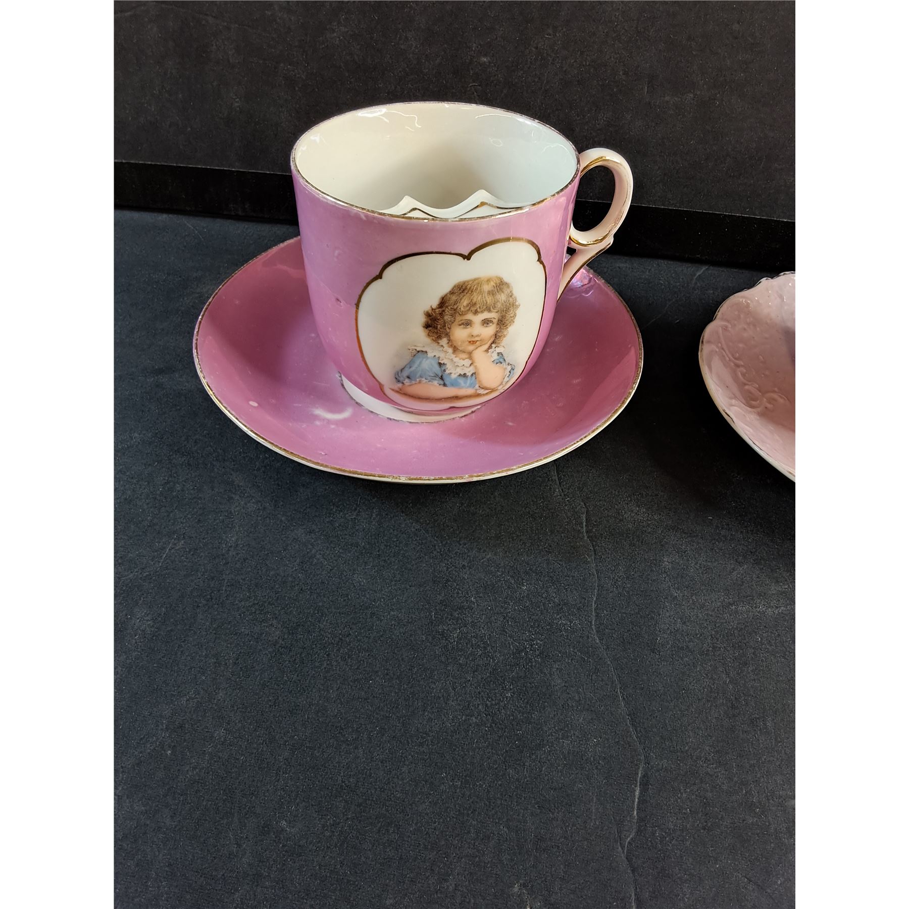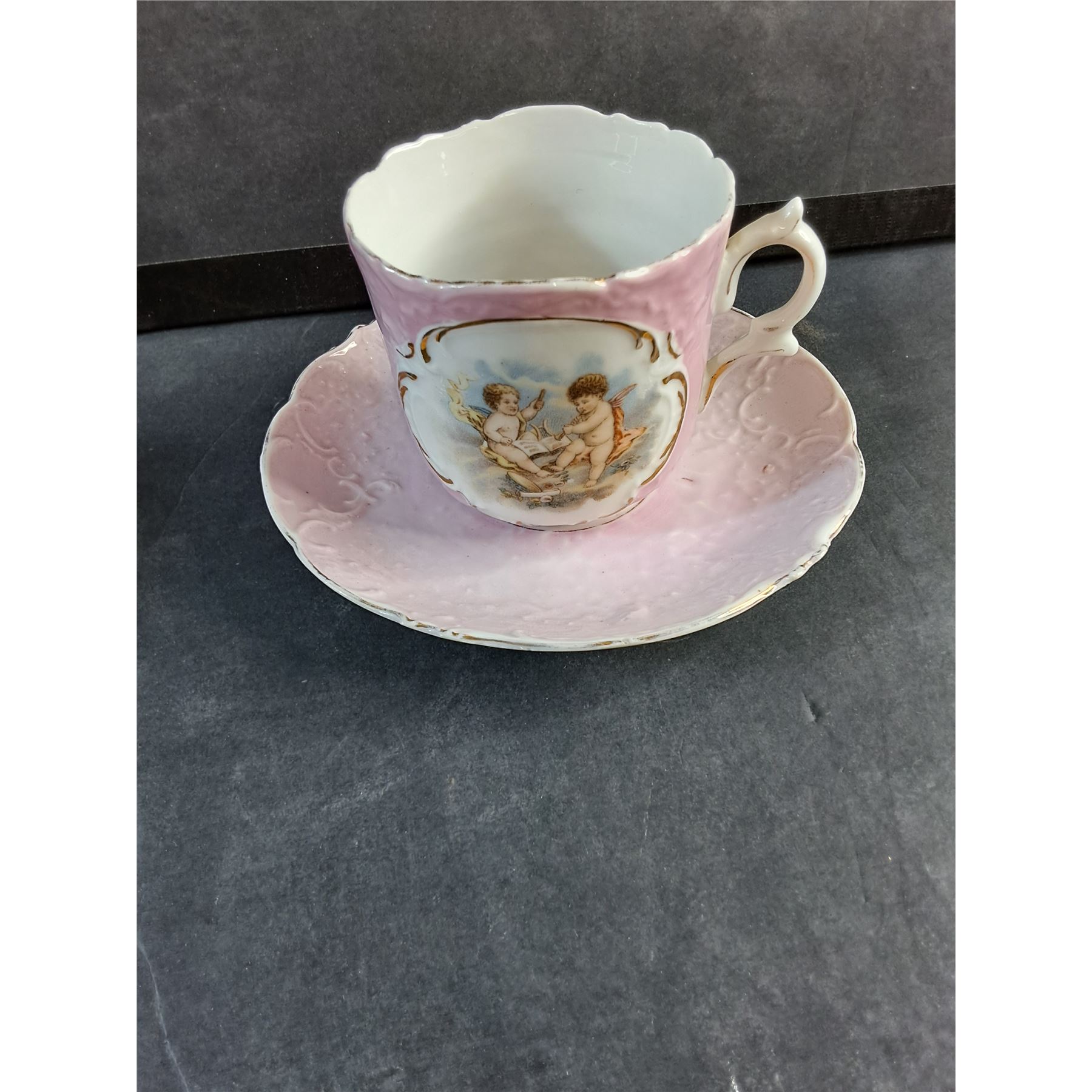 (2) Antique Pink China Tea Cups and Saucers