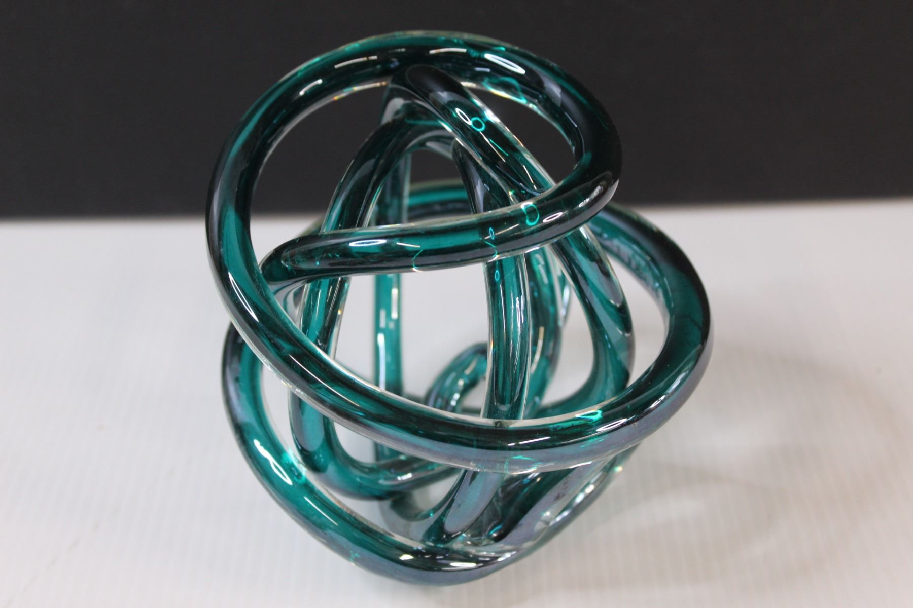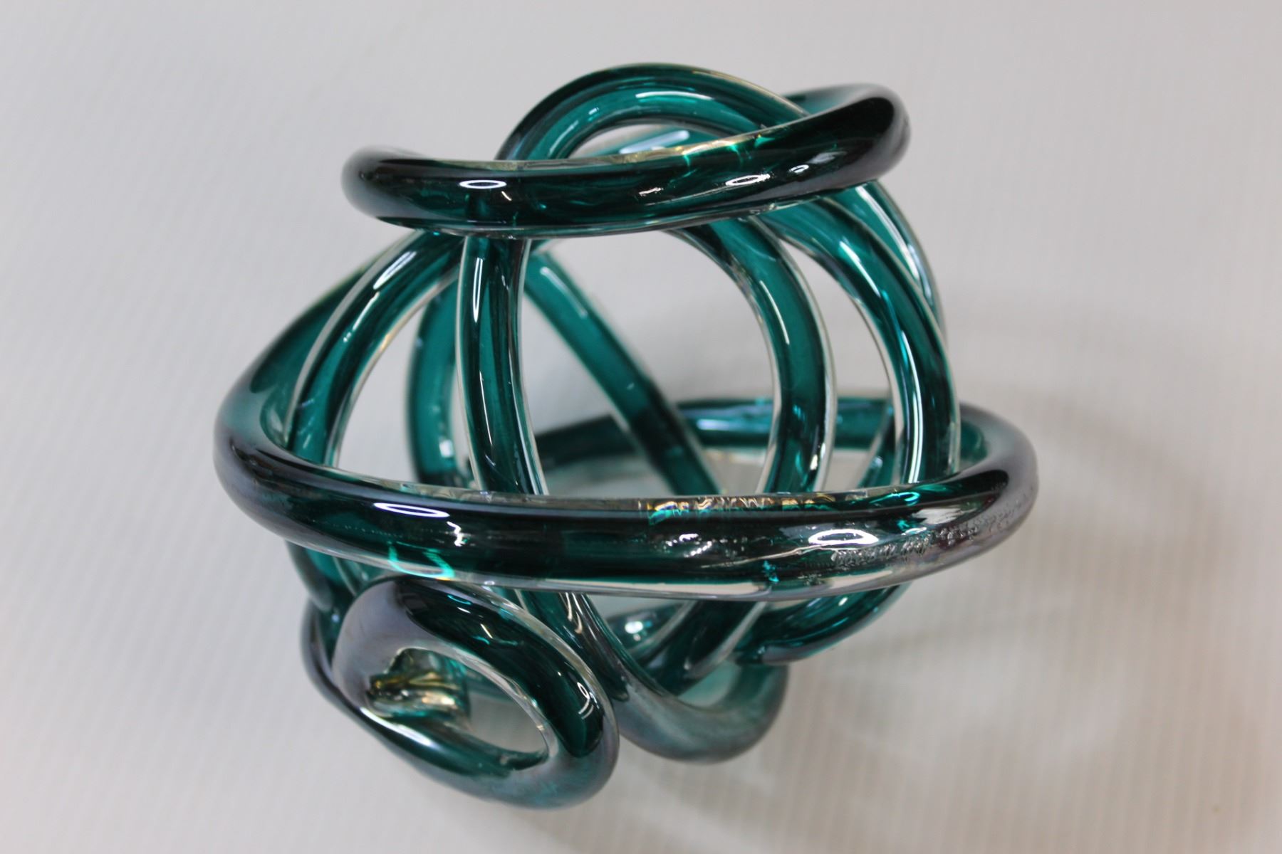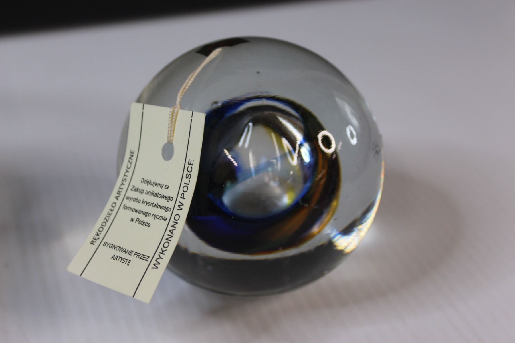 (2) Art Glass: Glass Tube Art Ornament - 5" x 6"; Cat's Eye Marble Paper weight Artist Signed