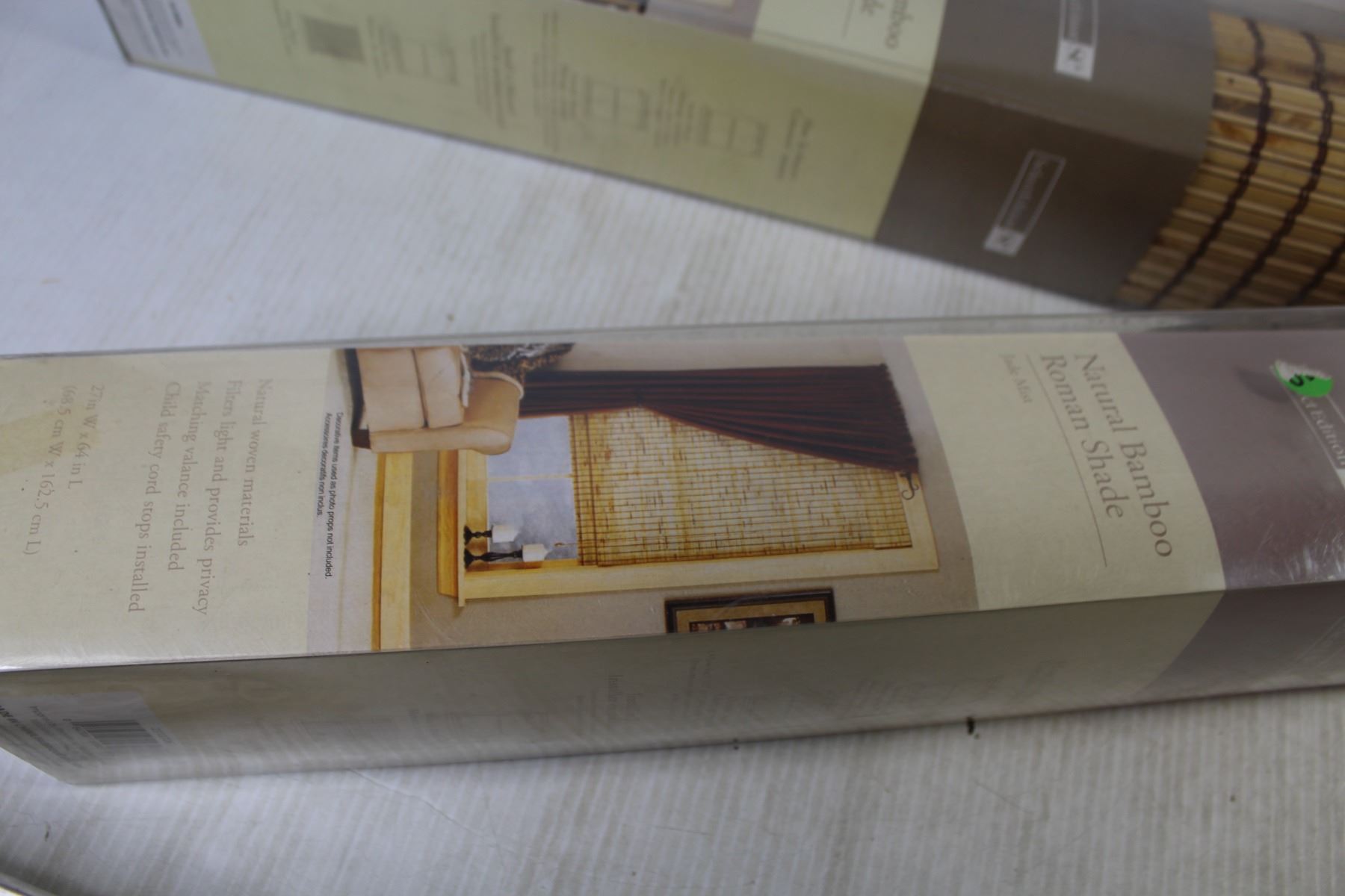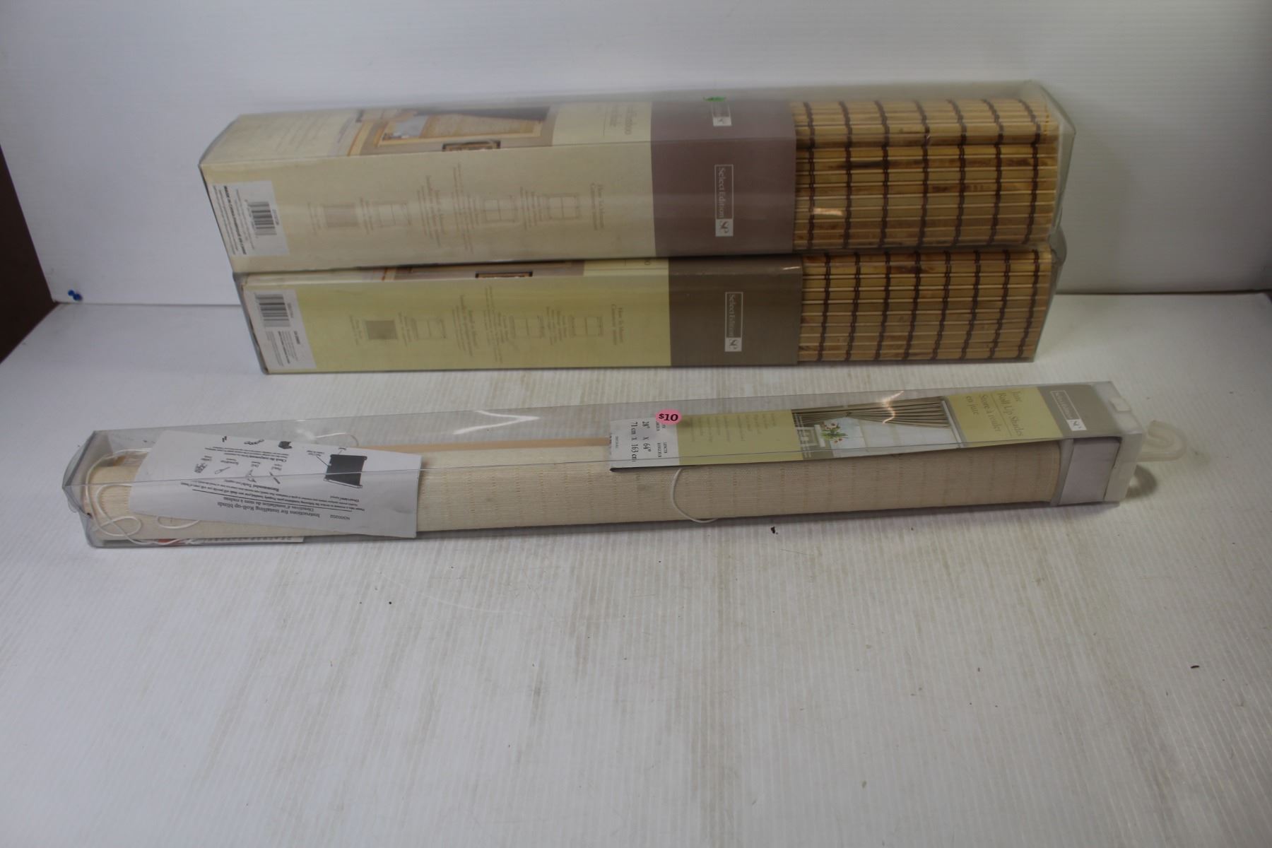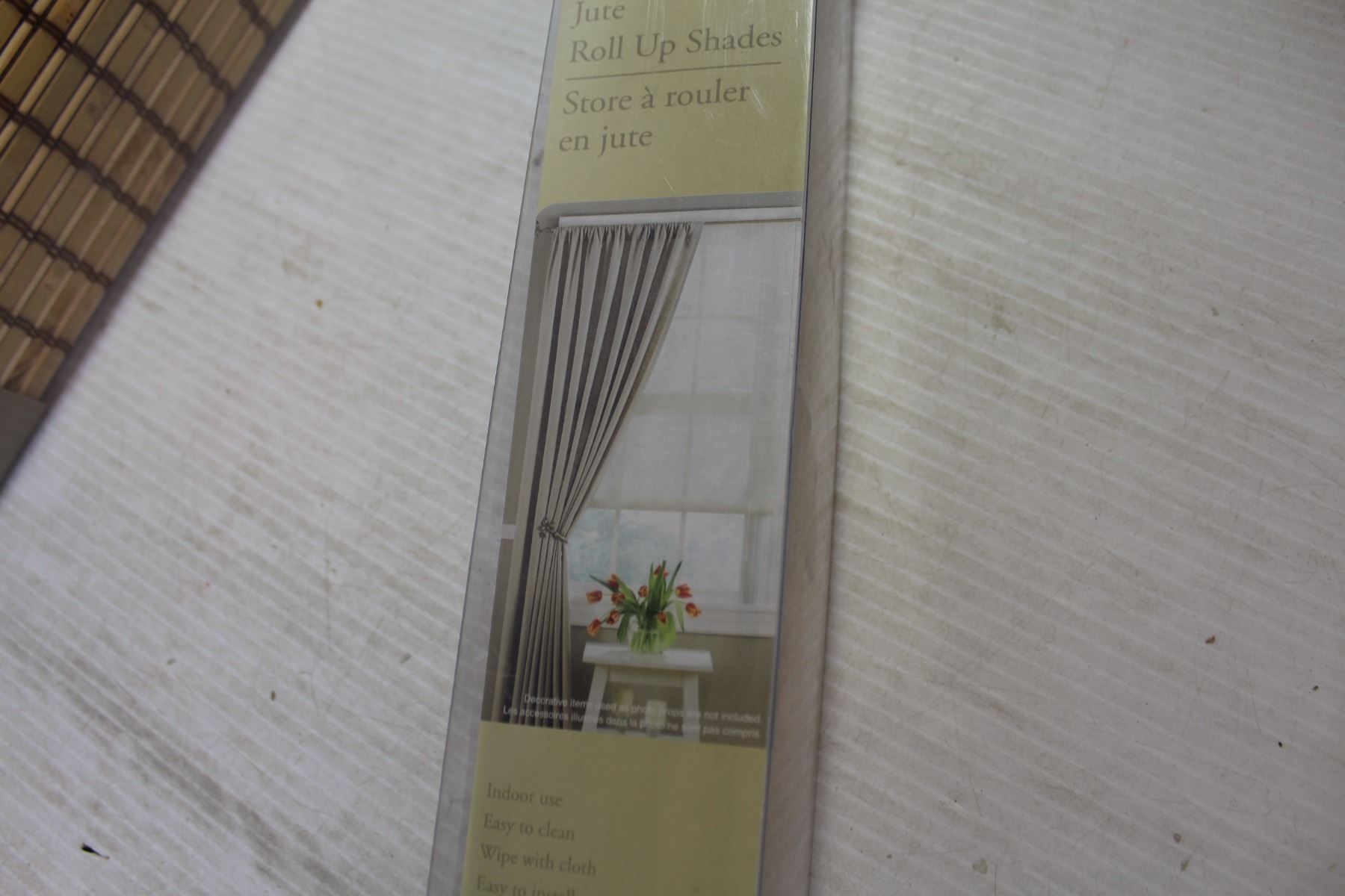 (2) Bamboo Blind (NIB - 27"w x 64"l) - Bamboo Blind (30"w) - Jute Roll-up Shade (NIB - 28"w x 64"l)