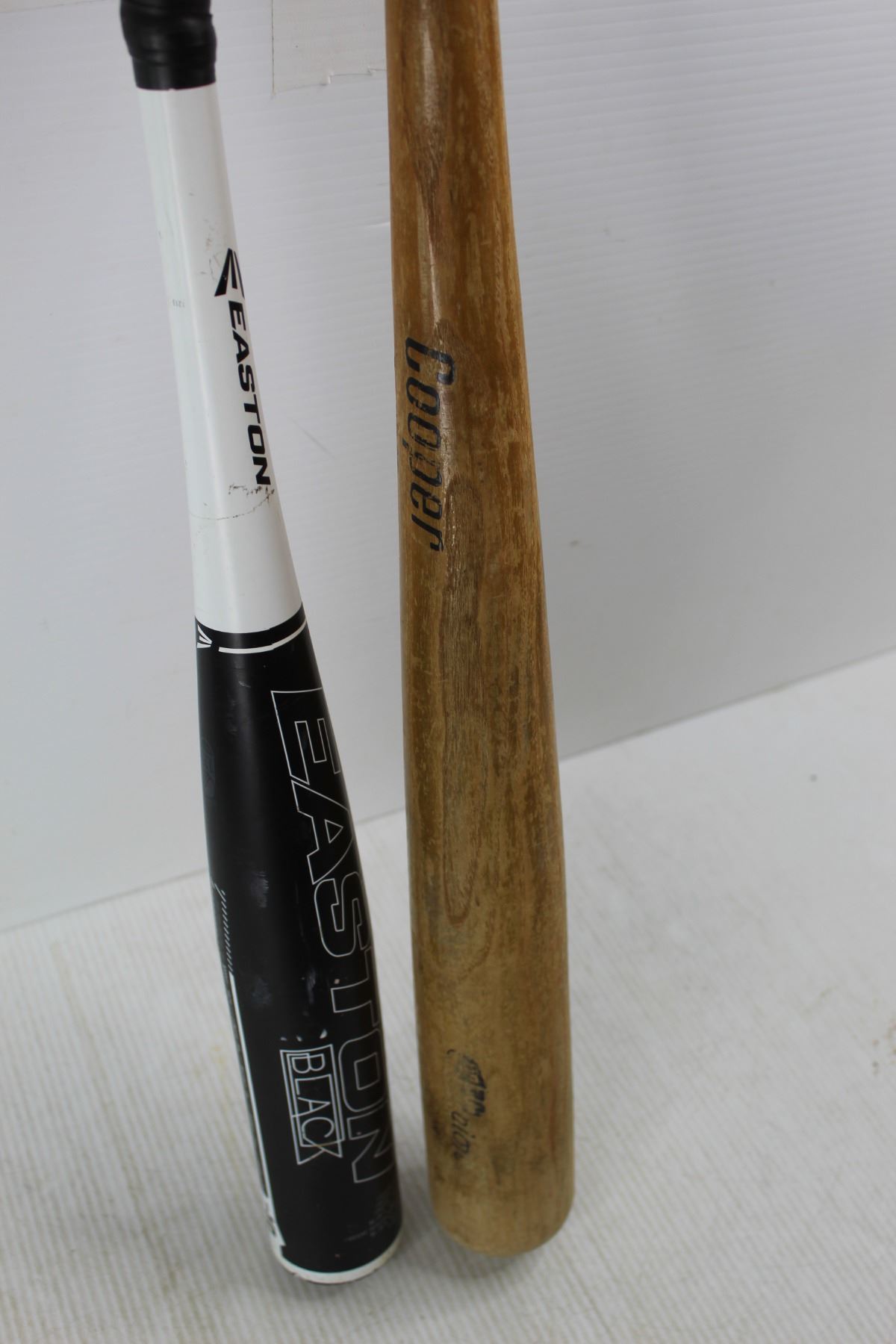 (2) Baseball Bats, Easton Black, Cooper, Wooden & Aluminum, Longest Is 34.5''