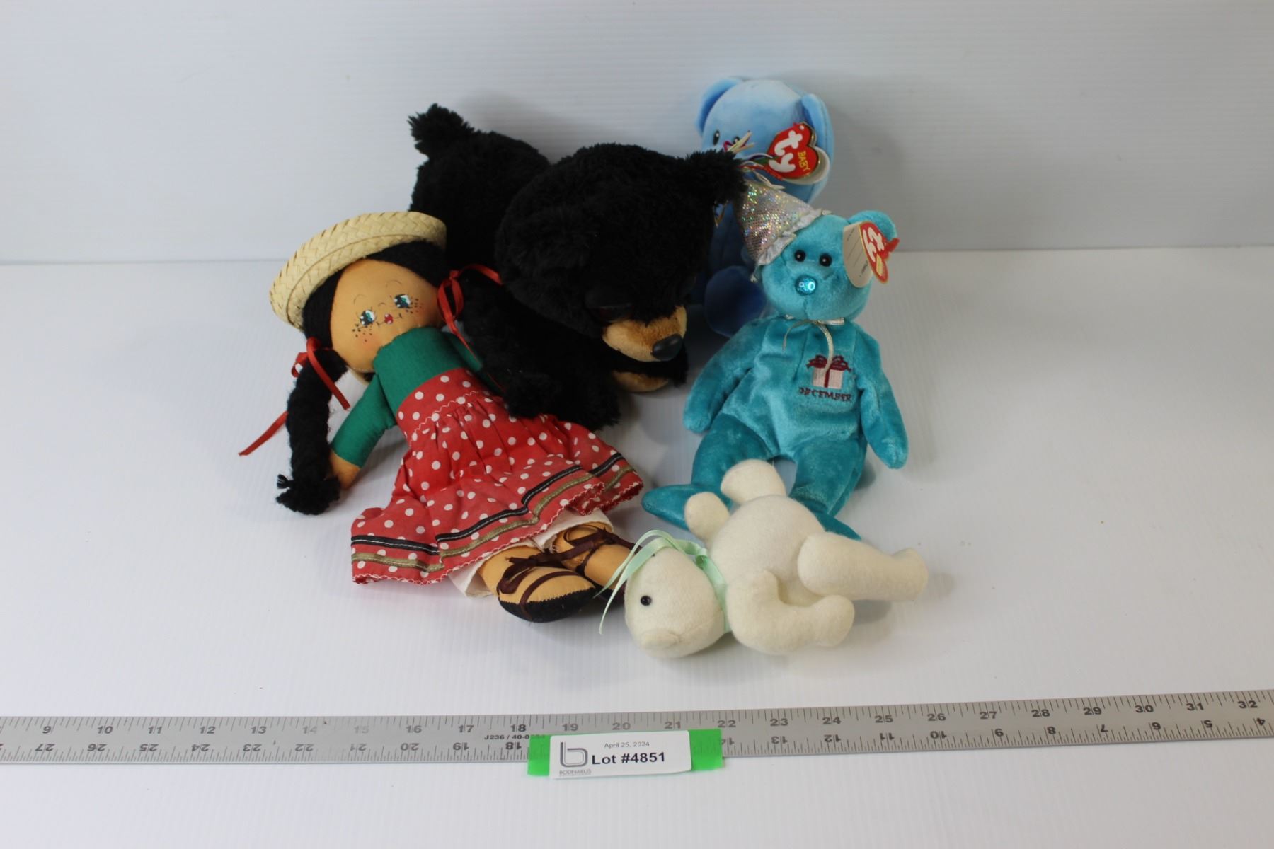 (2) Beanie Babies With Tags, Small Raggedy Ann Doll, Stuffed Toys