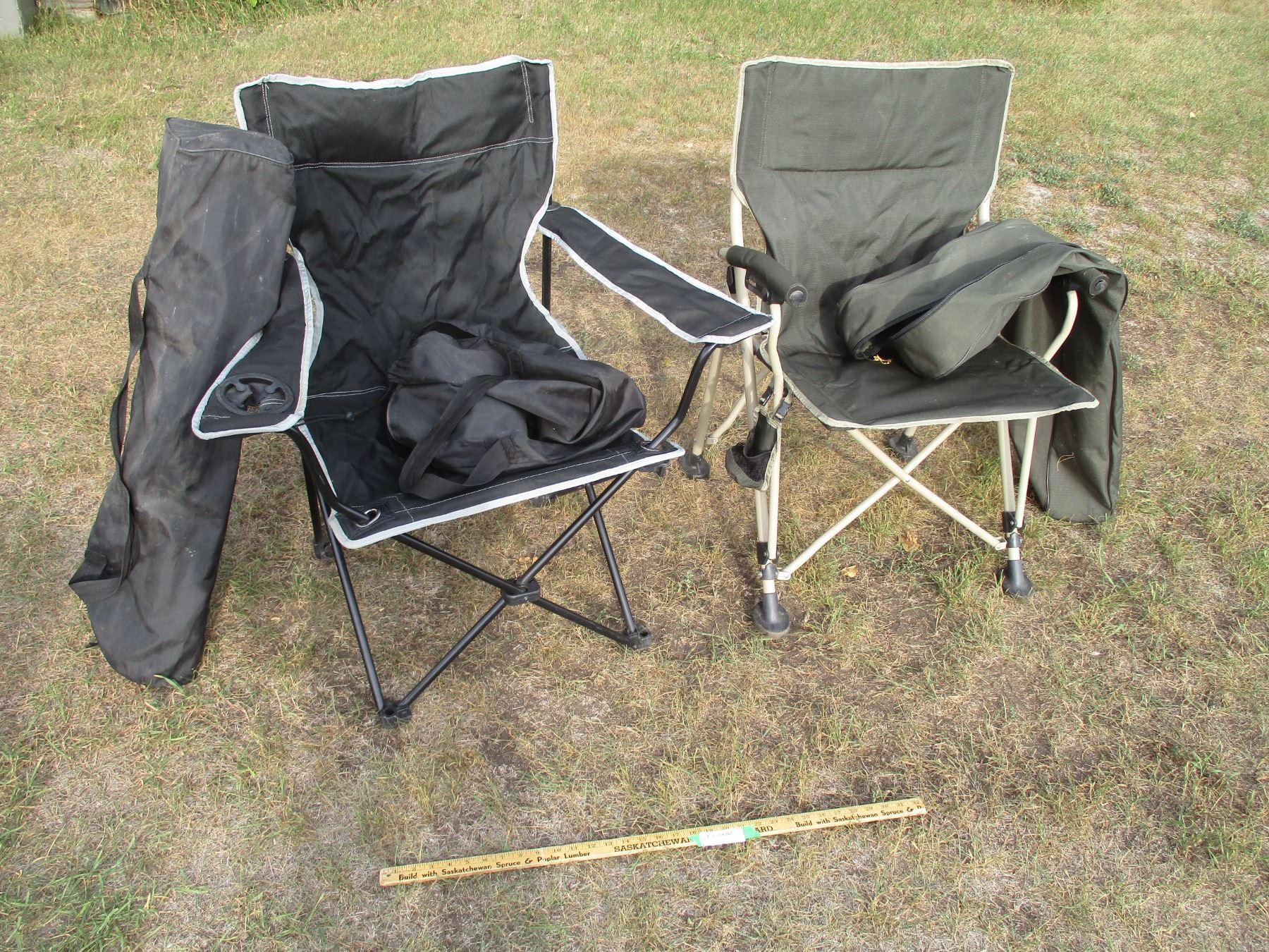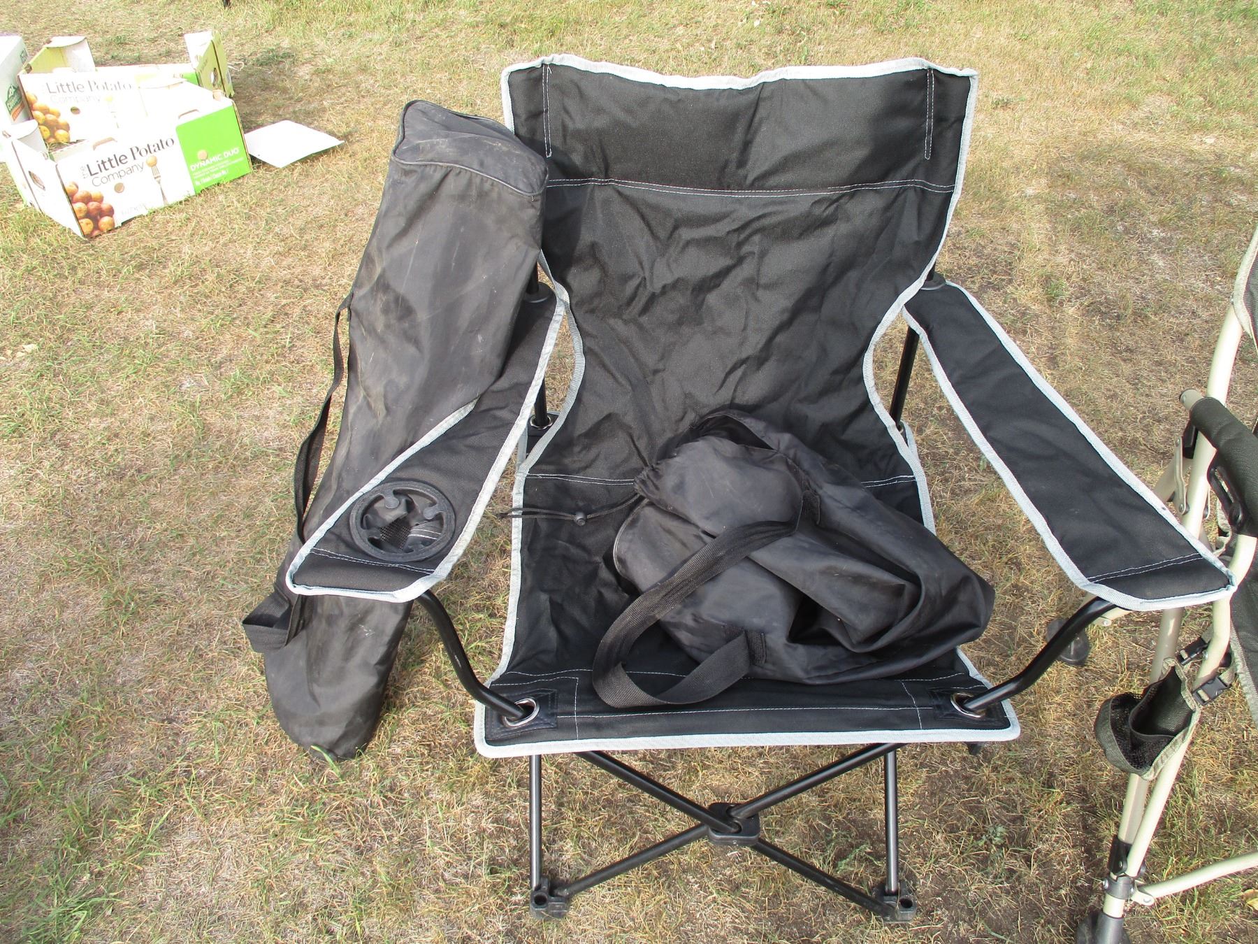 (2) Black Folding Lawn Chairs with Cases, (1) Brown Folding Lawn Chair with Case