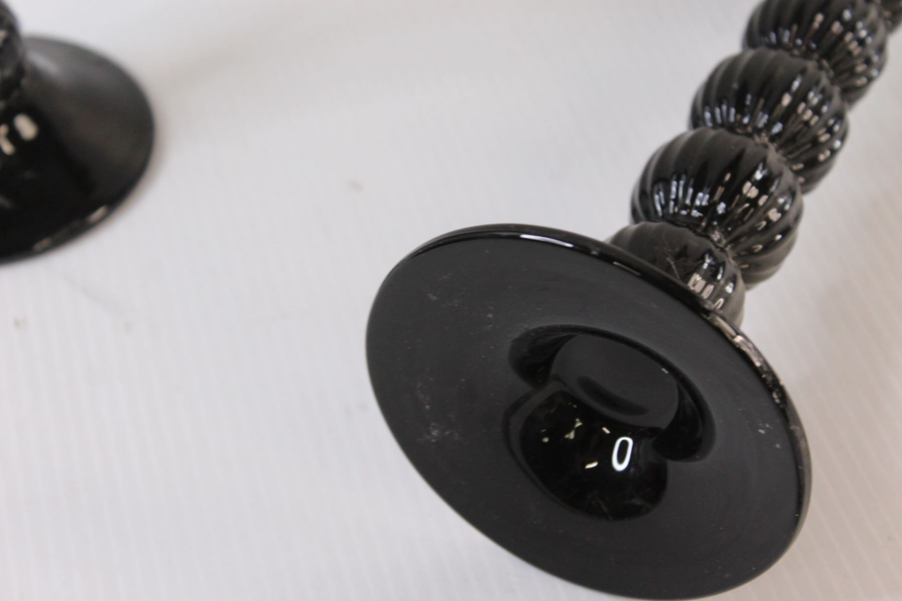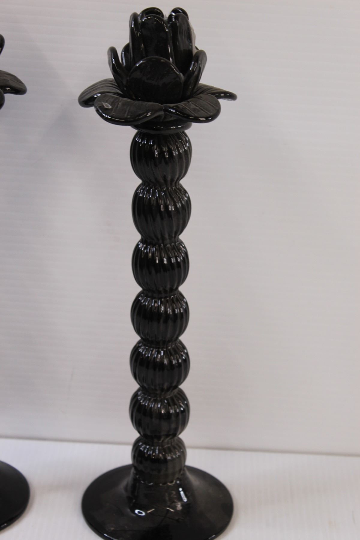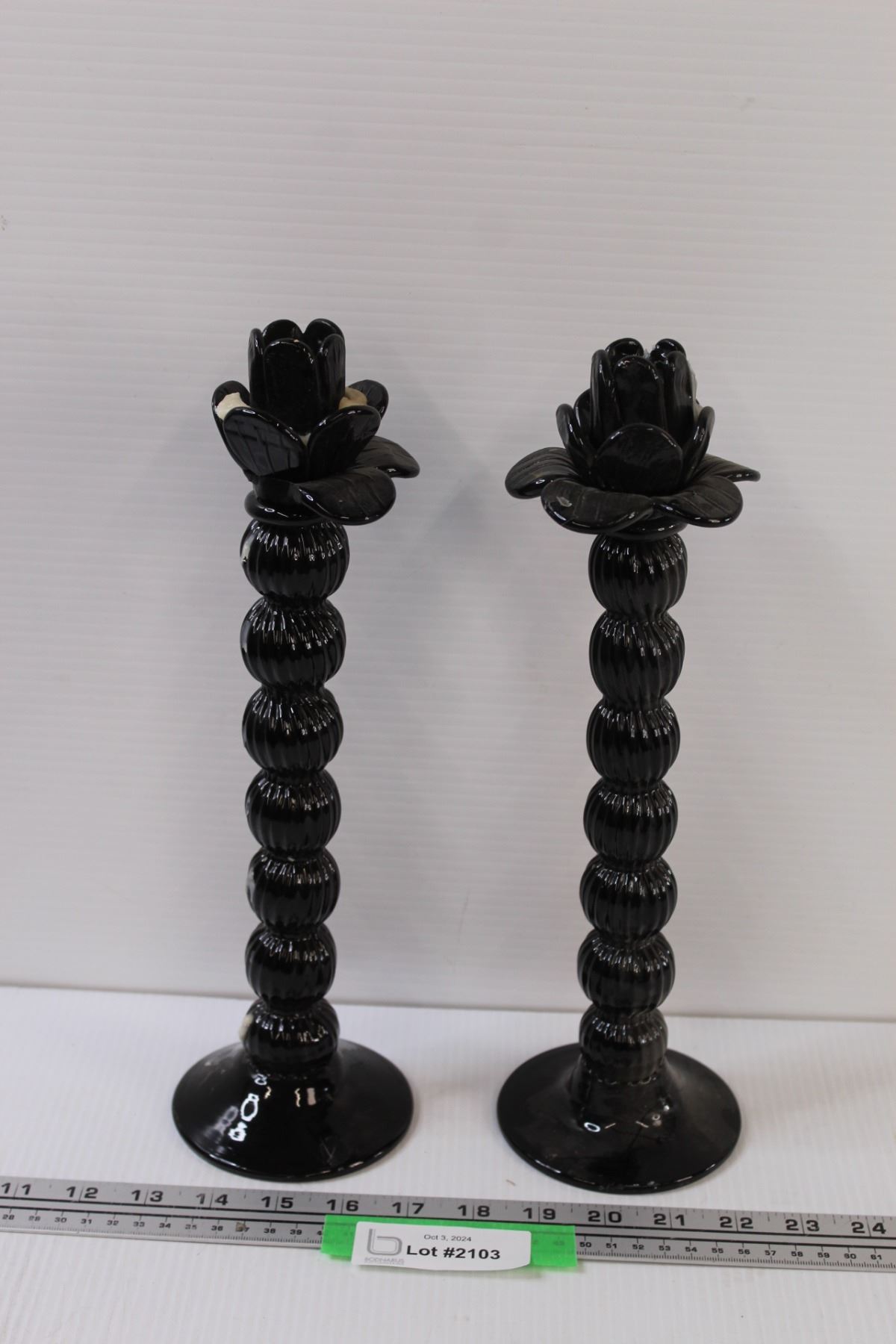 (2) Black Tall Candle Holders - 13" Tall - One Damaged, see pictures