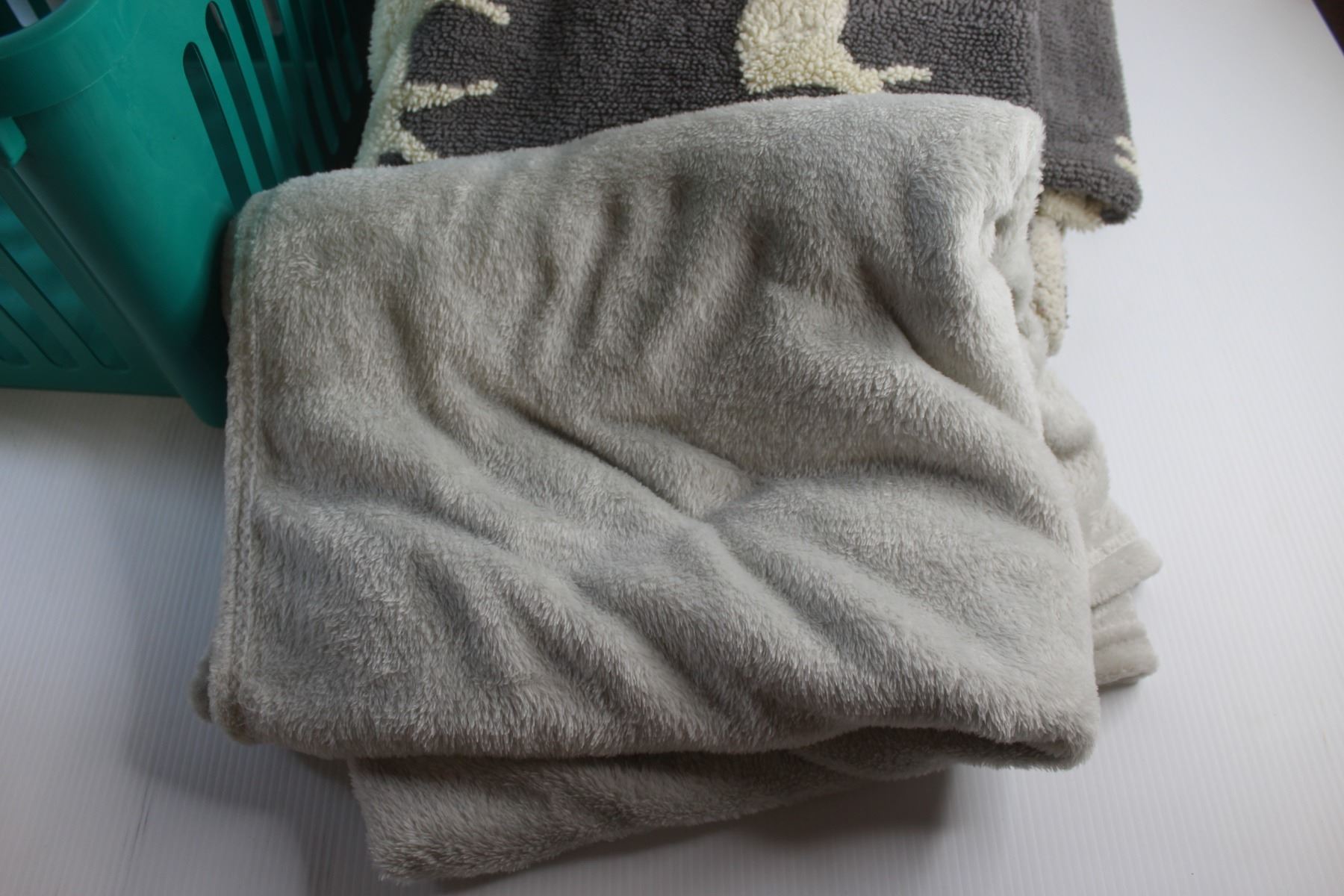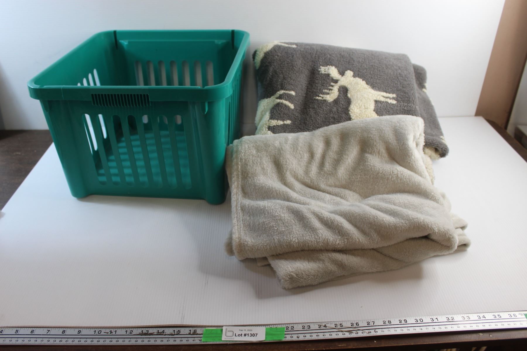 (2) Blankets and Plastic Basket