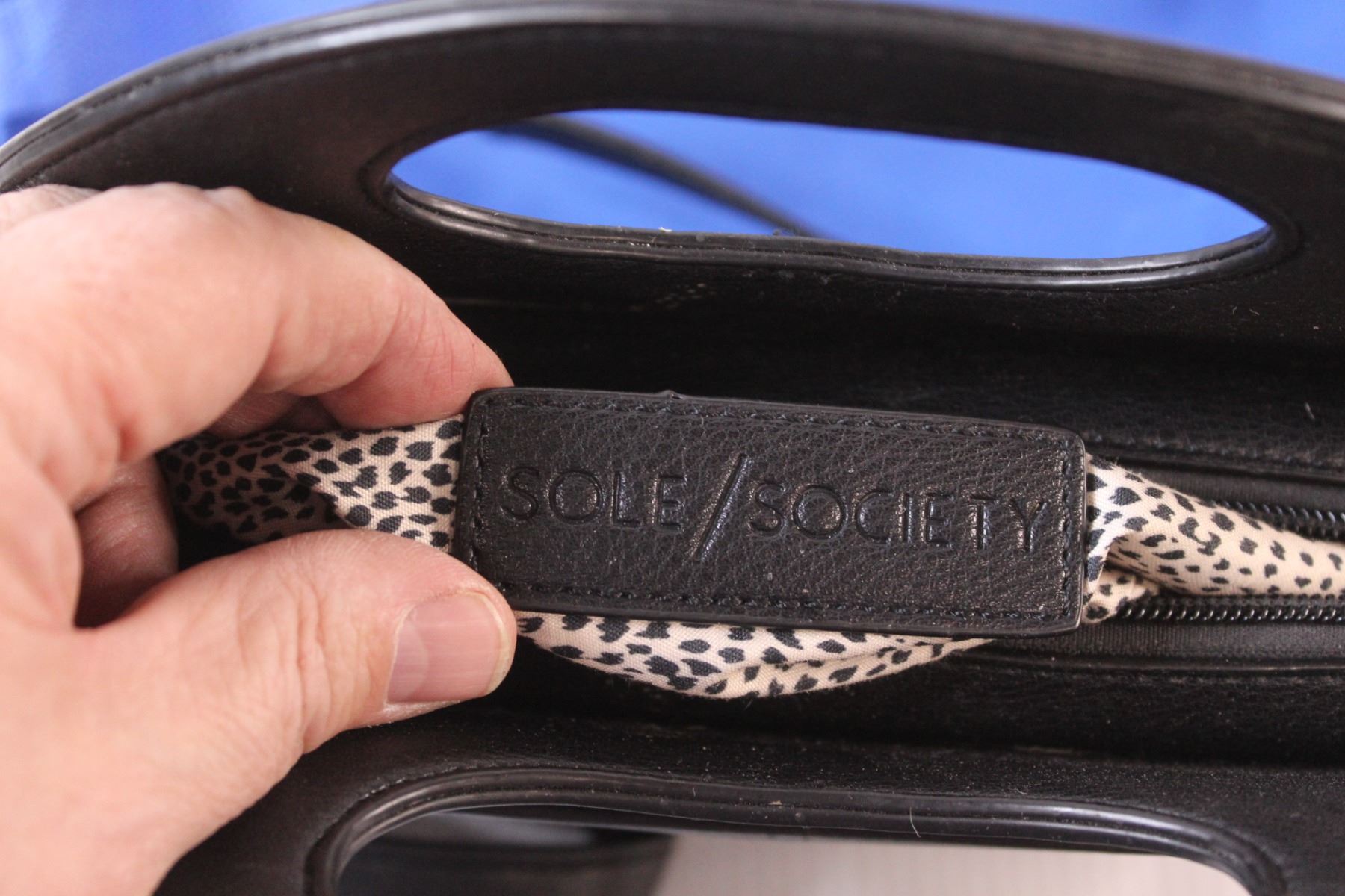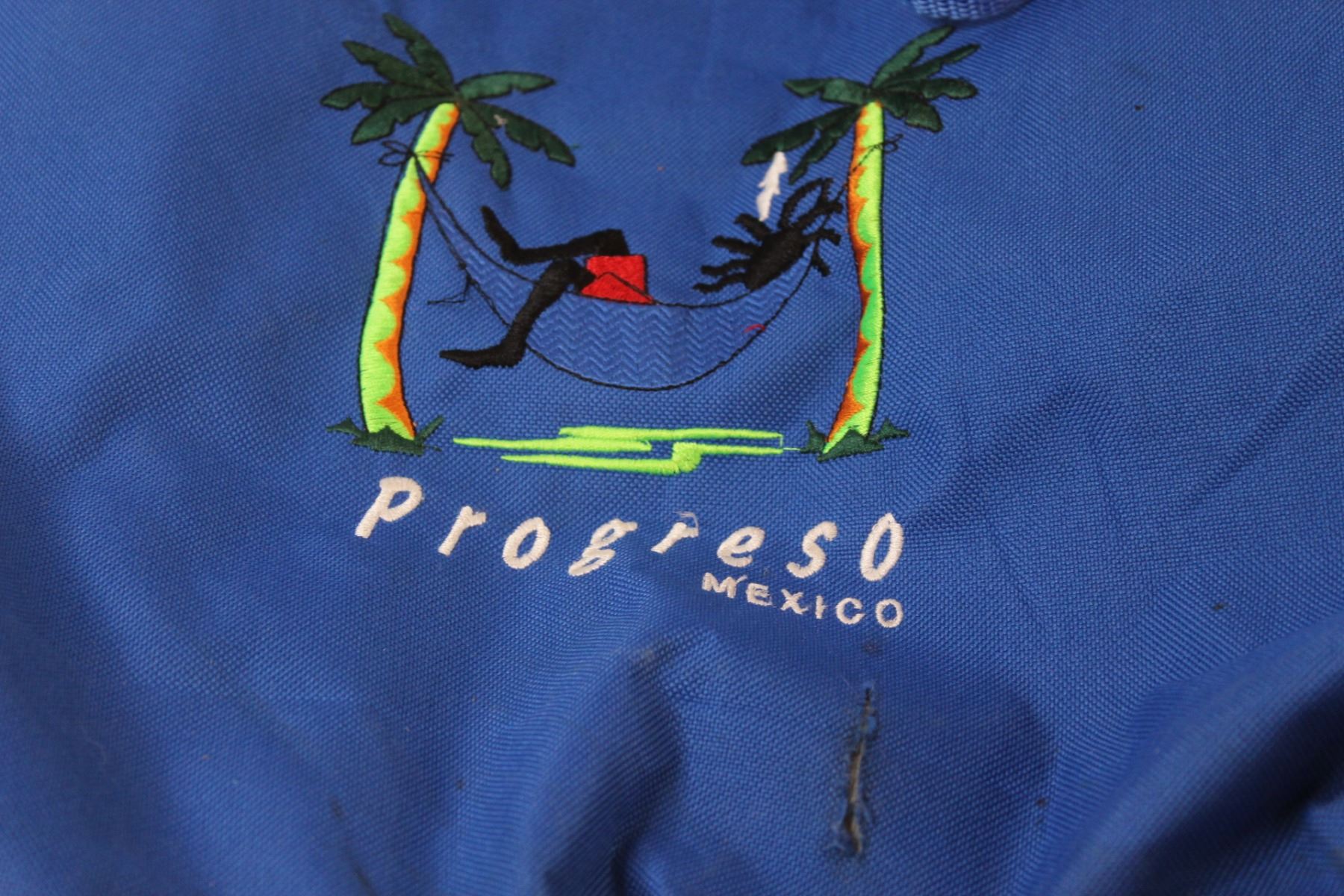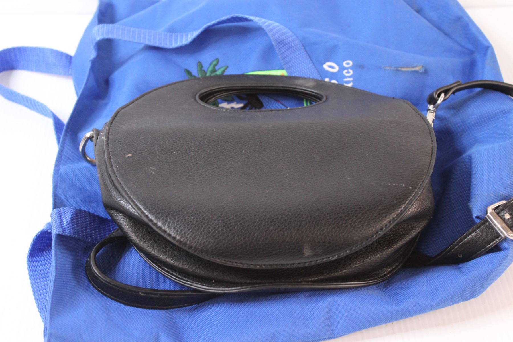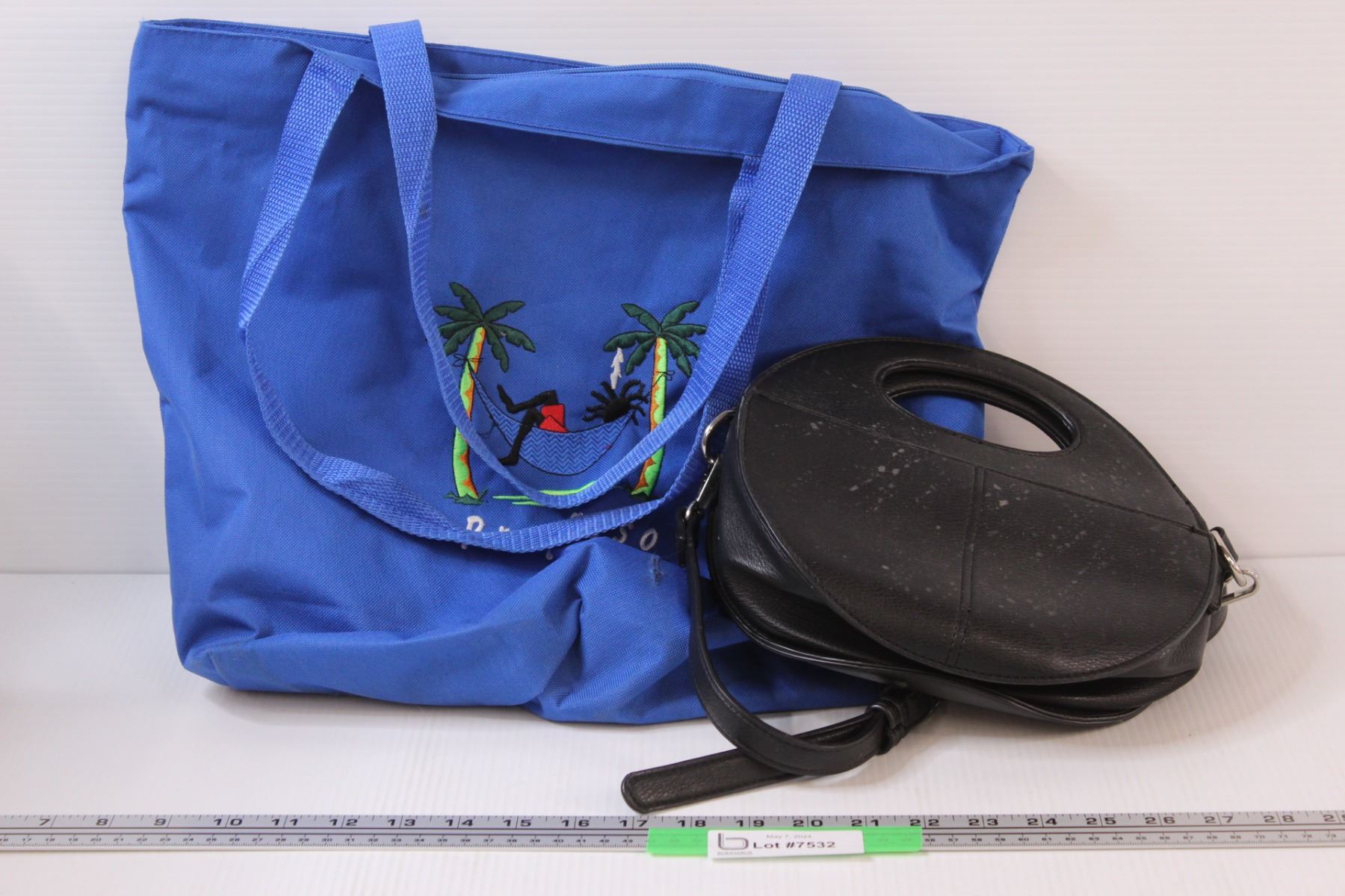 (2) Blue Canvas Progresso Mexico Beach Bag & Black Leather Purse