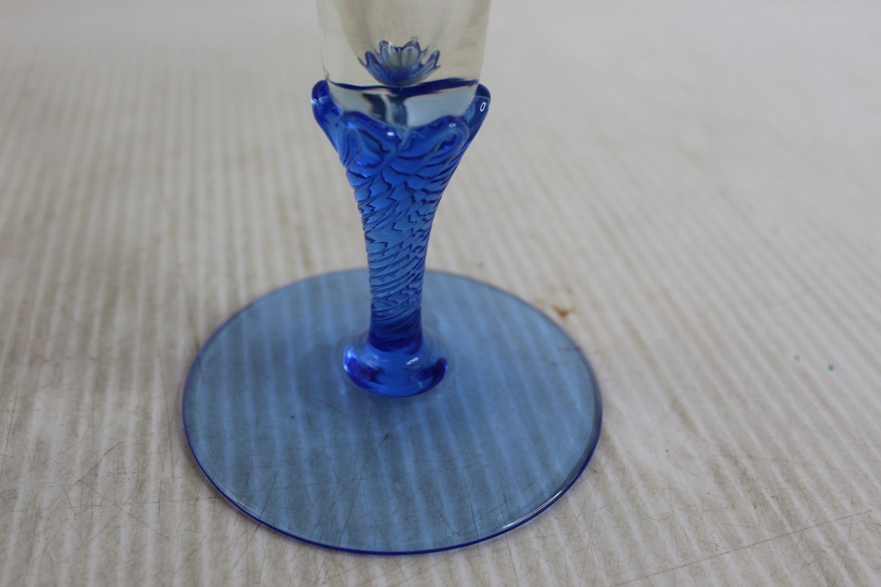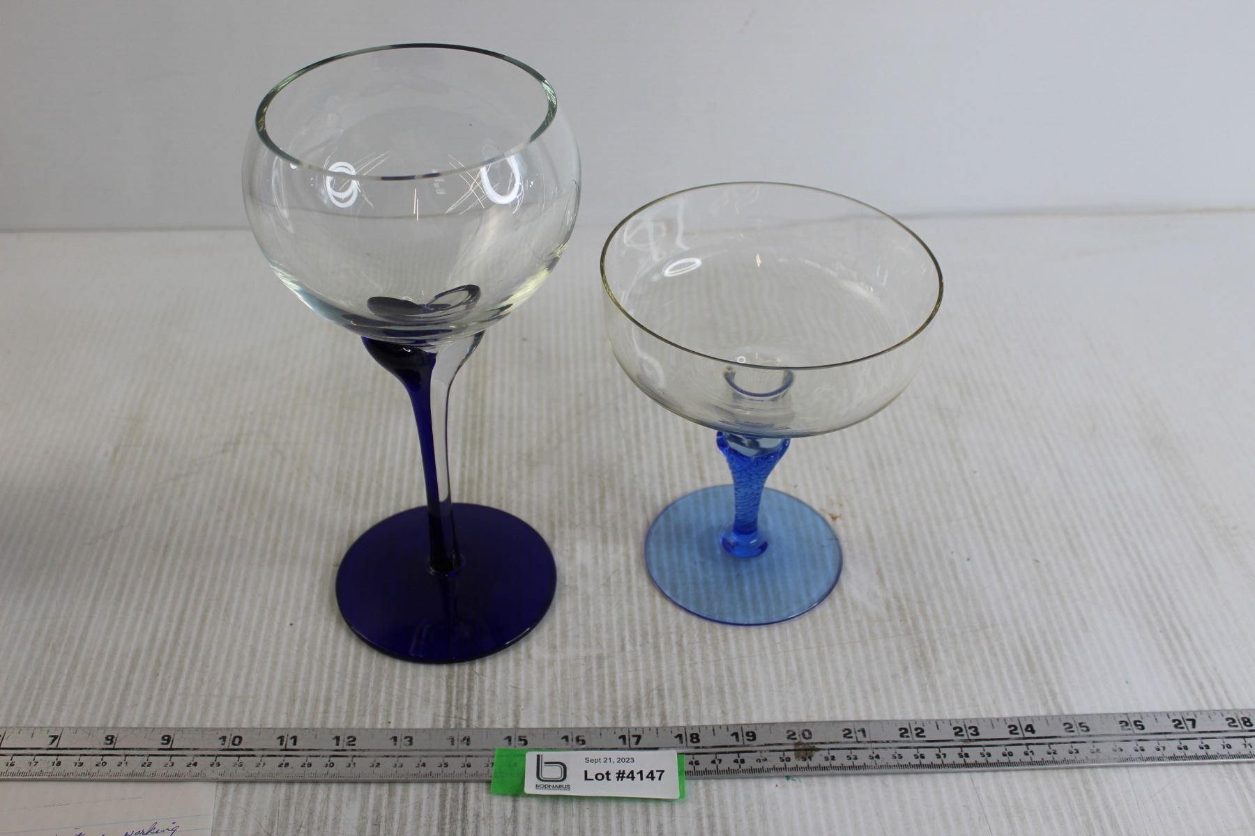 (2) Blue-Stemmed Décor Glasses (Candleholders or Rose Bowls)