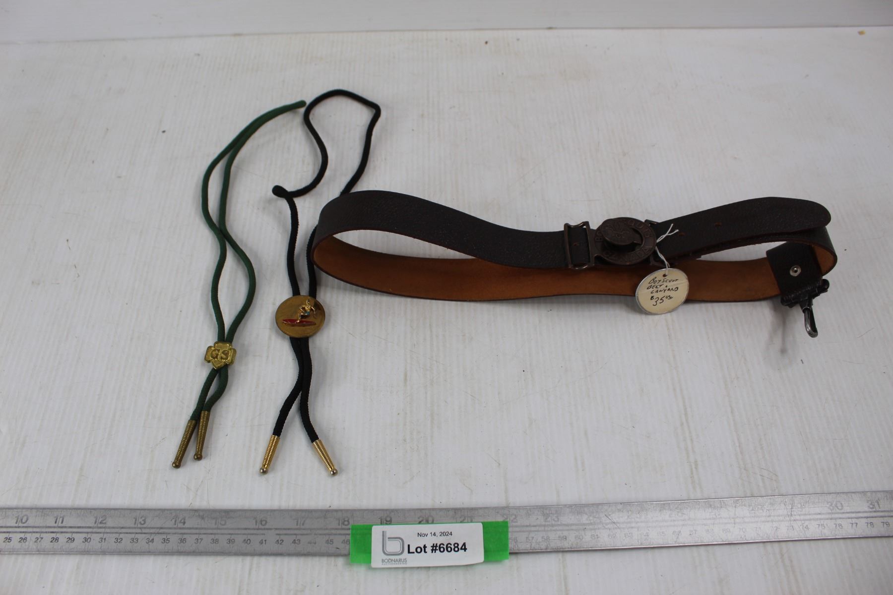 (2) Bolo Ties, GS, Hawaii, Vintage Boy Scout Belt- As Is