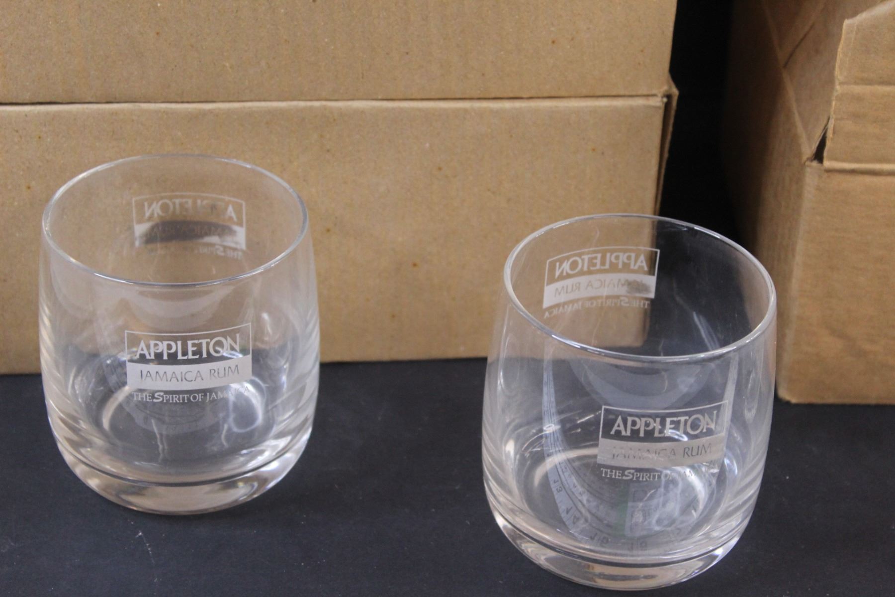 (2) Boxes of Six Appleton Whiskey Glasses & Box of Eight Clear Glass Punch Bowl Cups