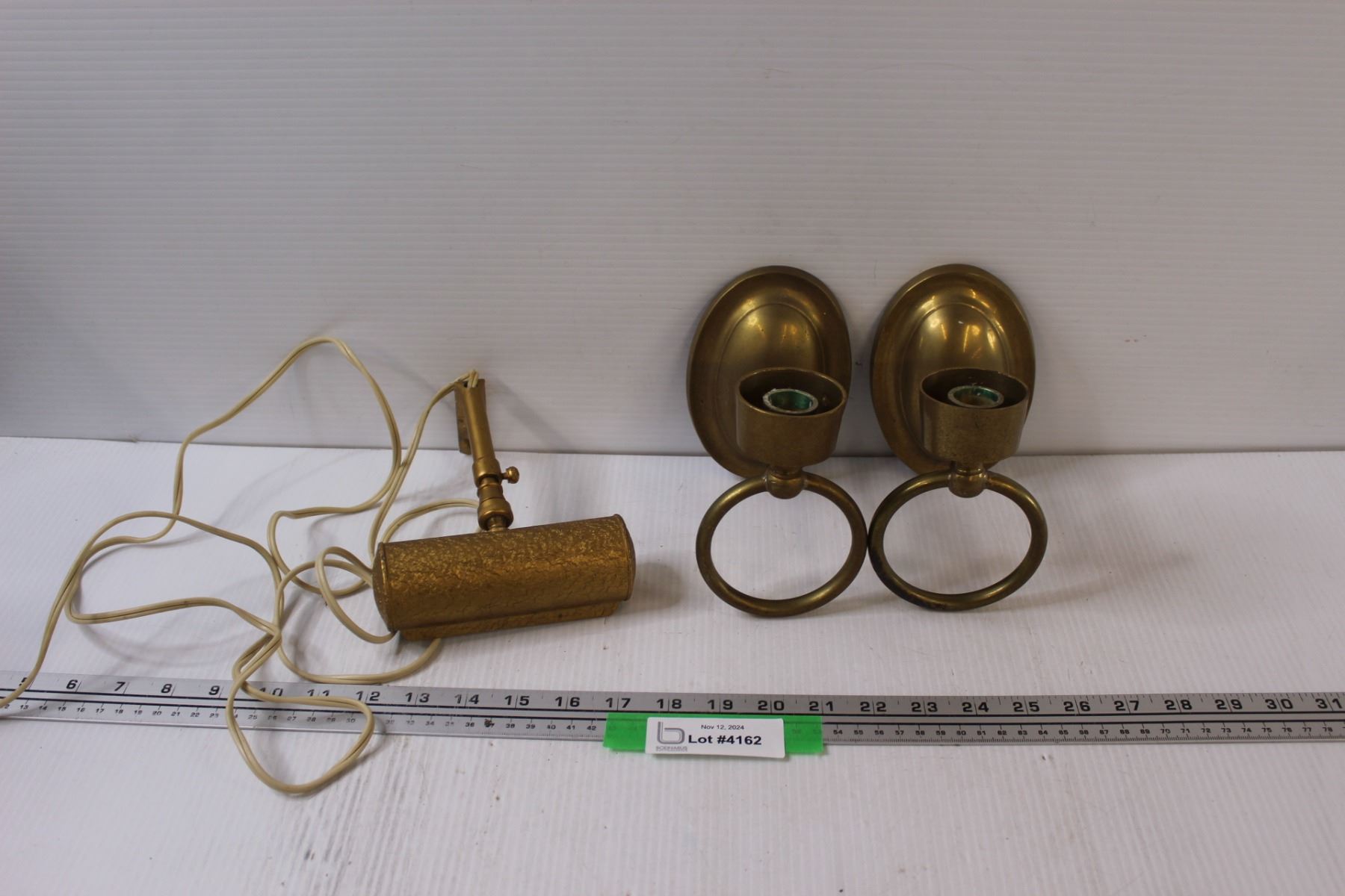 (2) Brass Candle Holders - Wall Mount & Wall Mount Lamp - Needs Bulb, as is