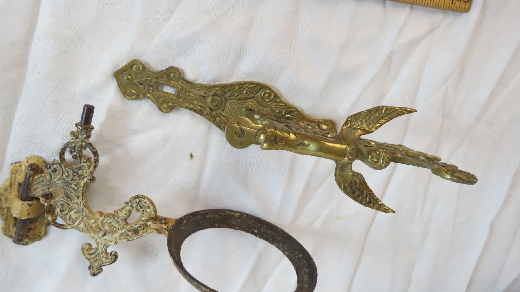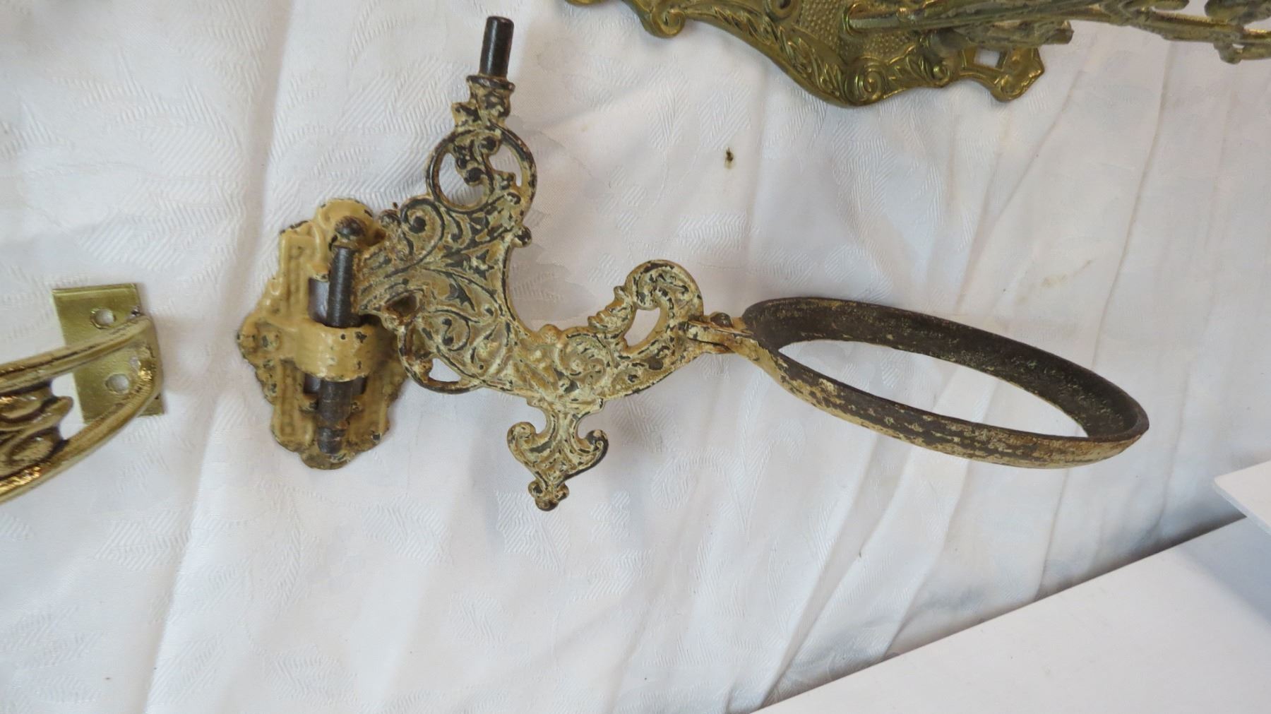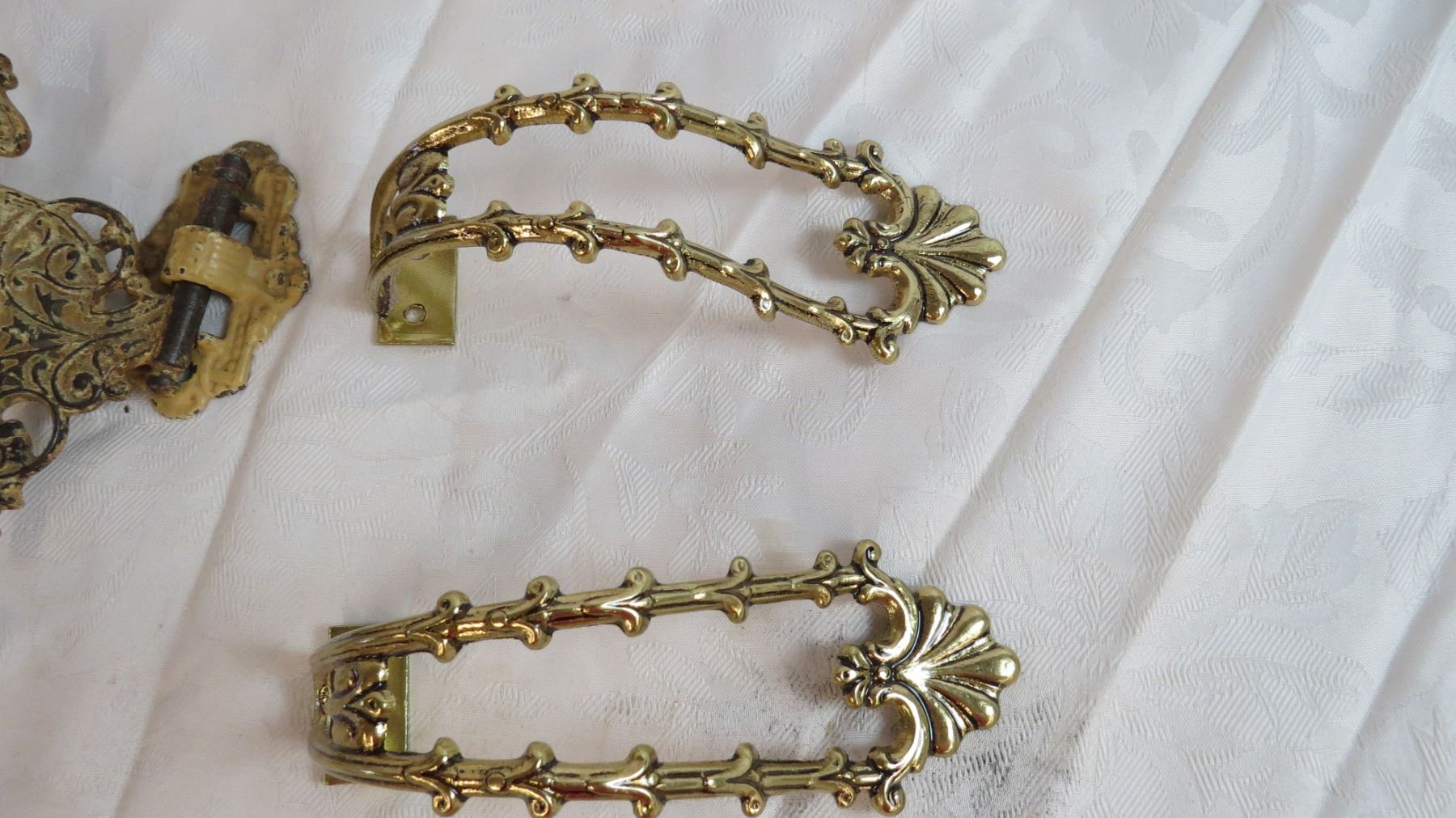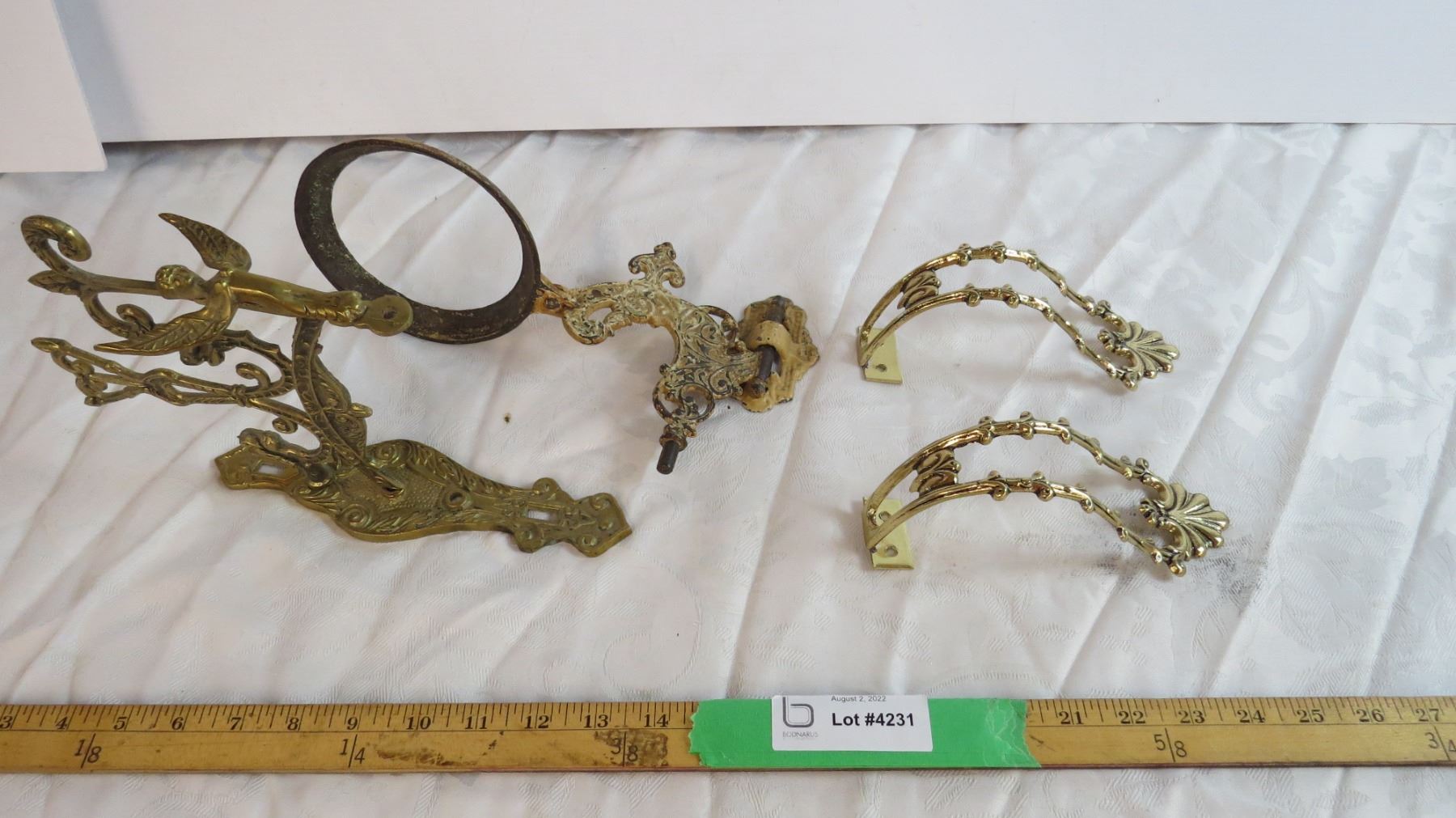 (2) Brass Curtain Tiebacks + 1 Plant hanger + 1 Antique Lamp Holder