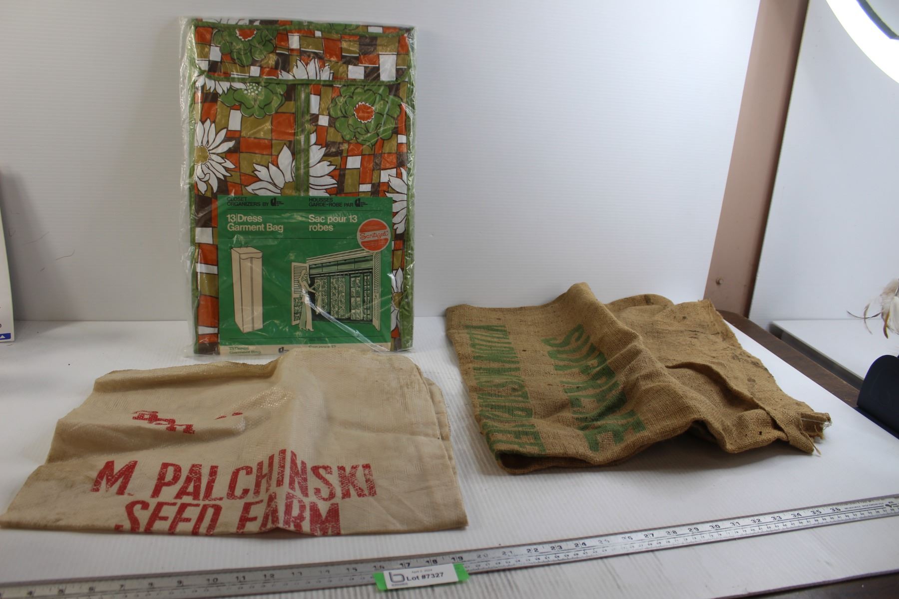 (2) Burlap Sacks, Dress Garment Bag - Sealed