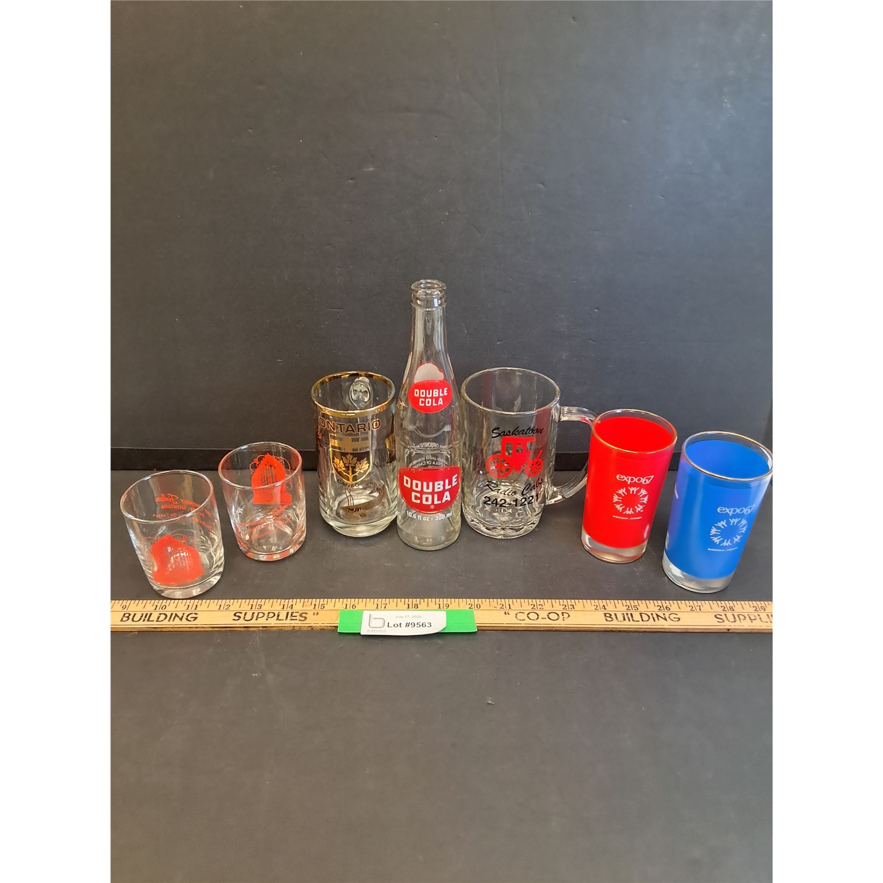 (2) Butte Montana "Finlon" Hotel, (2) Expo '67 Glasses, Saskatoon Radio Cabs, Ontario, Double Cola B