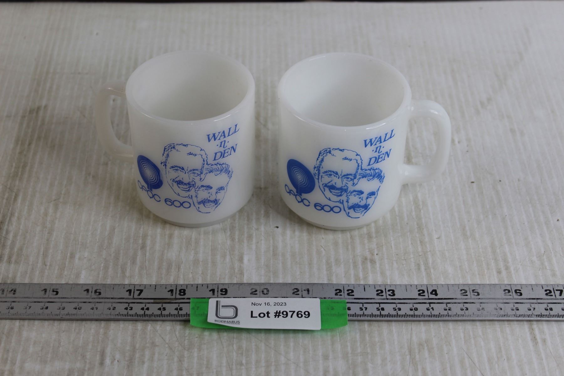 (2) CFQC 600 Radio Wall-N-Den Glasbake Mugs