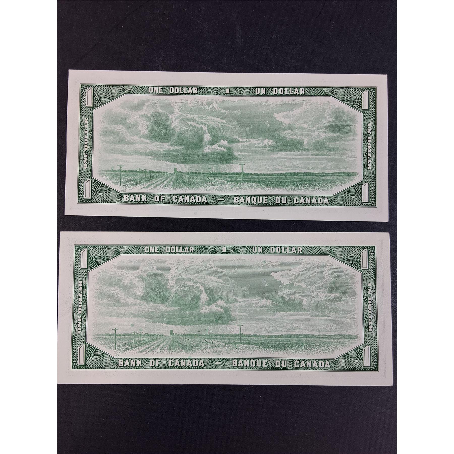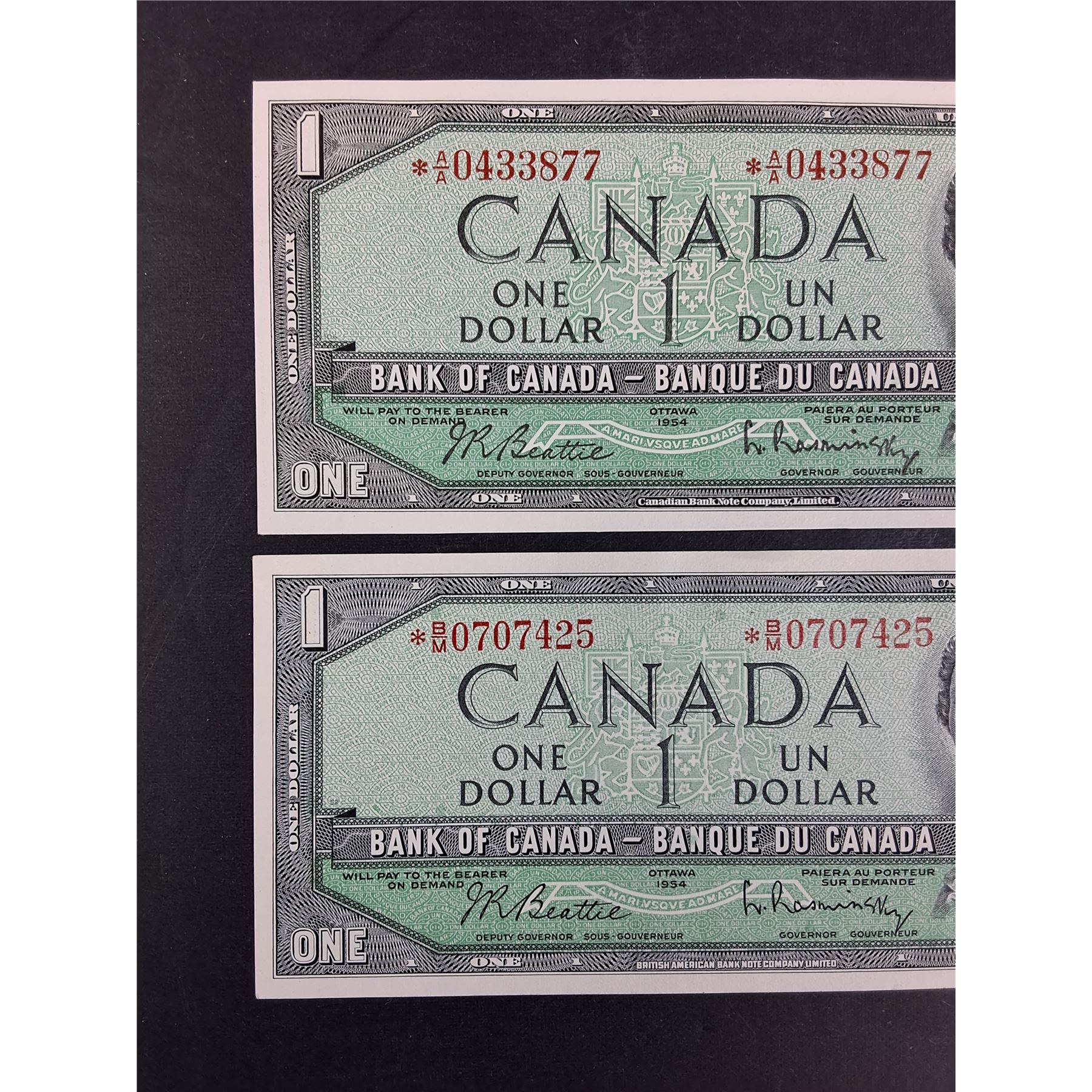 (2) Canadian 1954 One Dollar Bills - Beattie/Raminsky