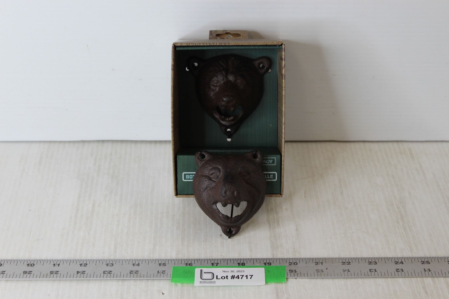 (2) Cast Iron Wall Mounted Bear Beer Bottle Openers