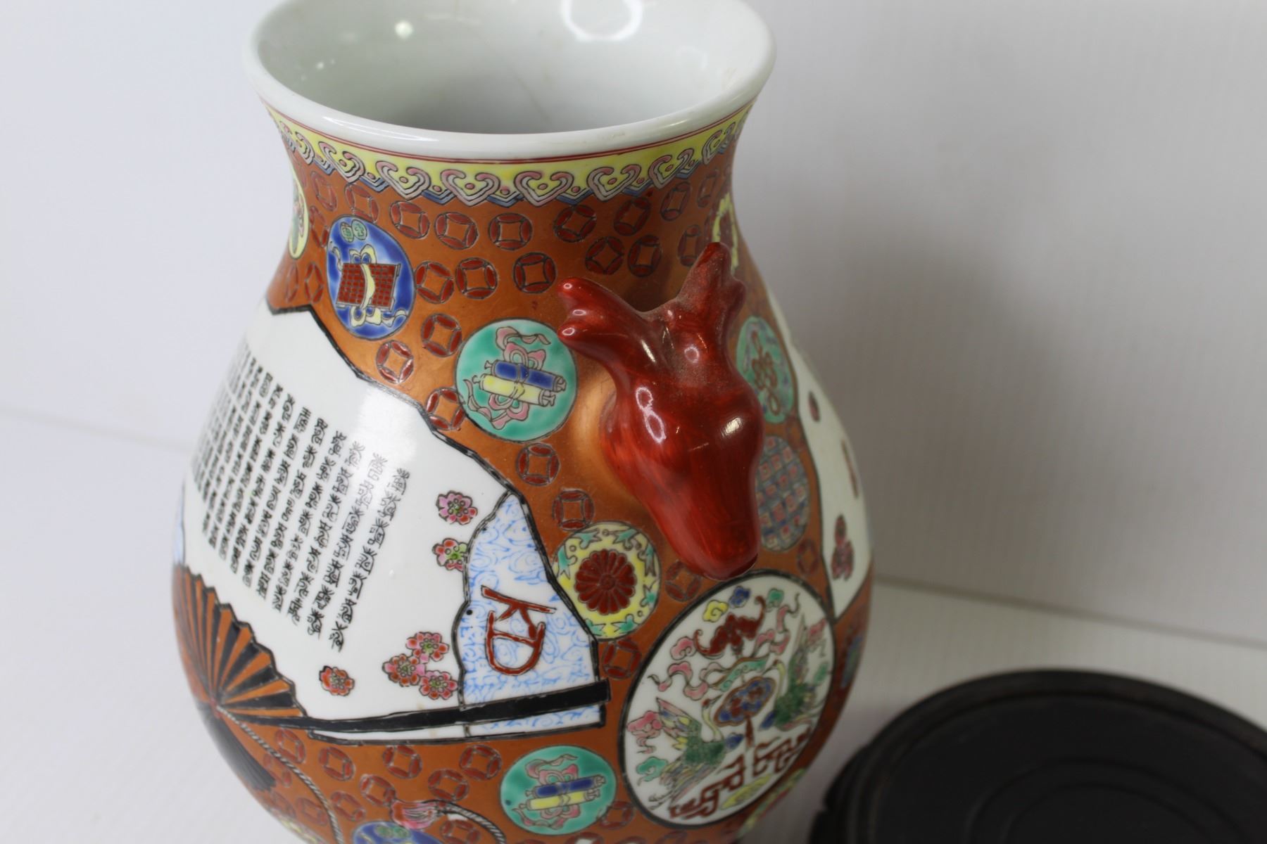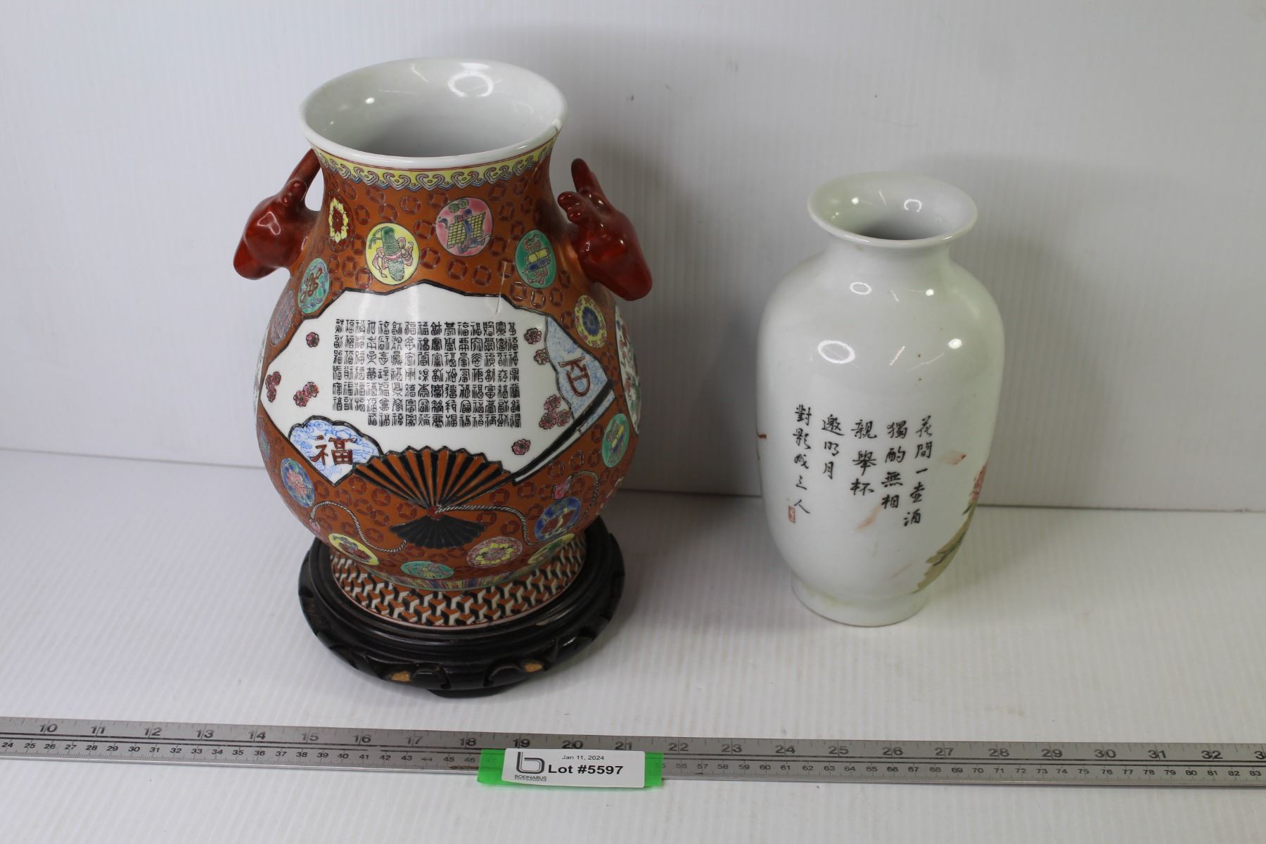 (2) Ceramic Asian Themed Vases (larger vase is cracked)