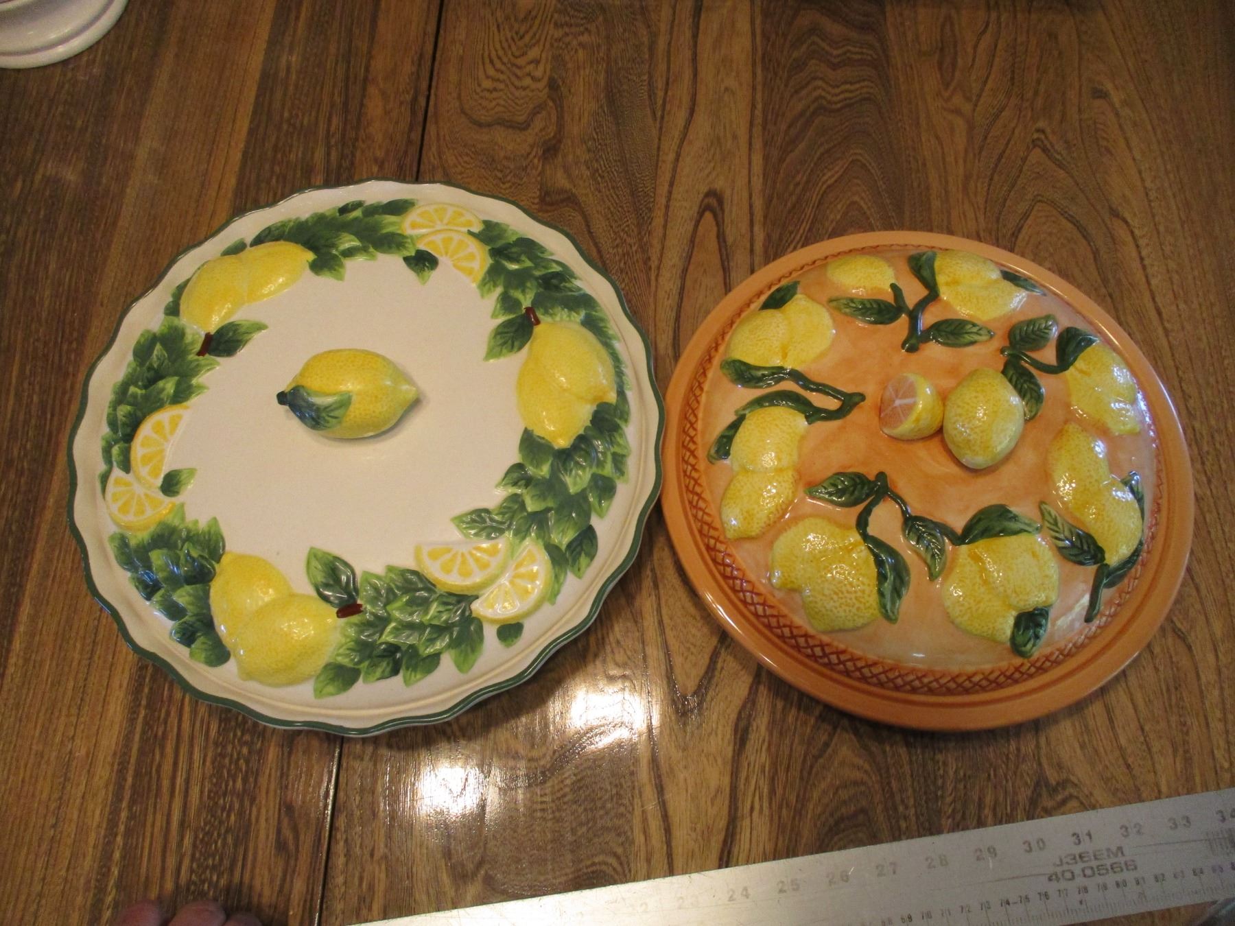 (2) Ceramic Pie Holder (Cake Saver) w/Lids - Lemon Design