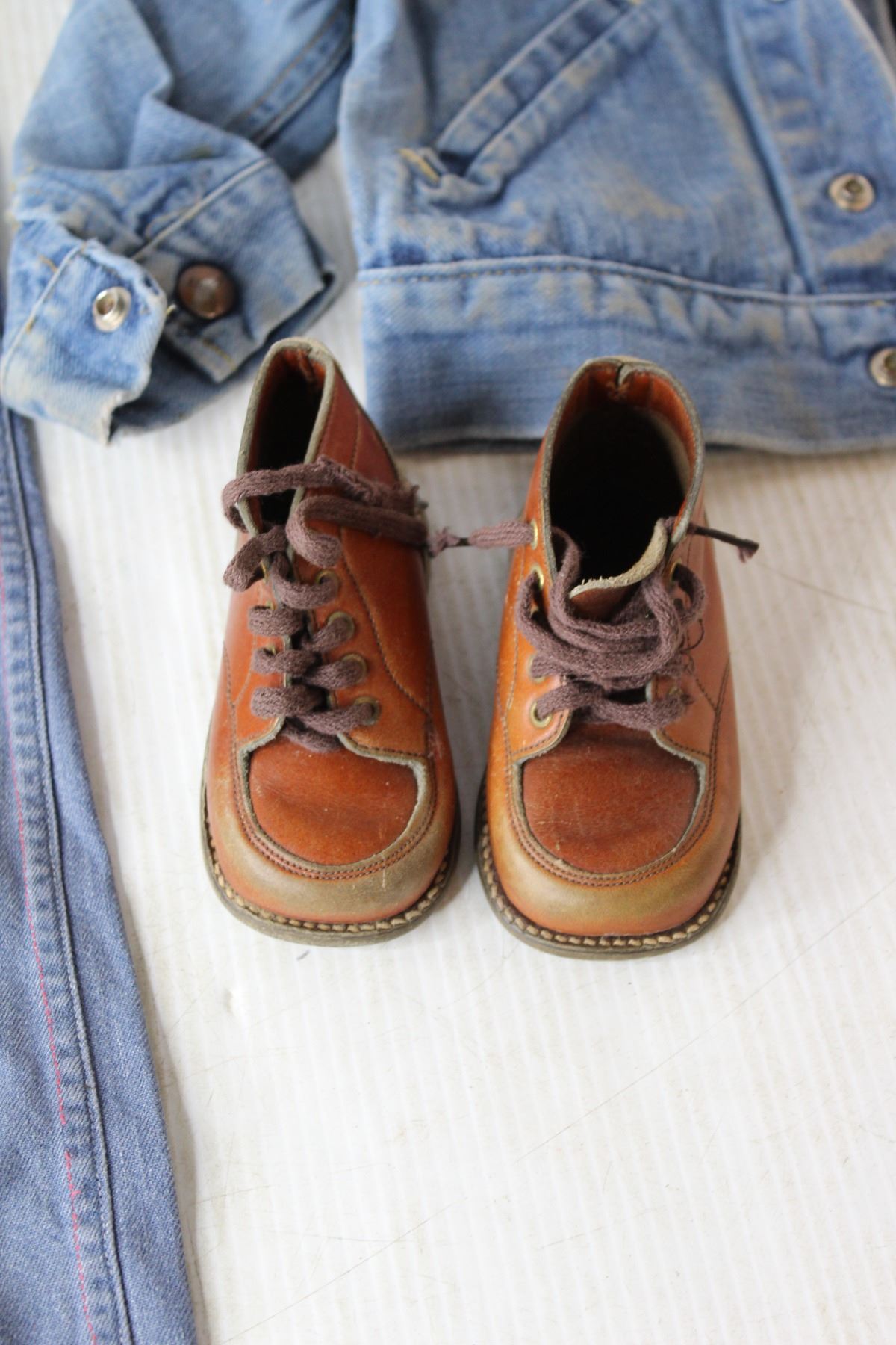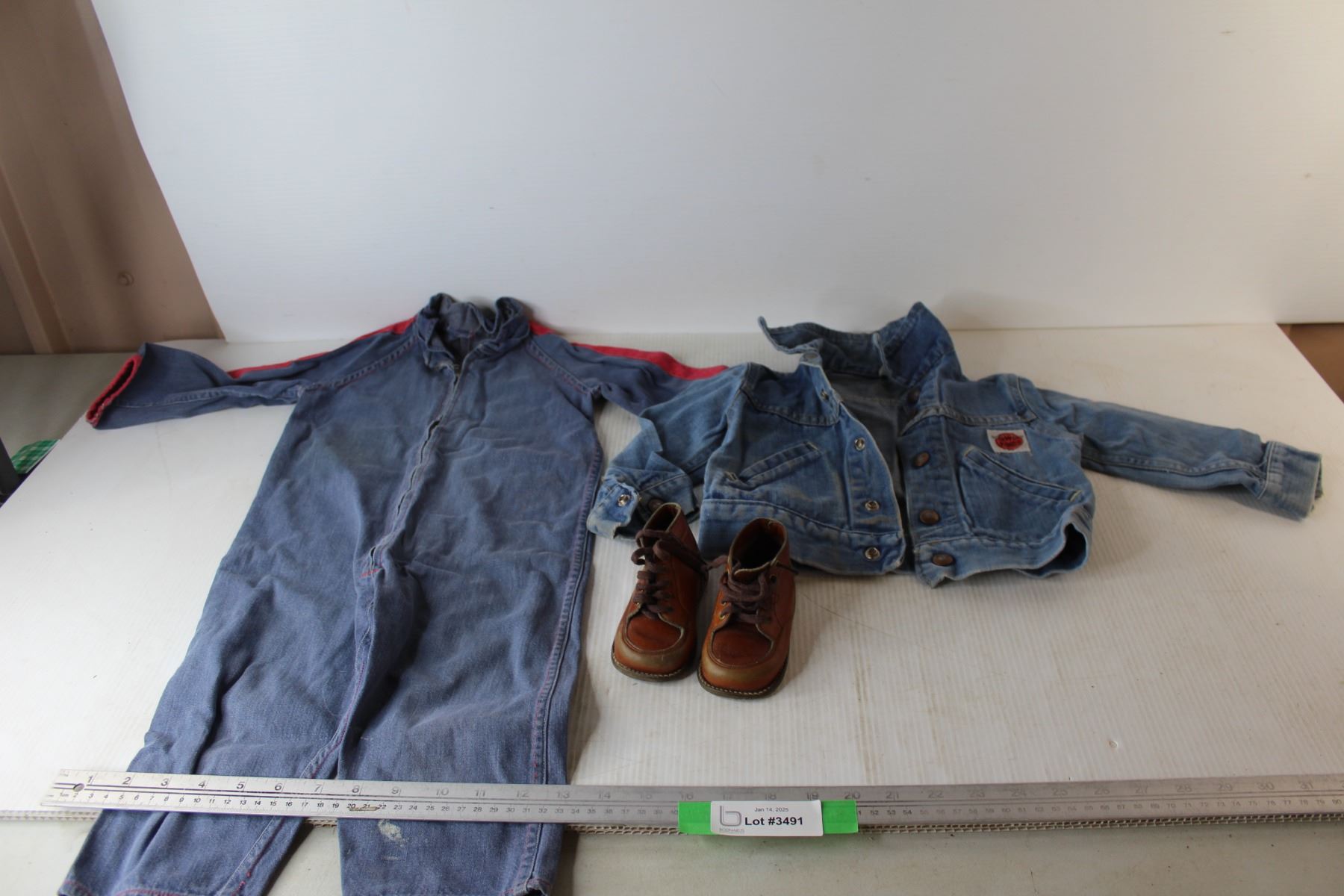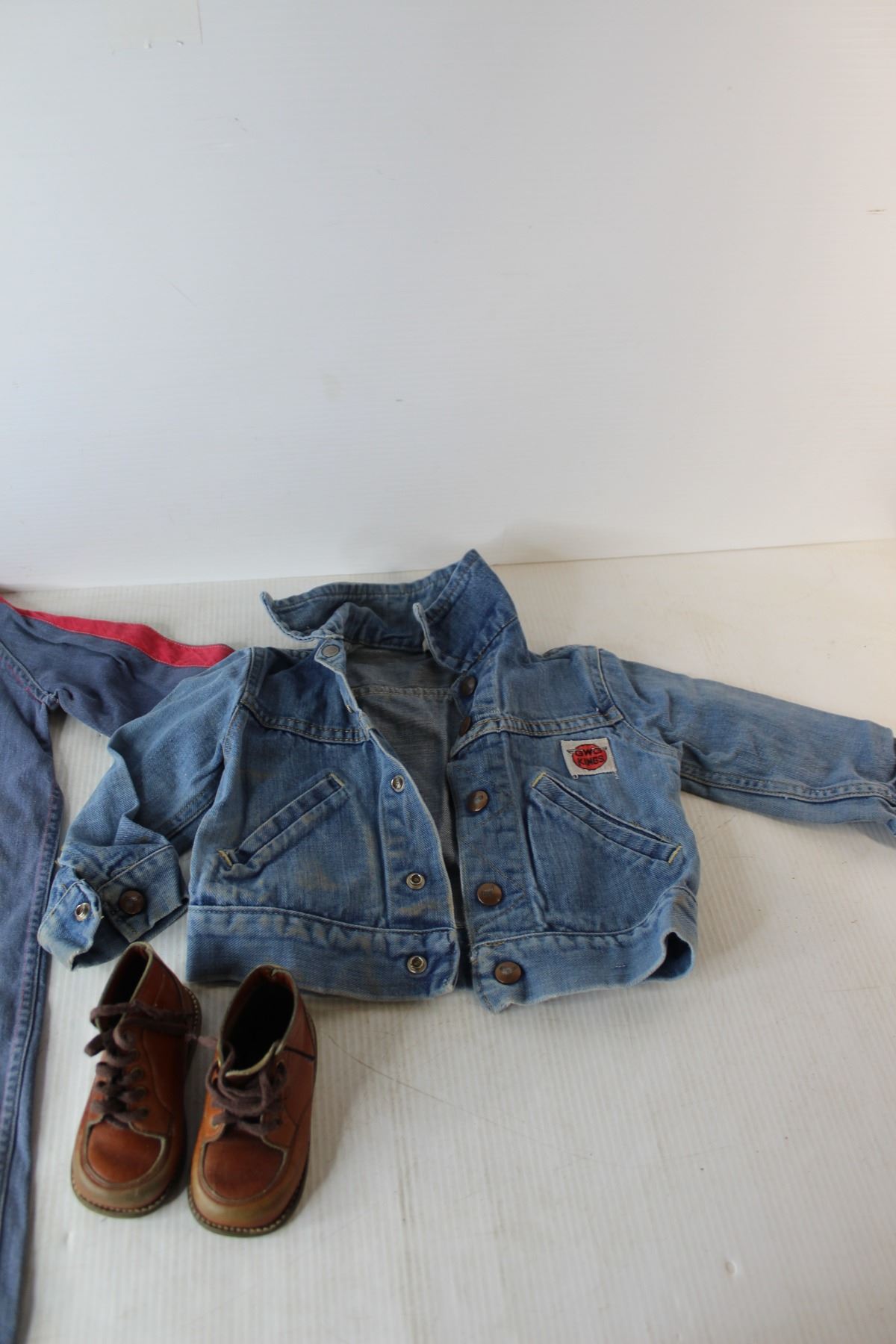 (2) Children's Denim Clothing Pieces- Both Approx. Size 2, Children's Leather Like Laced Shoes- As Is