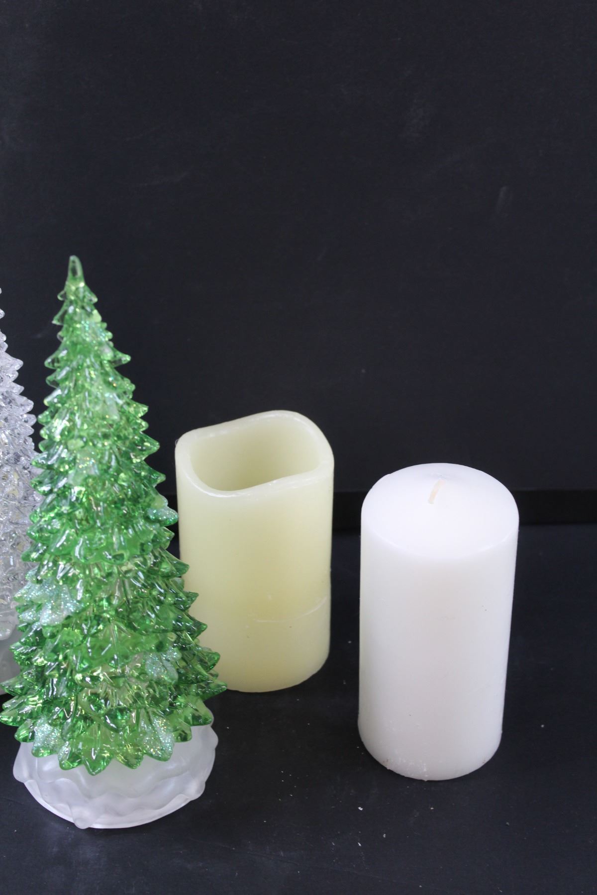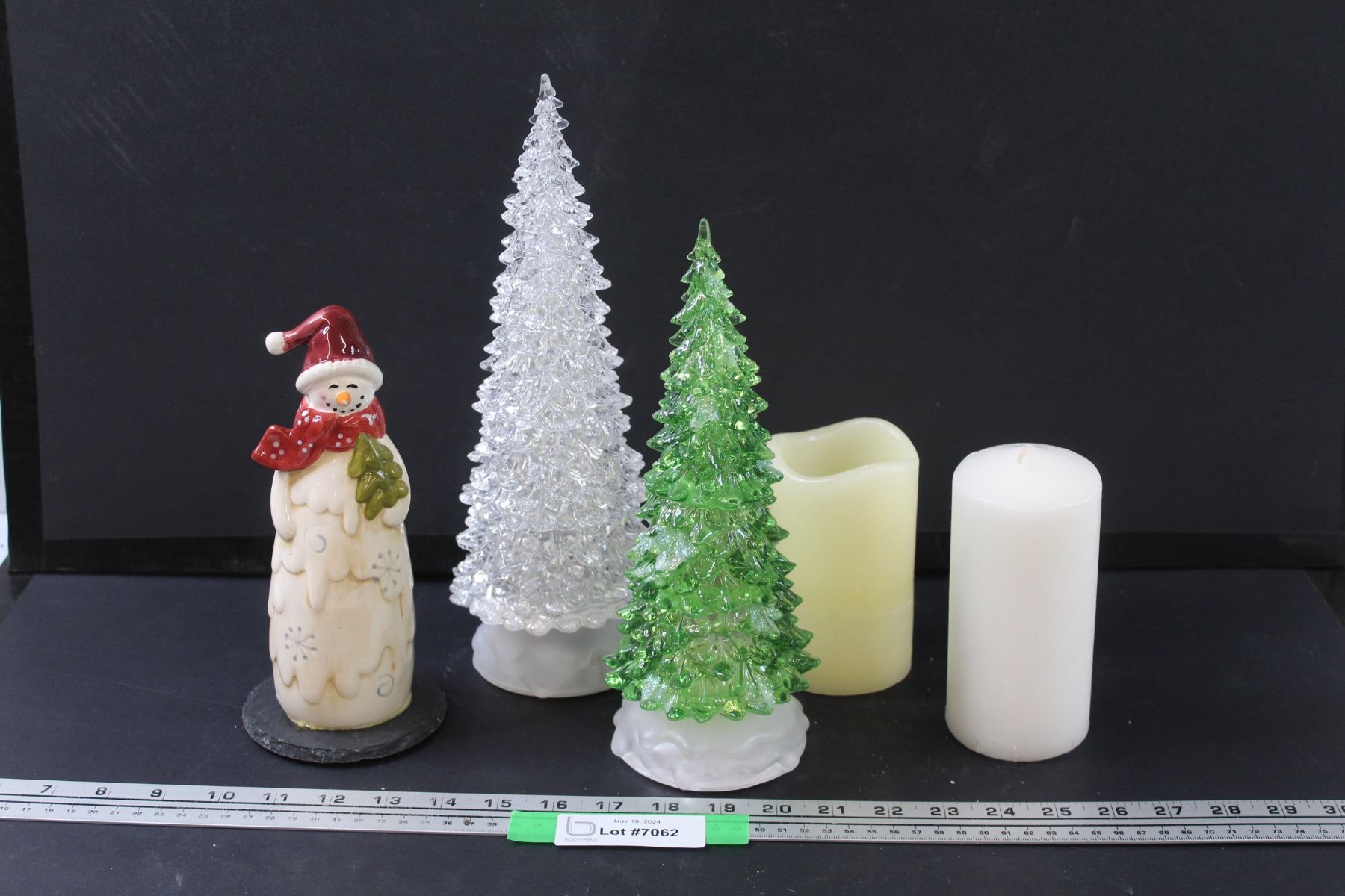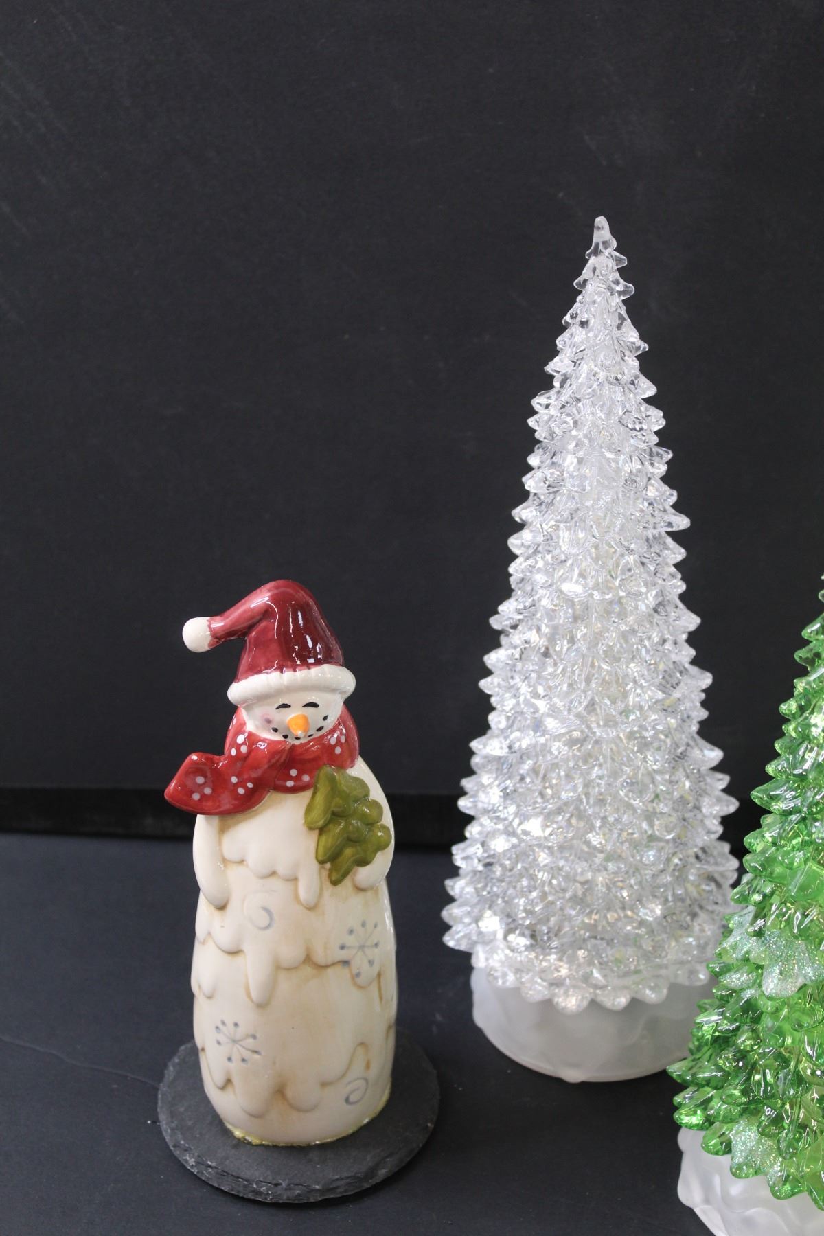 (2) Christmas Tree (Light-up- Battery), Snowman Figurine & (2) Candles