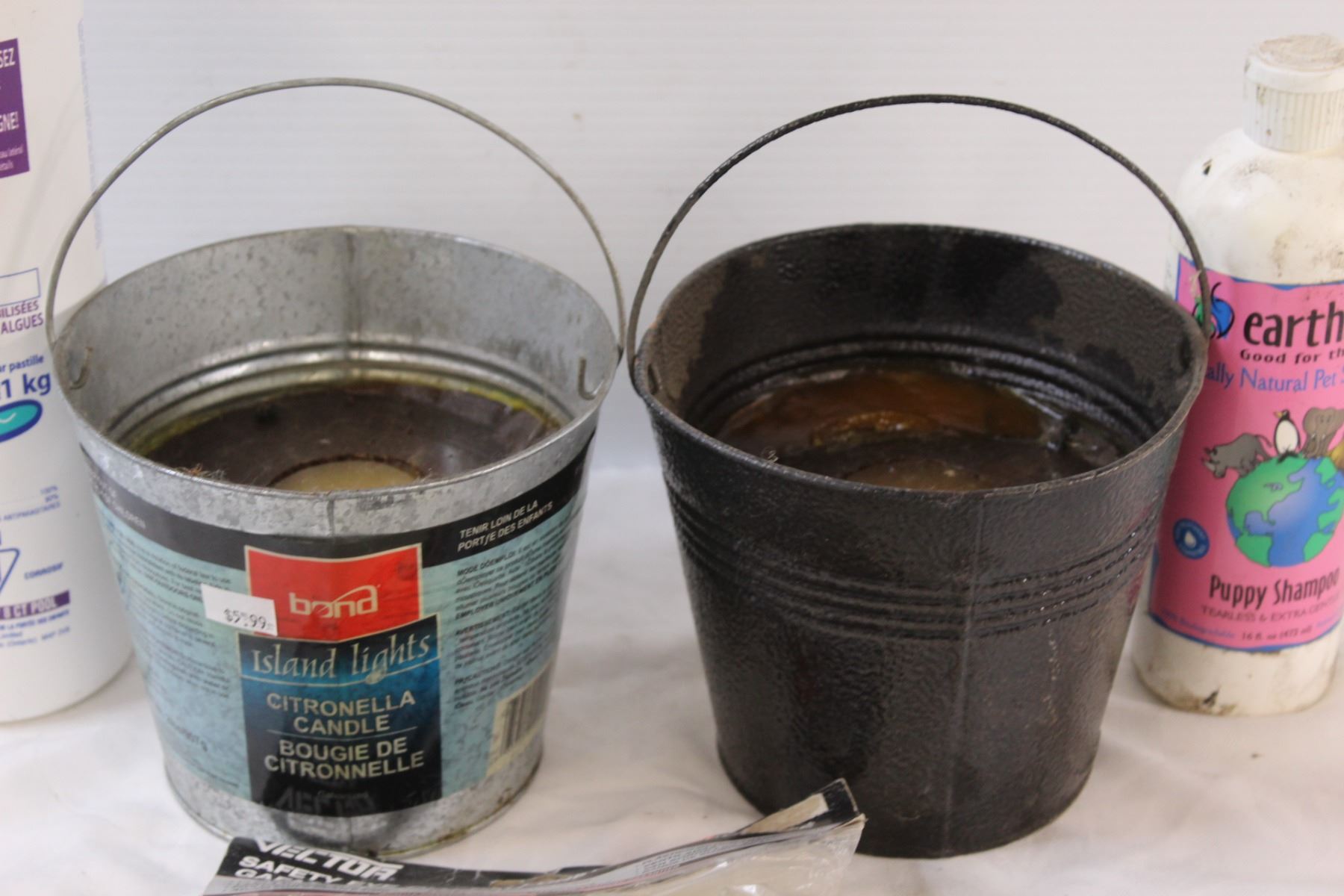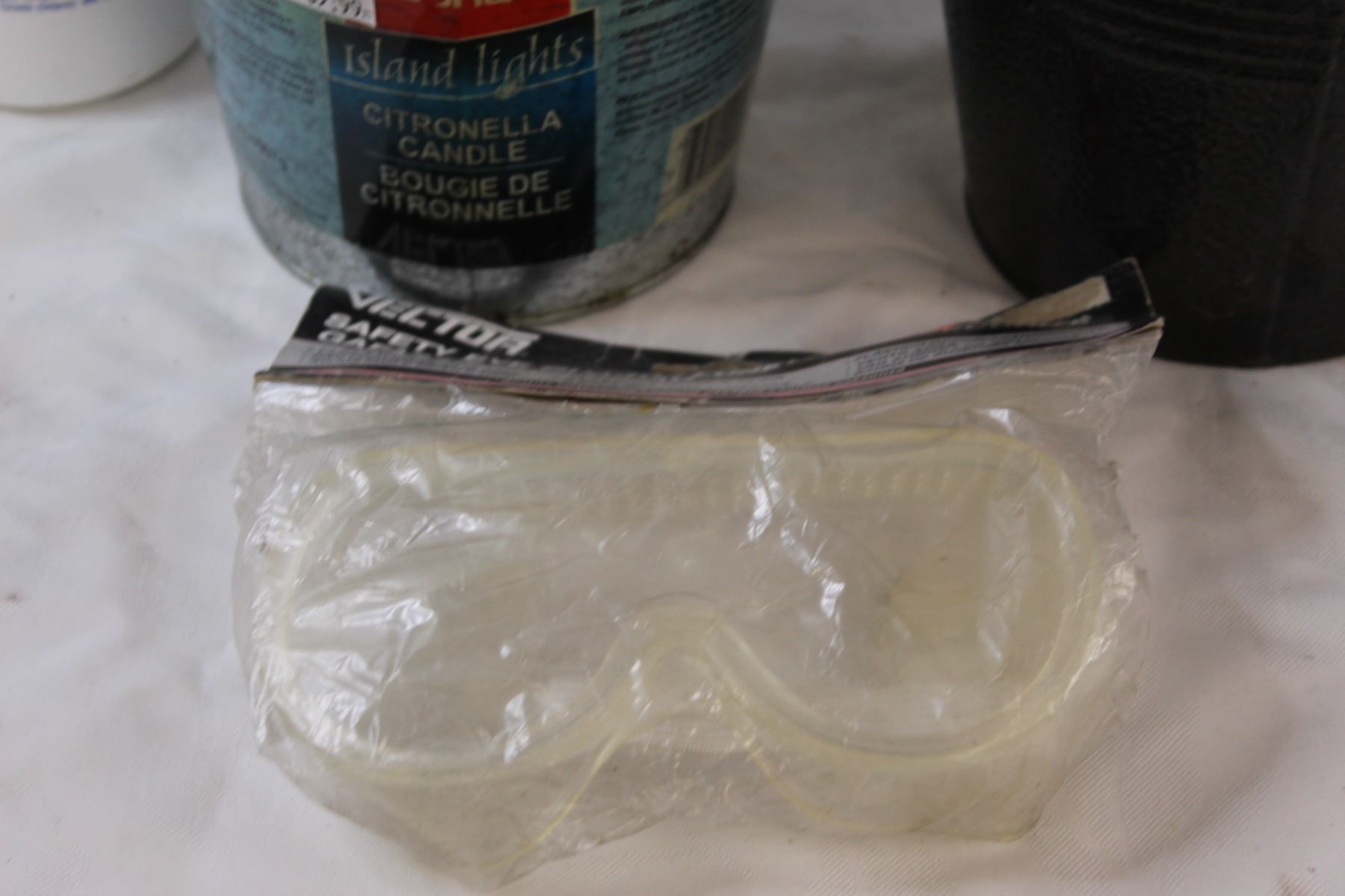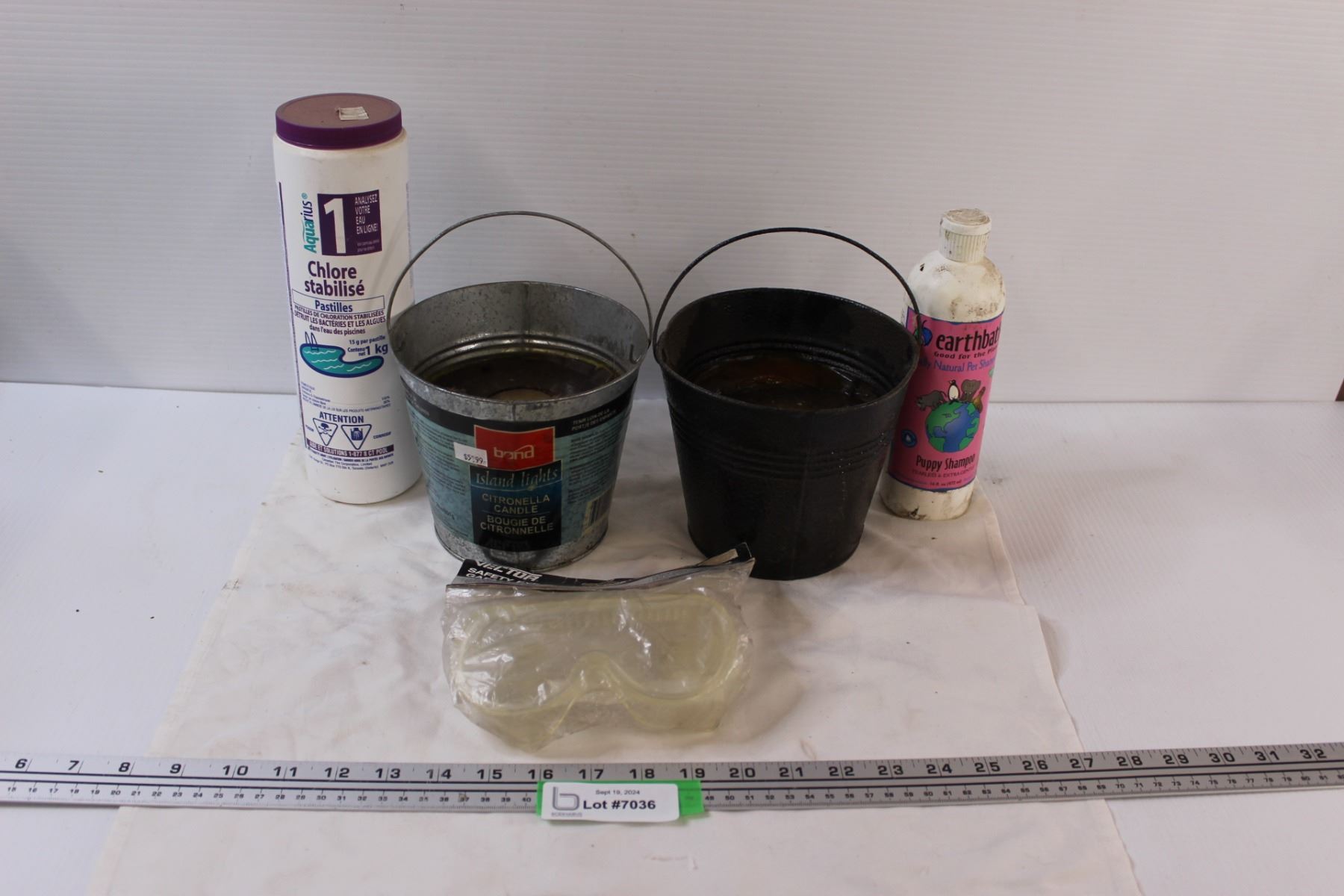 (2) Citronella Candles, Chlorine Tablets, Dog Shampoo, Safety Goggles