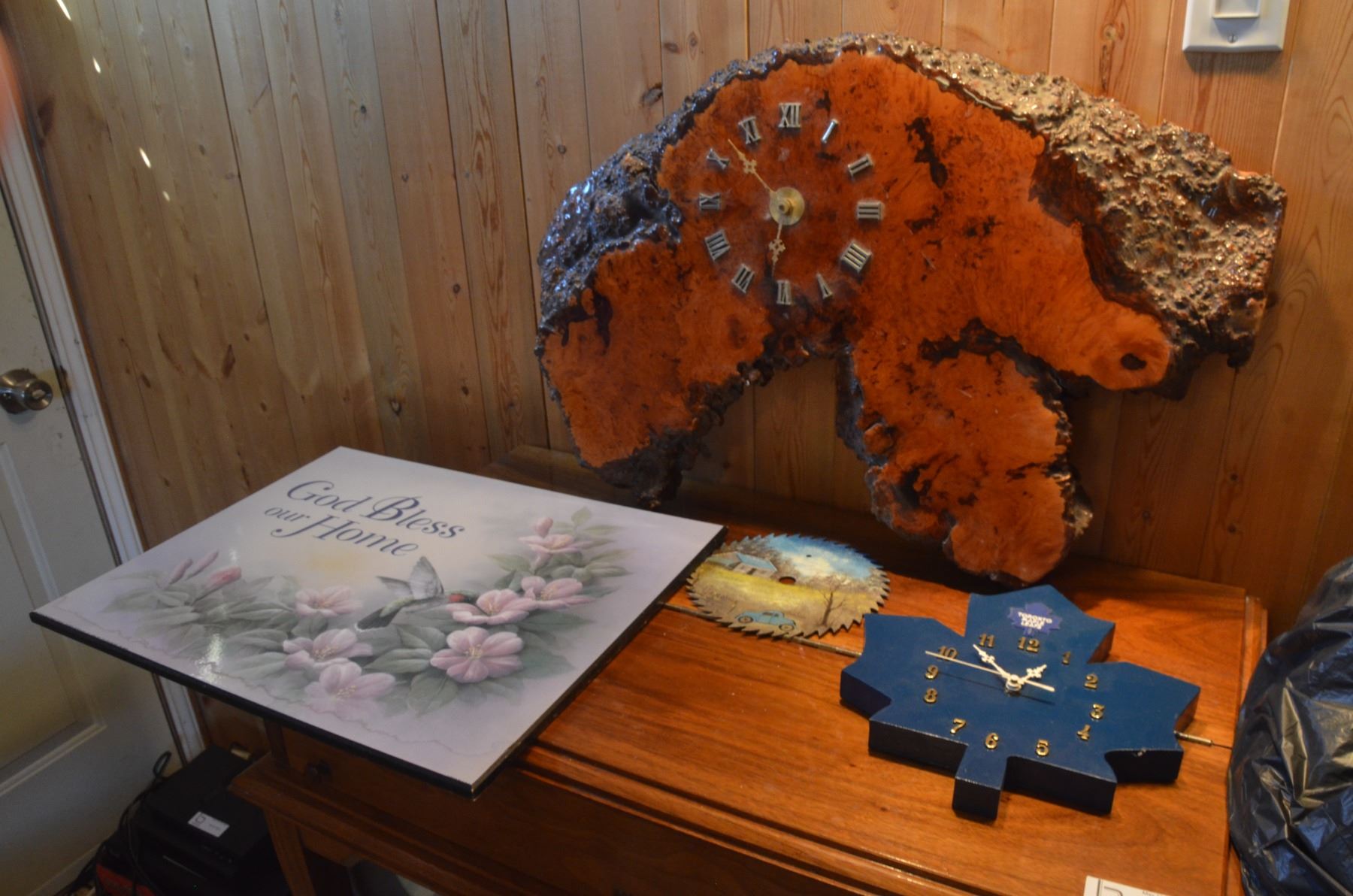 2 Clocks, picture and Saw Blade Wall Art