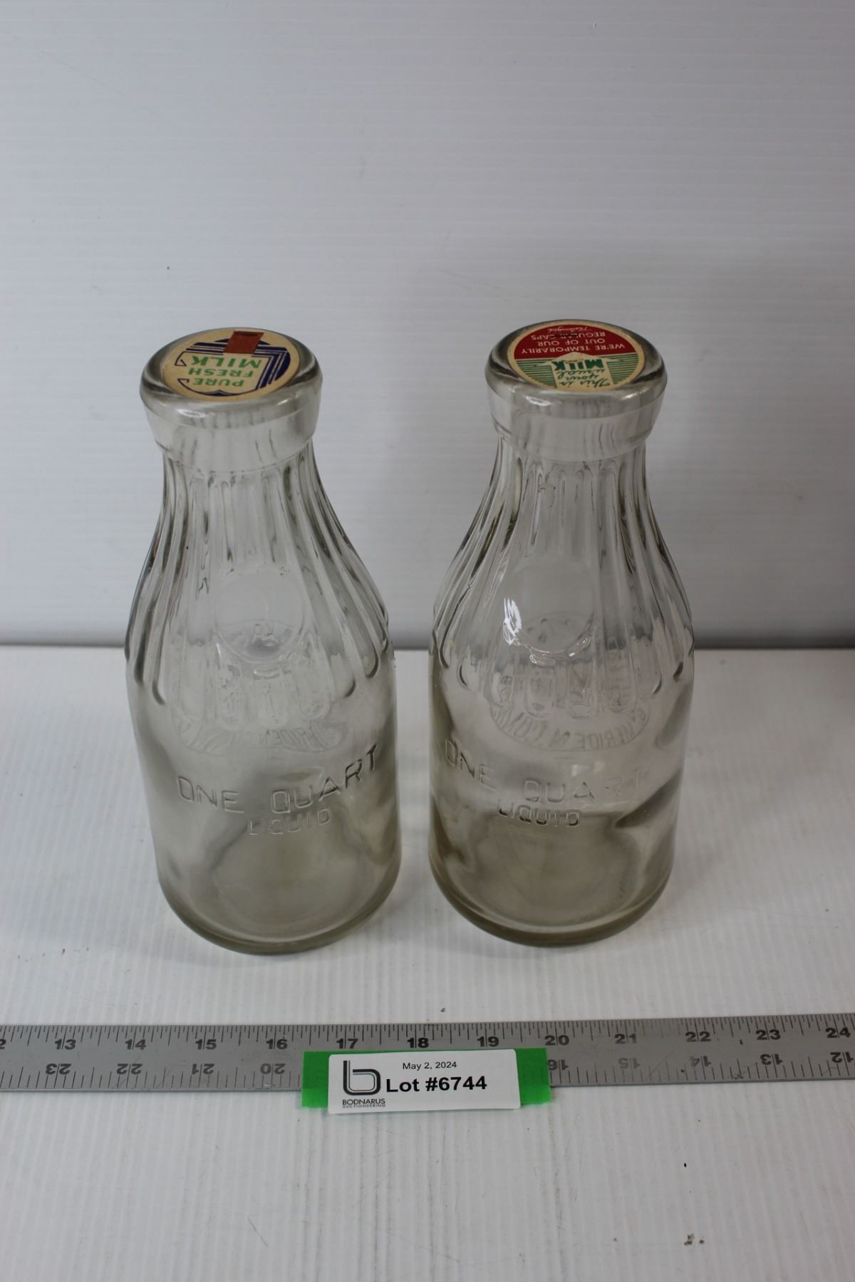 (2) Collector Milk Bottles With Caps - Edw. J. Kraemer & Son, Meriden, Conn.