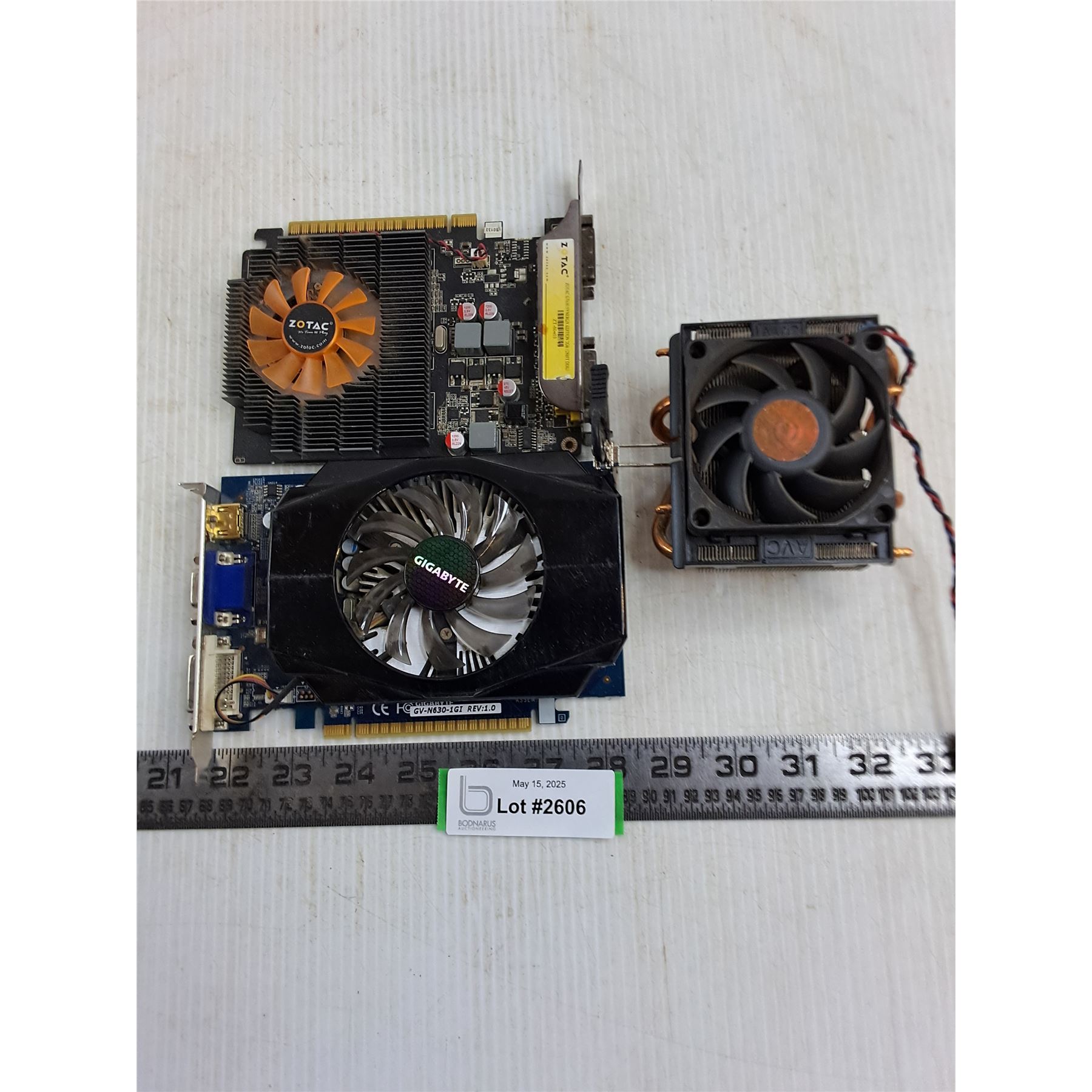 (2) Computer Video Cards & Copper CPU Cooling Fan - As is