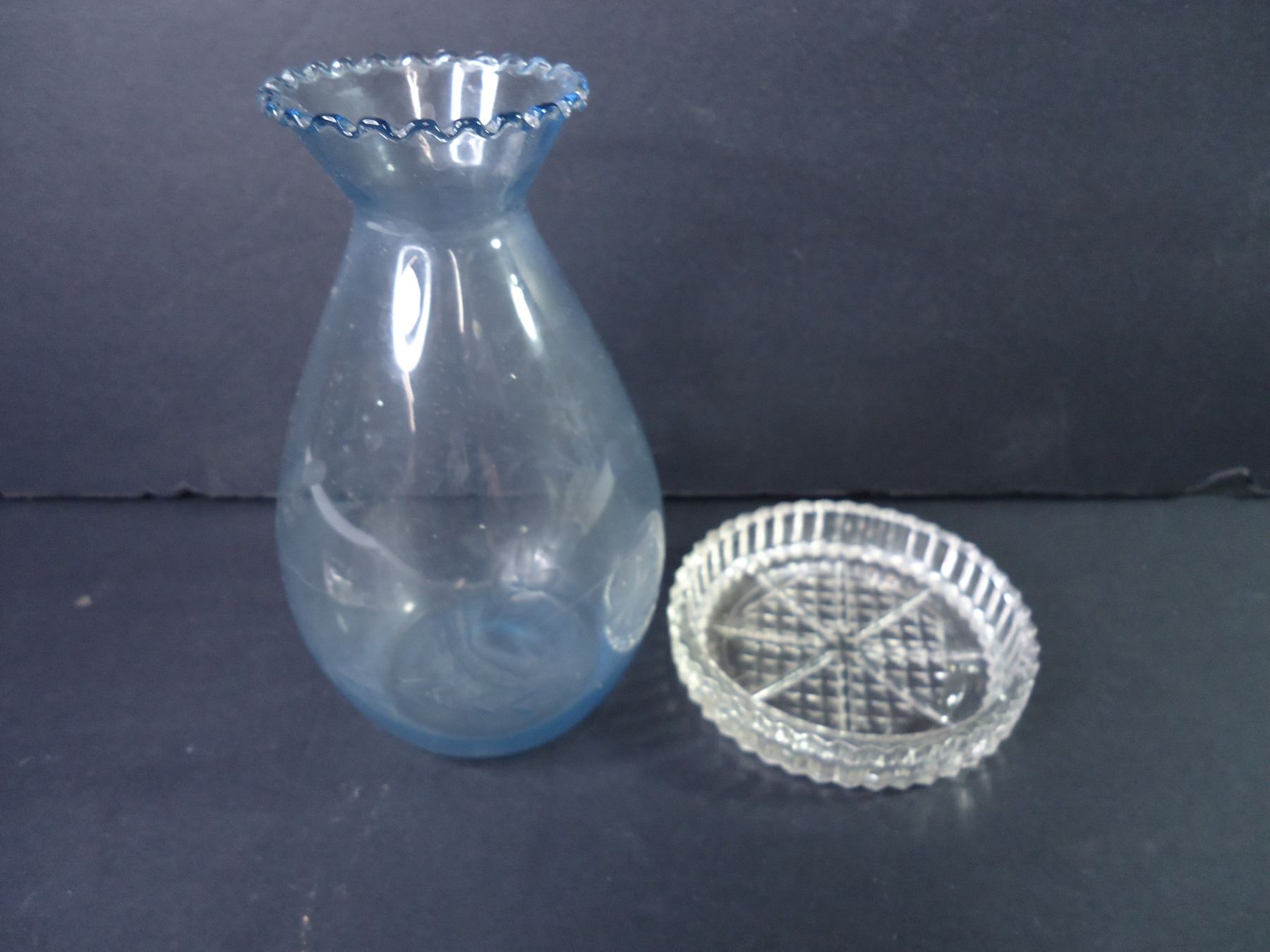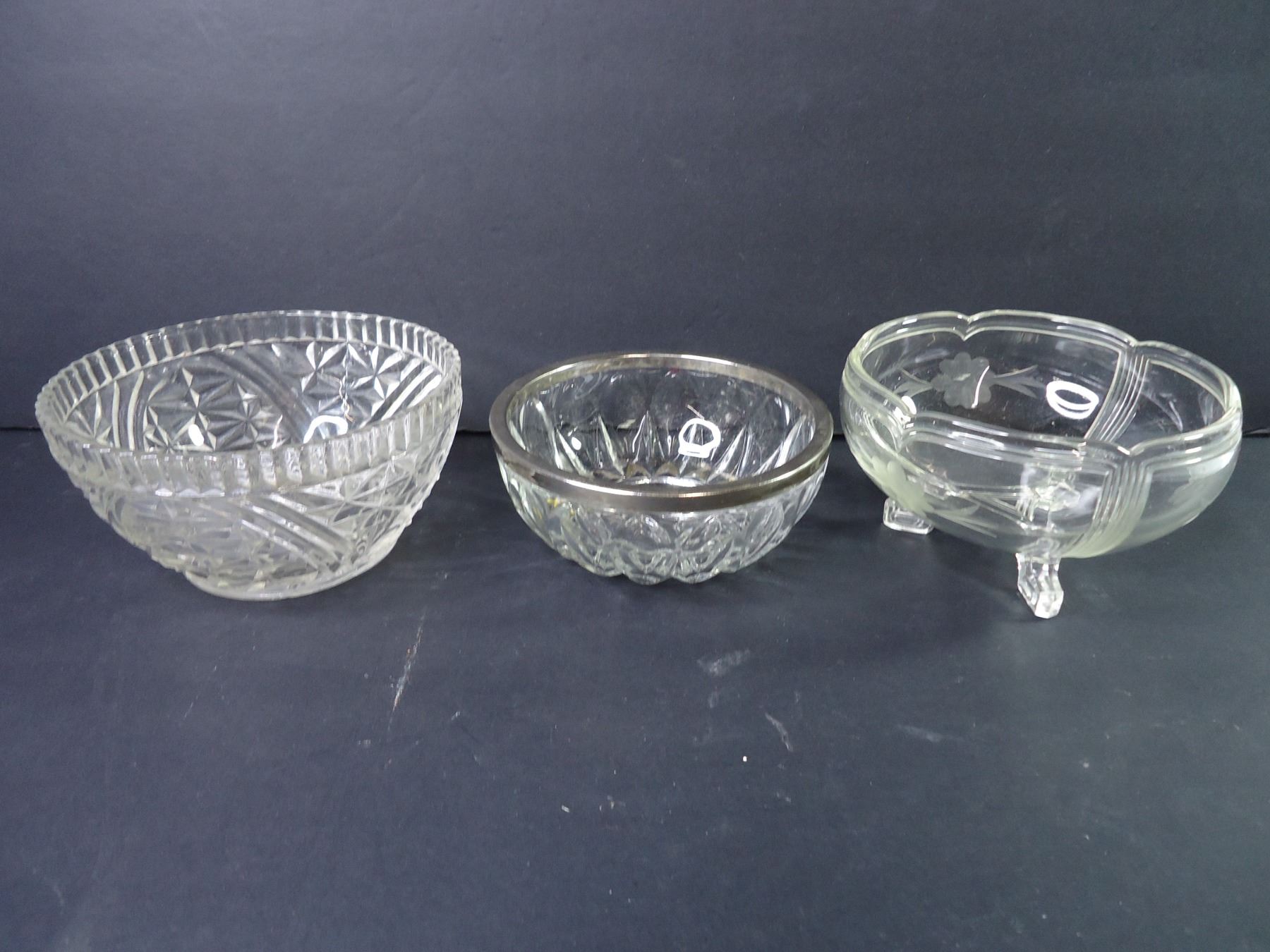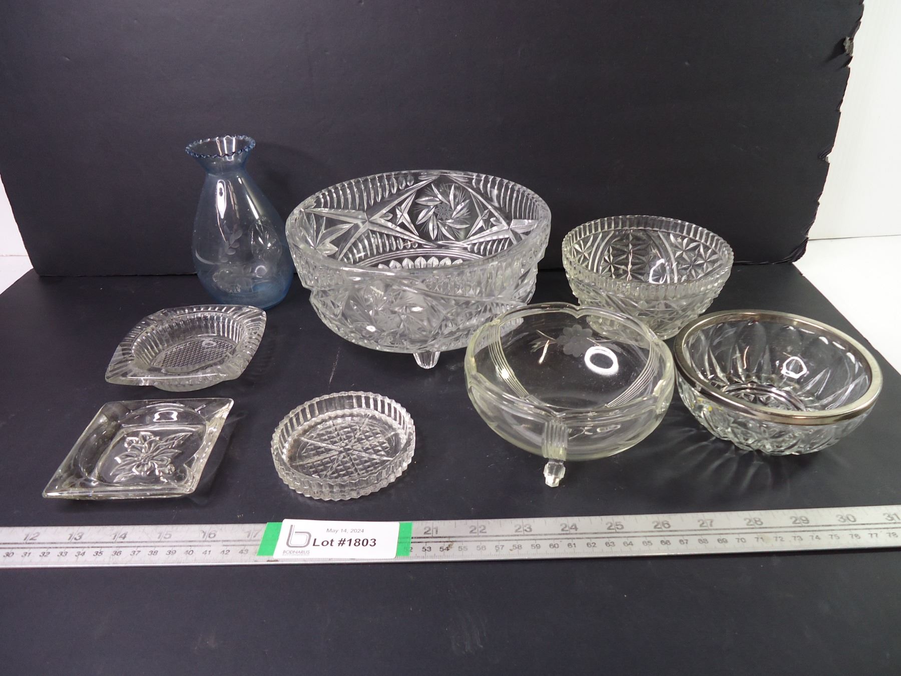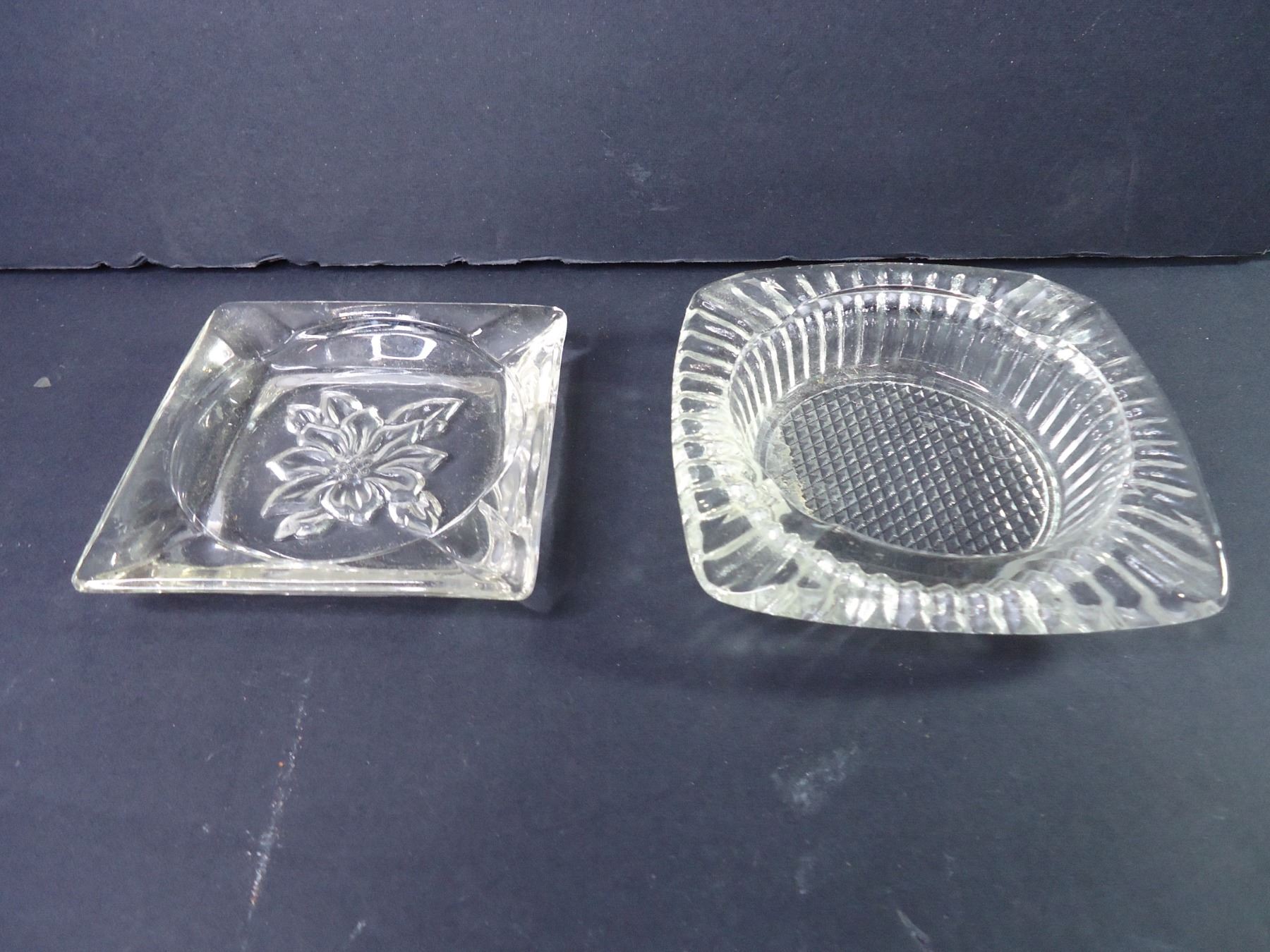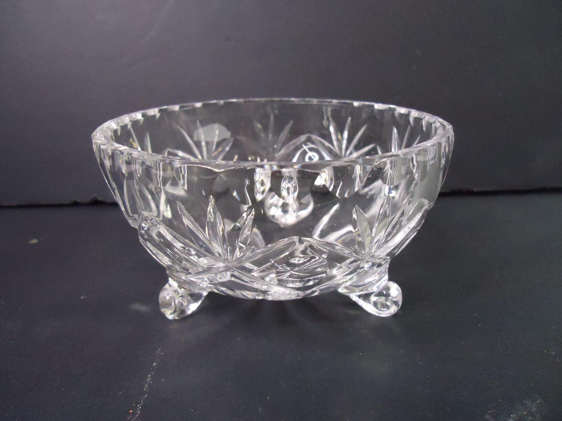(2)Crystal Footed Fruit Bowl,(3) Glass Candy Dishes,(2) Ashtrays, Vase and Trinket Dish