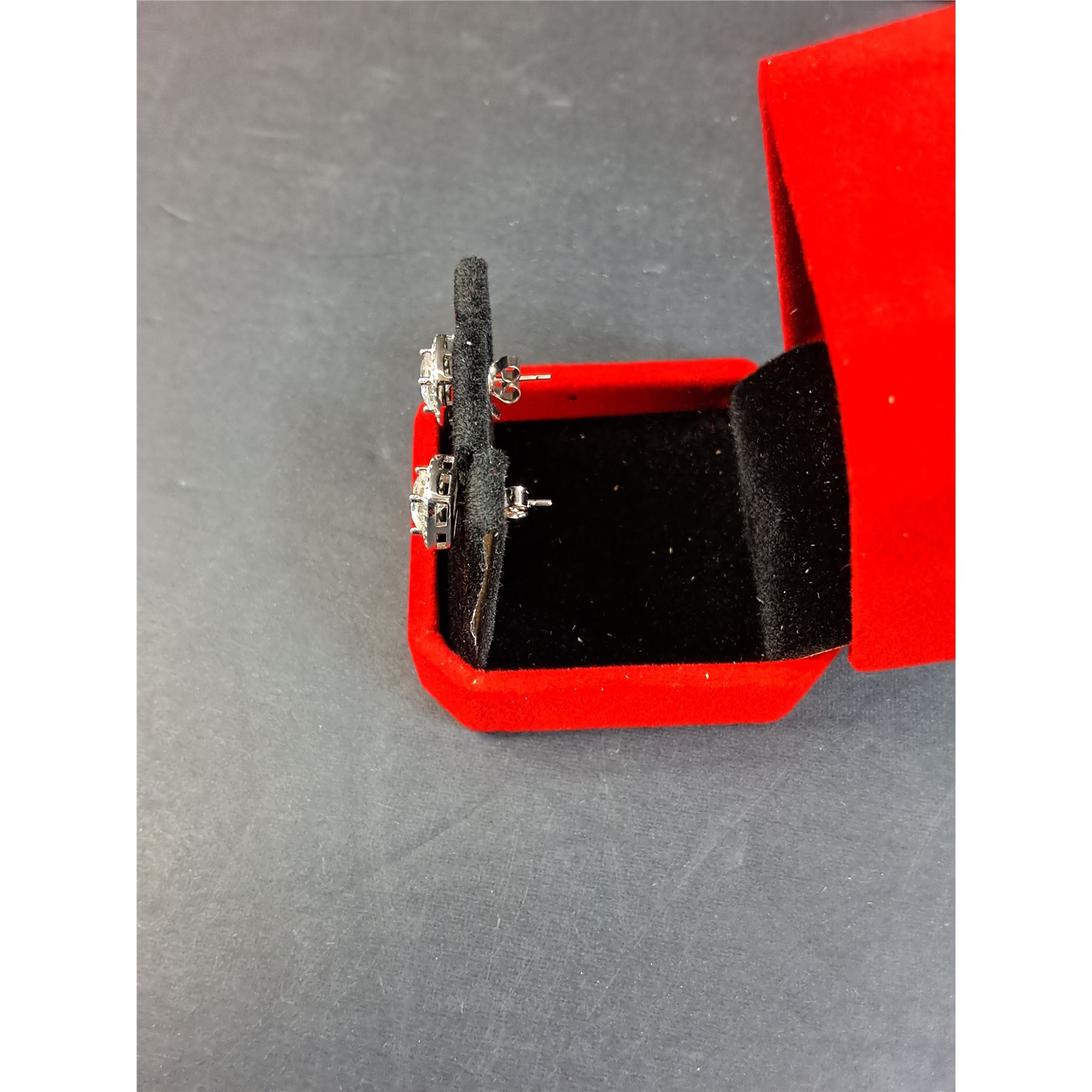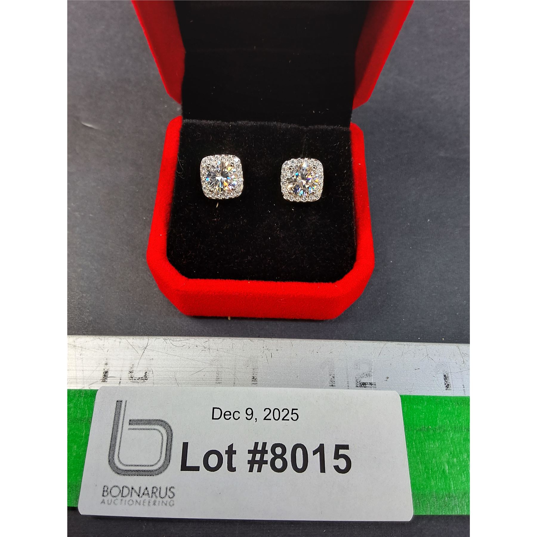 ^ 2 Ct GRA Certified Mossanite Stone w/40 Cubic Zirconia Set in Sterling Silver Stud Earrings