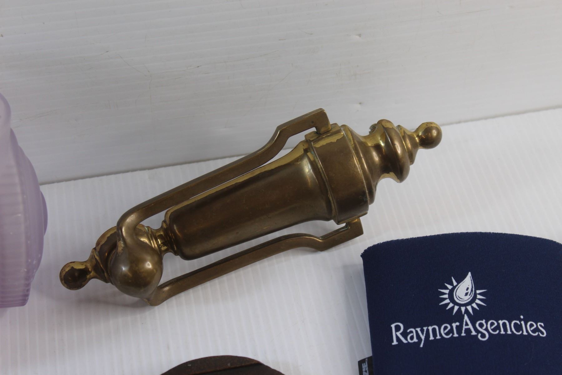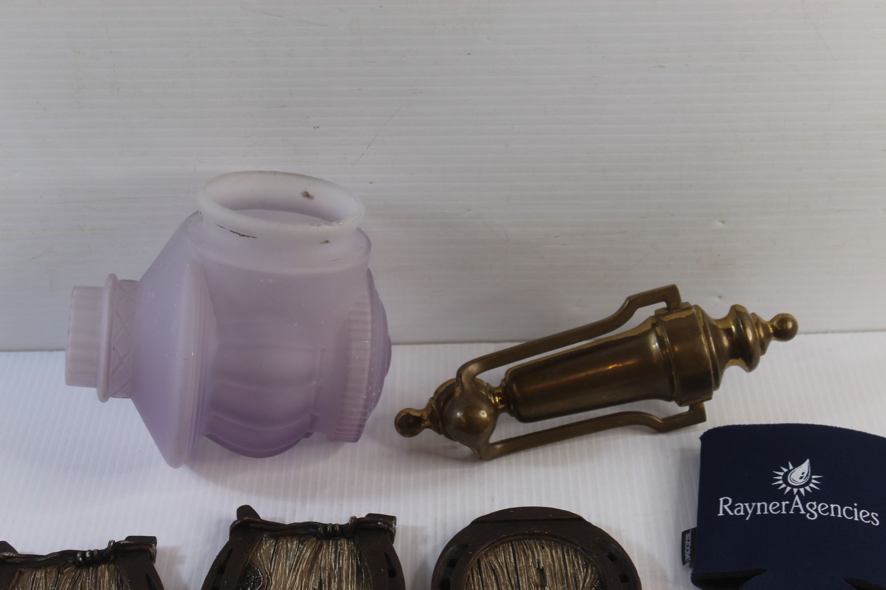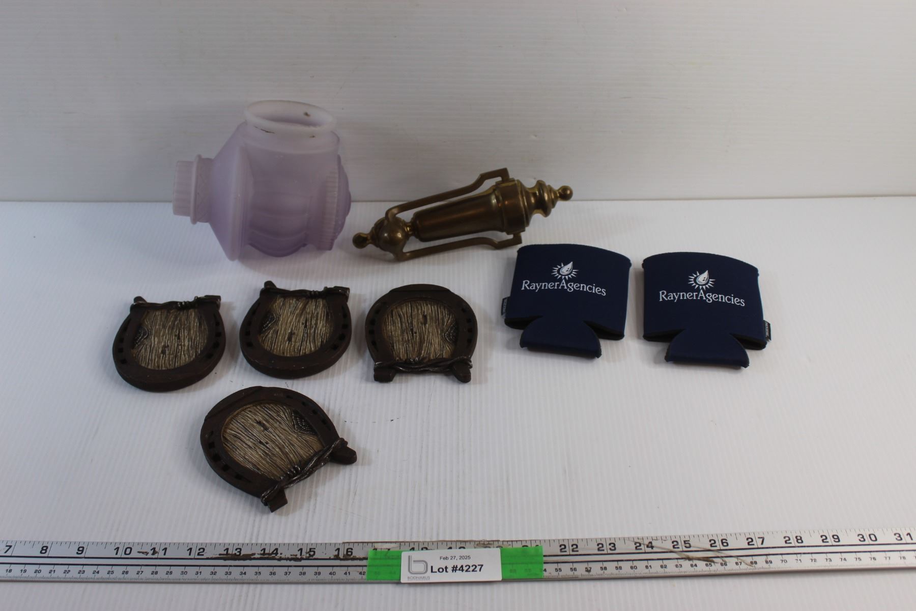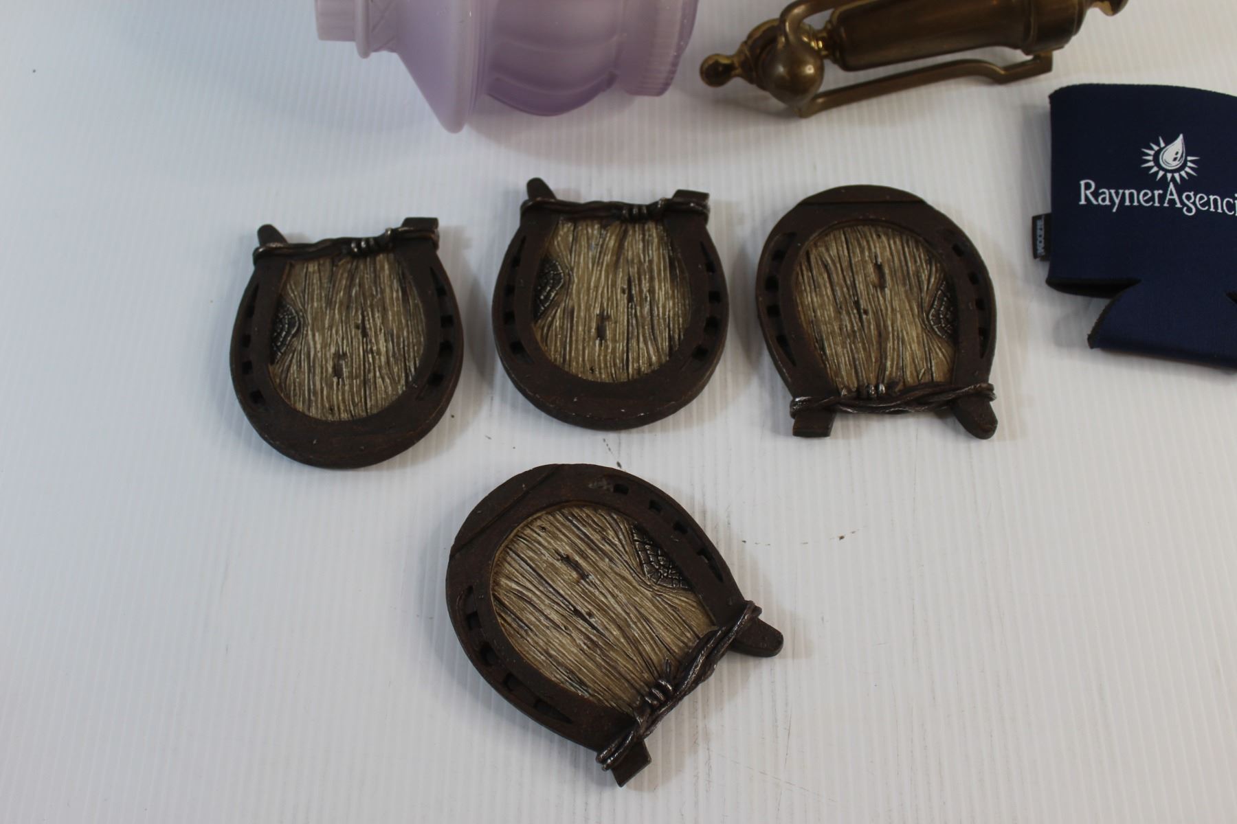 (2) Cup Holder Bands, (4) Horseshoe Coasters, Brass Door Knock and Outdoor Porch Light