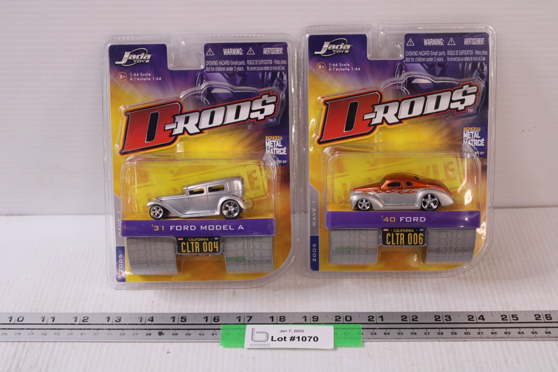 (2) D-Rods Jada Toys Brand Models: 1931 Ford Model "A" & 1940 Ford Coupe - 1:64 Scale Die Cast - NIB