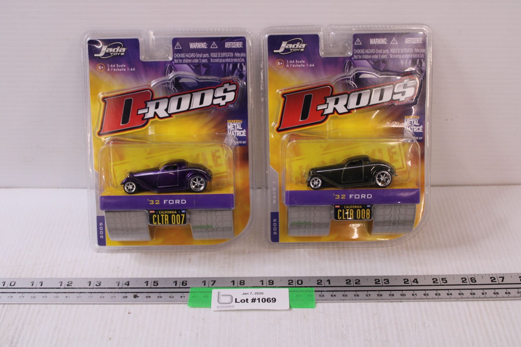 (2) D-Rods Jada Toys Brand Models: 1932 Ford Coupe - 1:64 Scale Die Cast - NIB