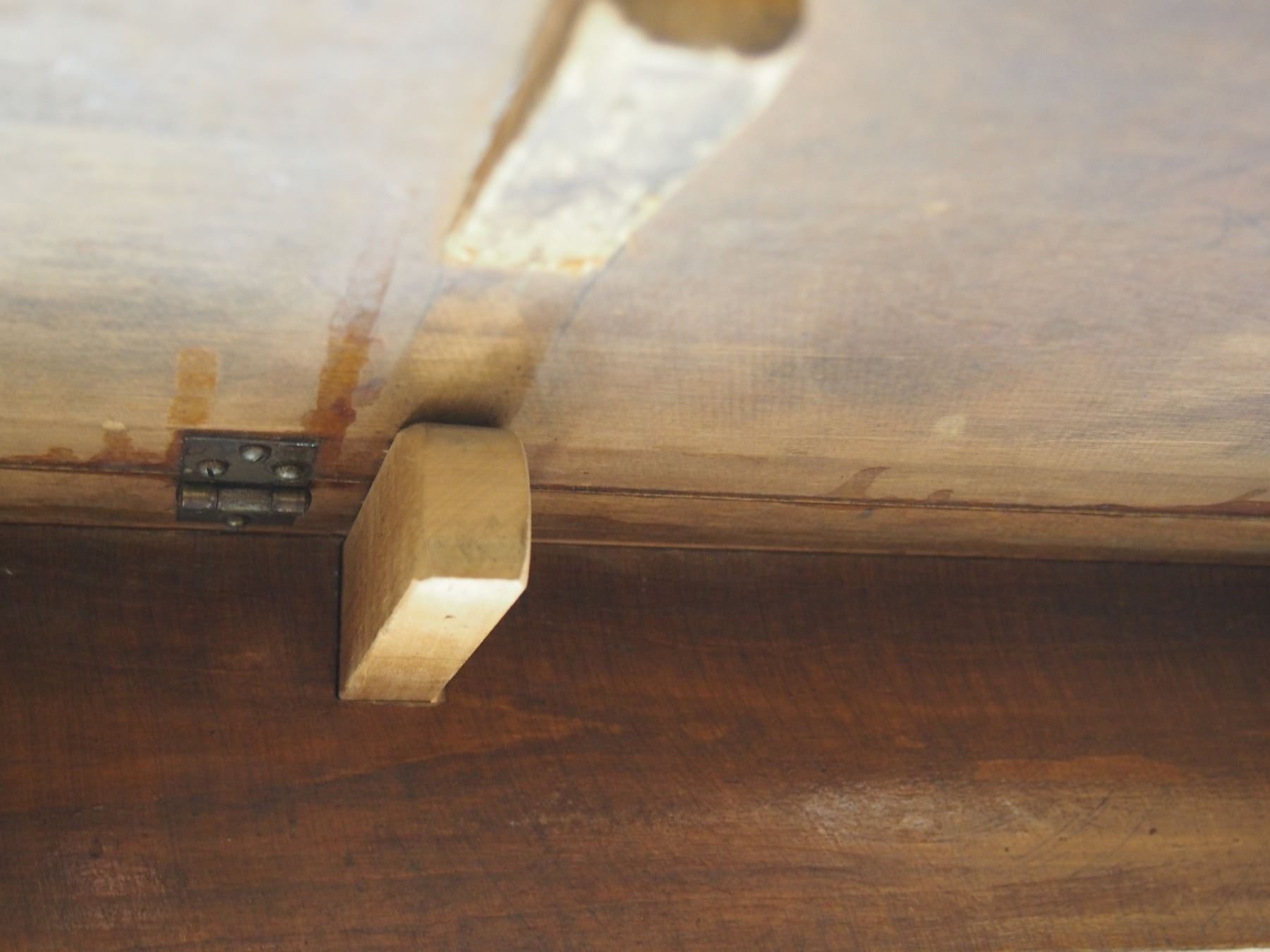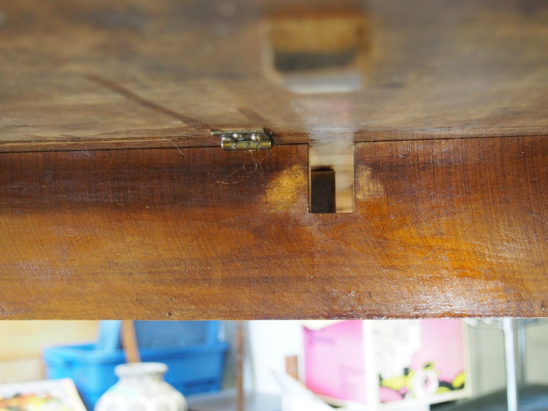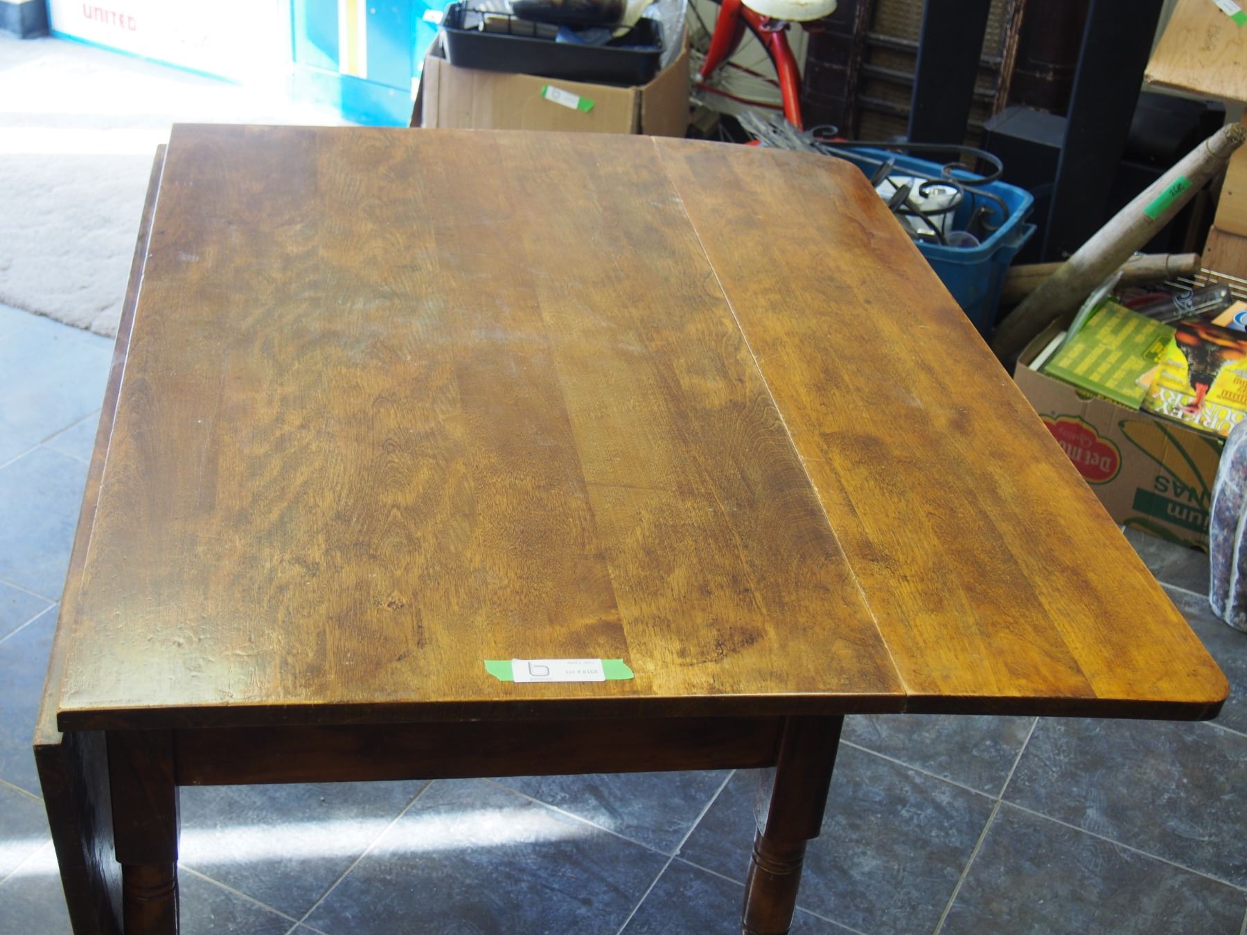 2 DROPLEAF TABLE (46 IN LONG 24 IN WIDE CLOSED) (2 LEAVES 11 IN EACH) (1 PIECE IS MISSING THAT HOLDS THE ONE LEAF UP