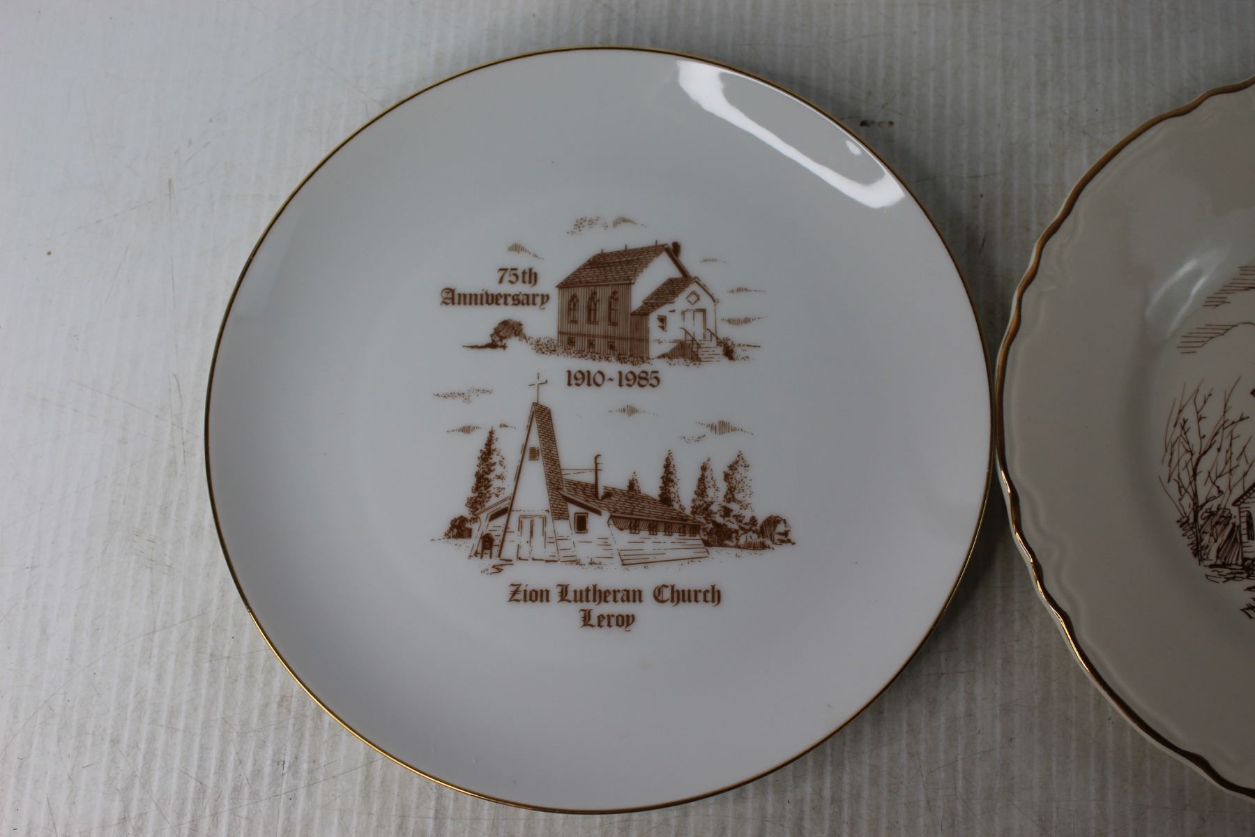 (2) Decorative 75th Anniversary Church Plates - Zion Lutheran Church