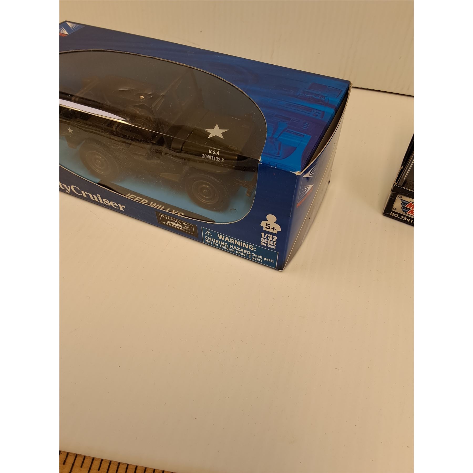 (2) Die Cast Vehicle Models: Willys Jeep - 1/32 & 1983 Dodge Diplomat - 1:43