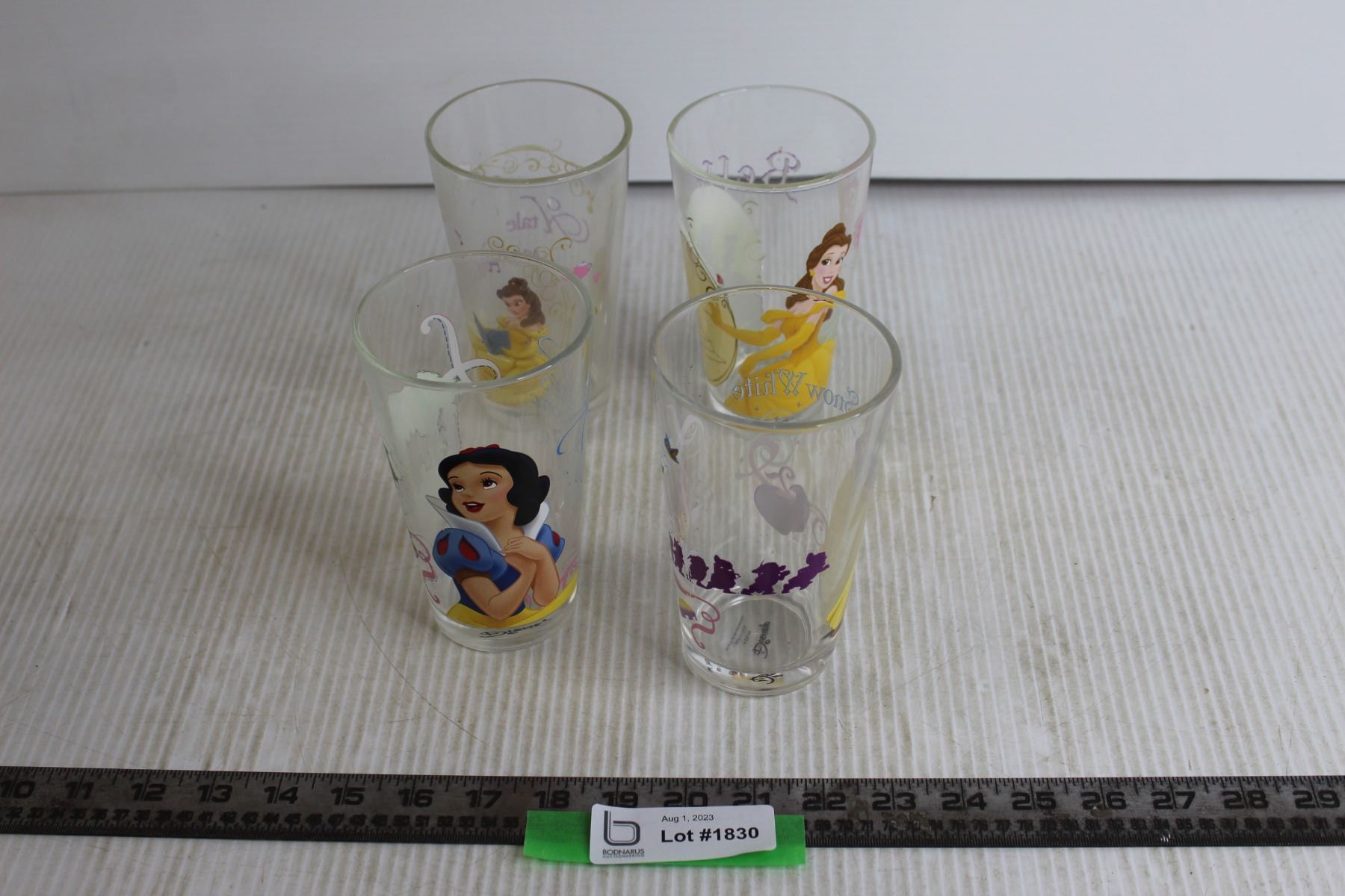 (2) Disney Princesses Snow White Drinking Glasses, (2) Beauty and the Beast Drinking Glasses