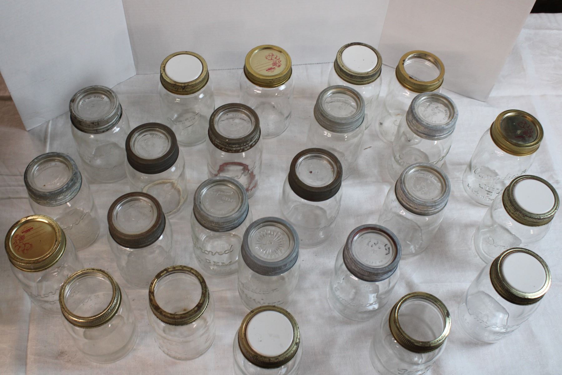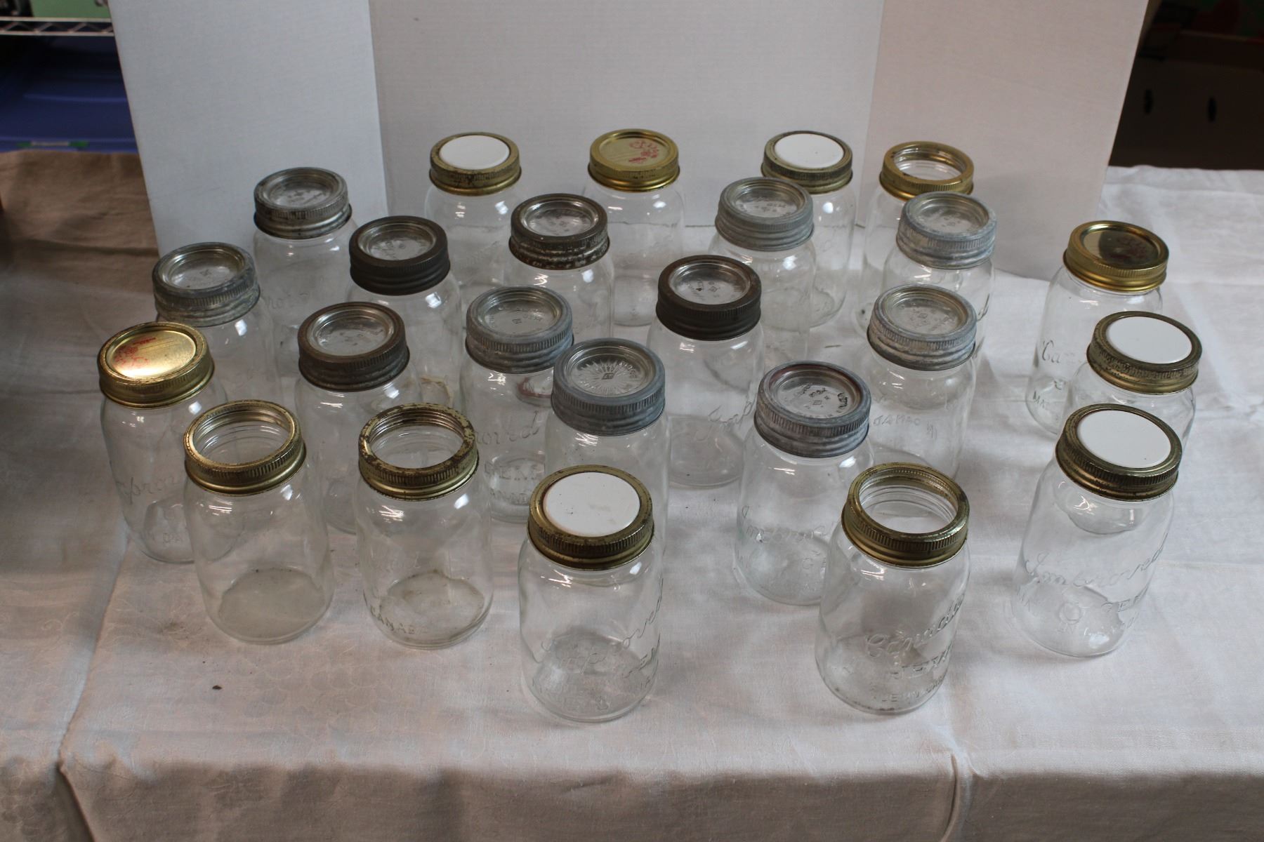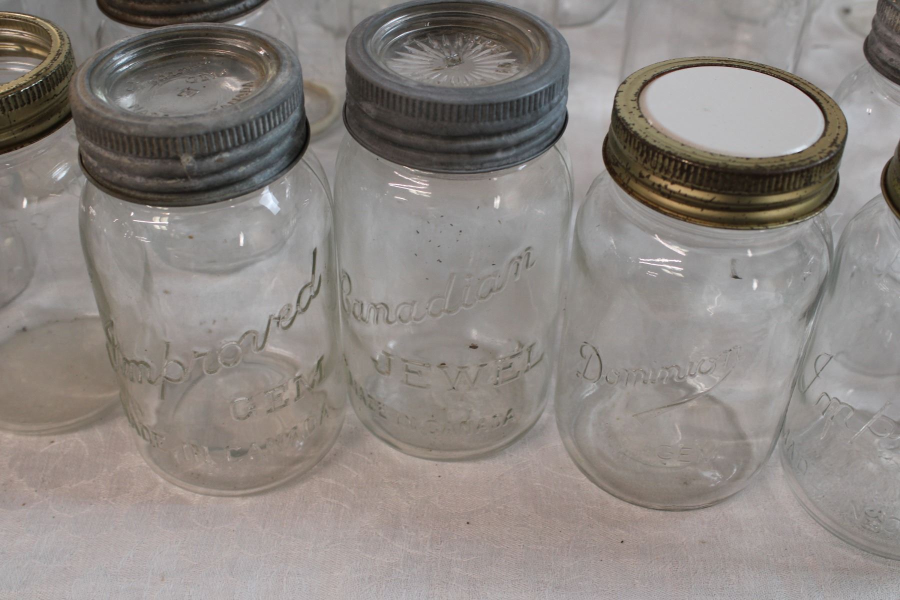2 Dozen Quart Jars (Improved Gem, Dominion, Canadian Jewel)includes 6 glass tops