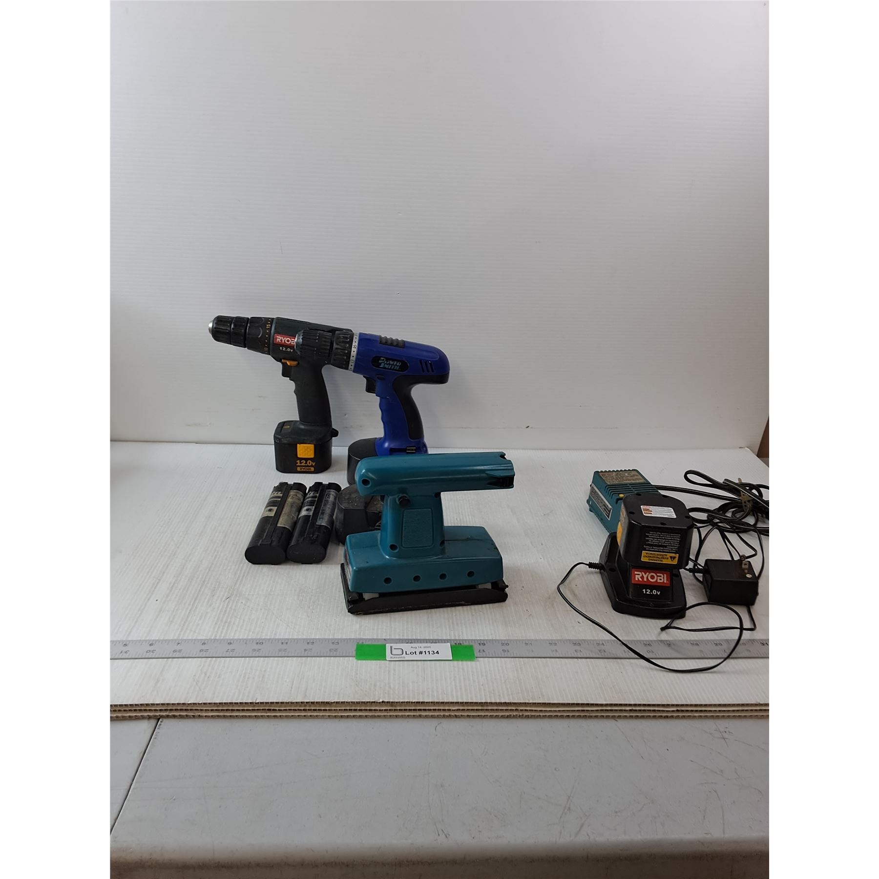 (2) Drills- Has Batteries & Makita Finishing Sander- As Is