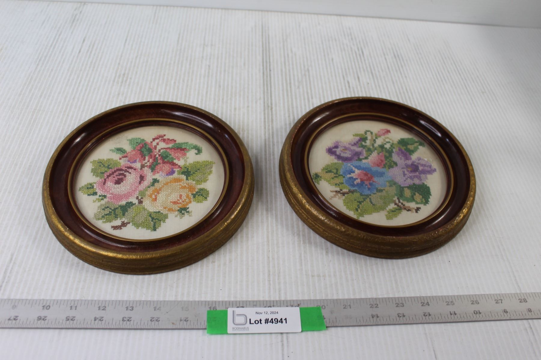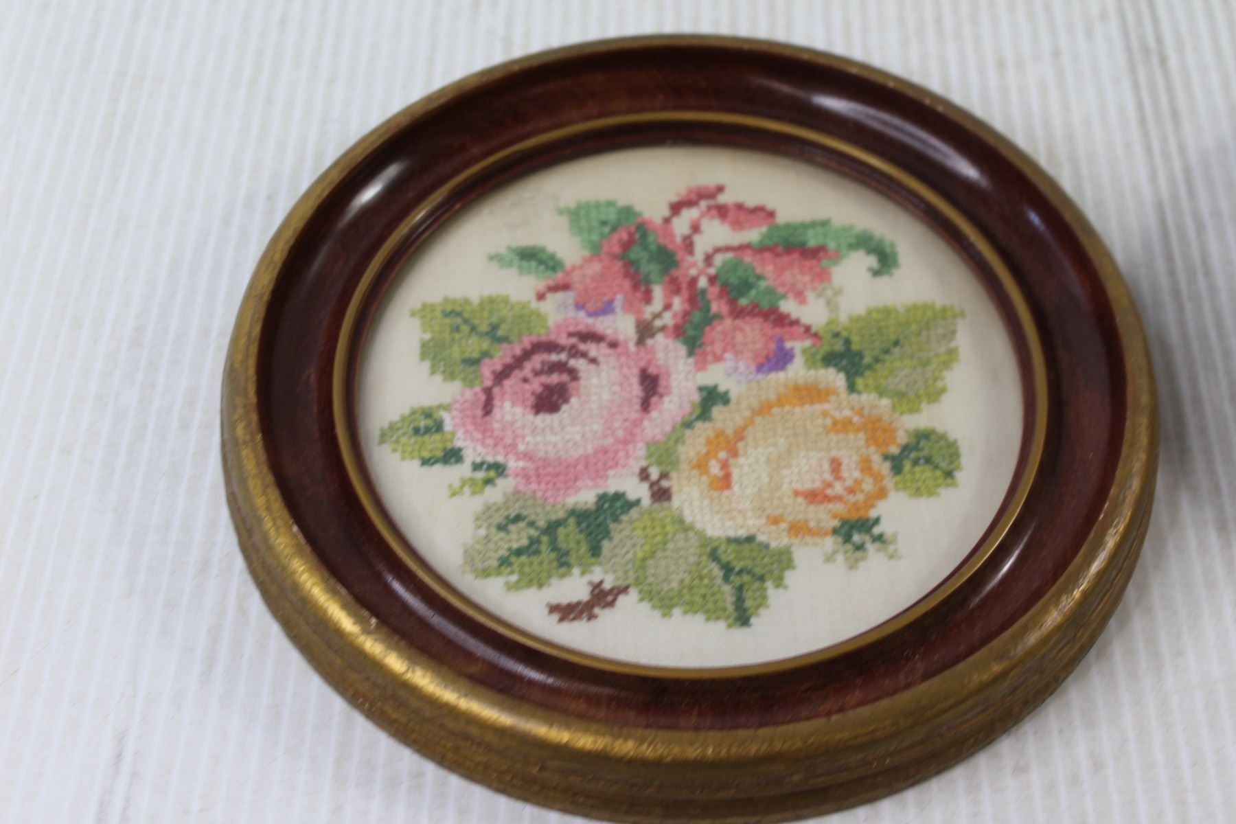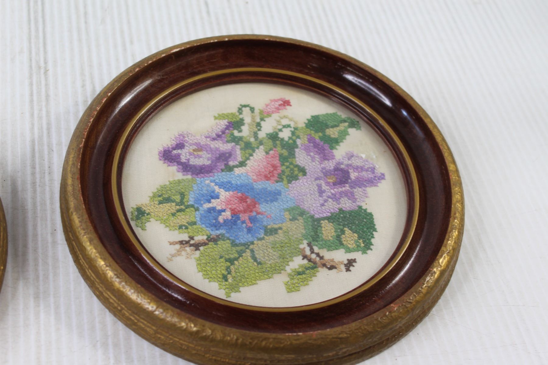 (2) Embroidered Floral Art Framed - 9"