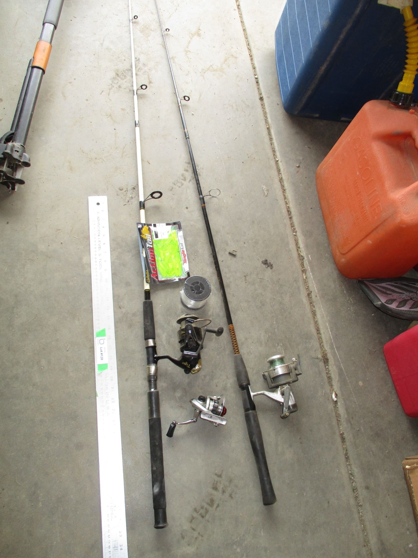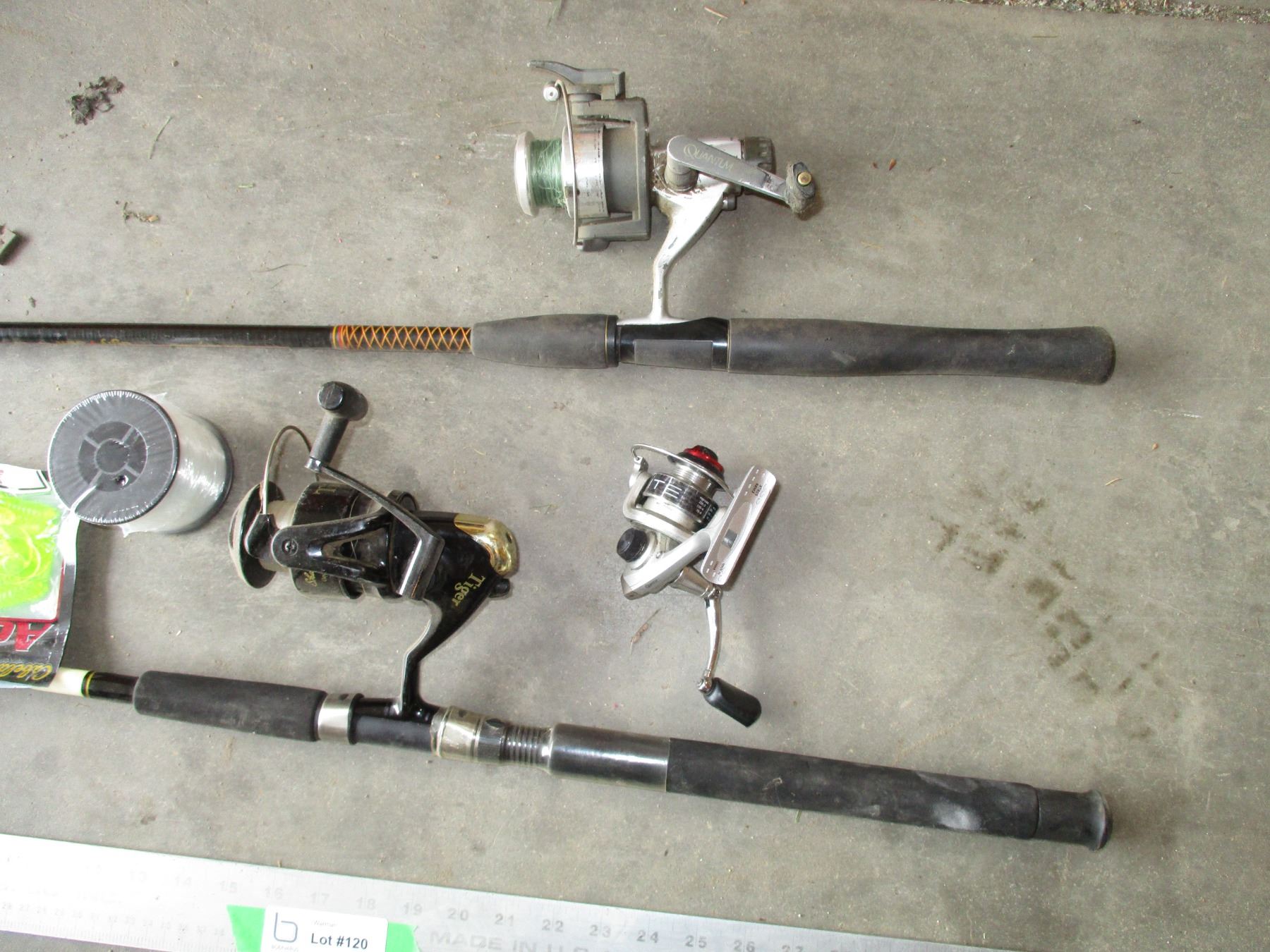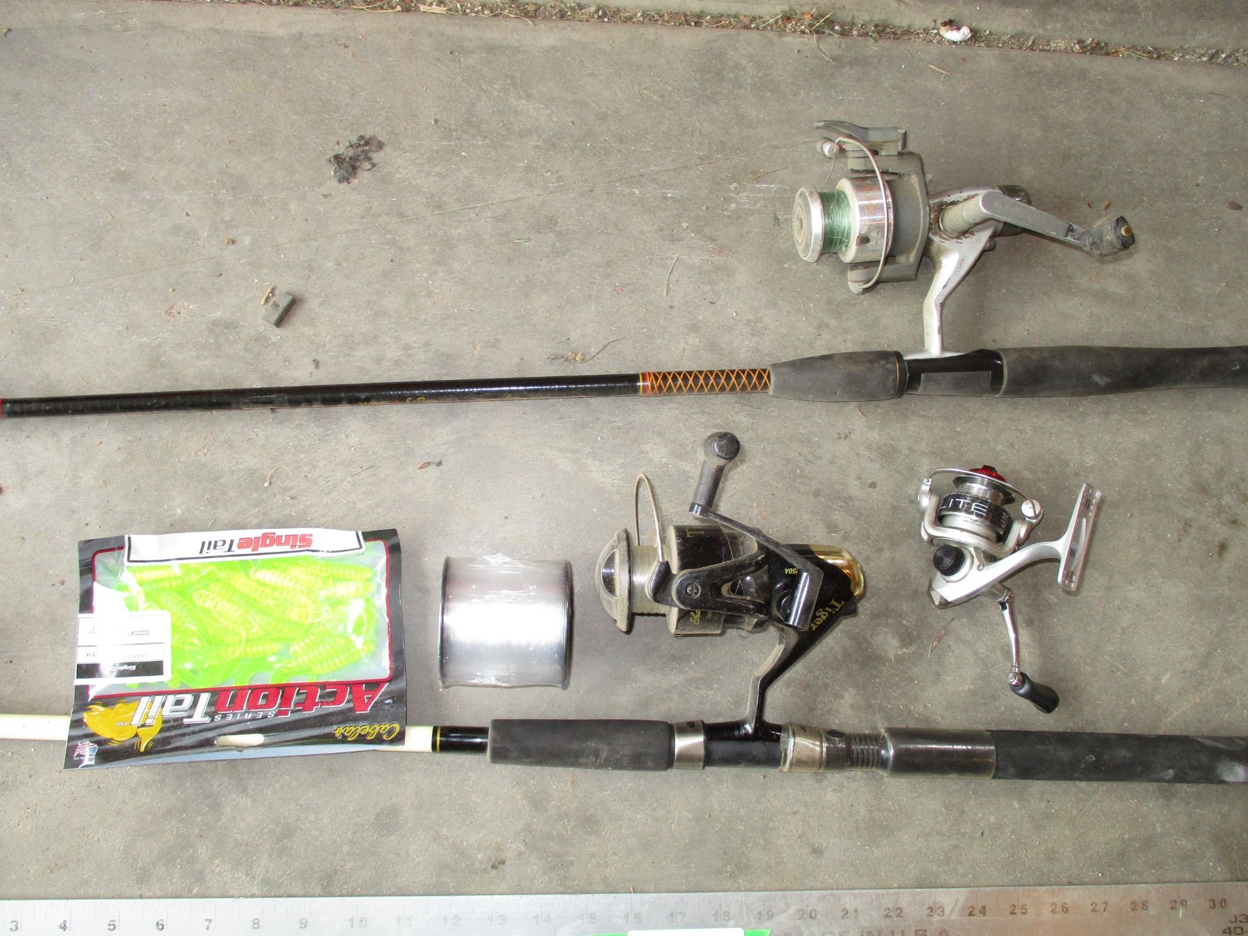 (2) Fishing Rods (Slightly Damaged), Tails, Fishing Reel, Fishing Line