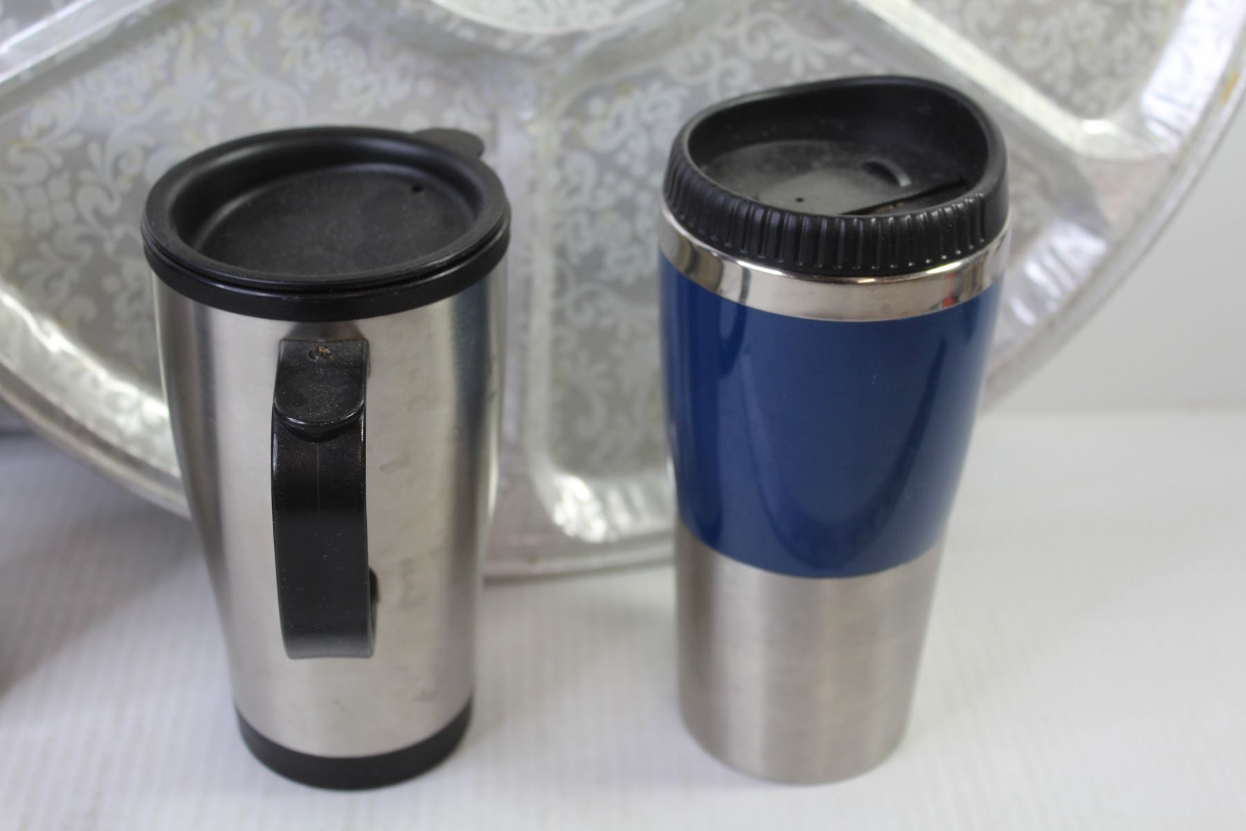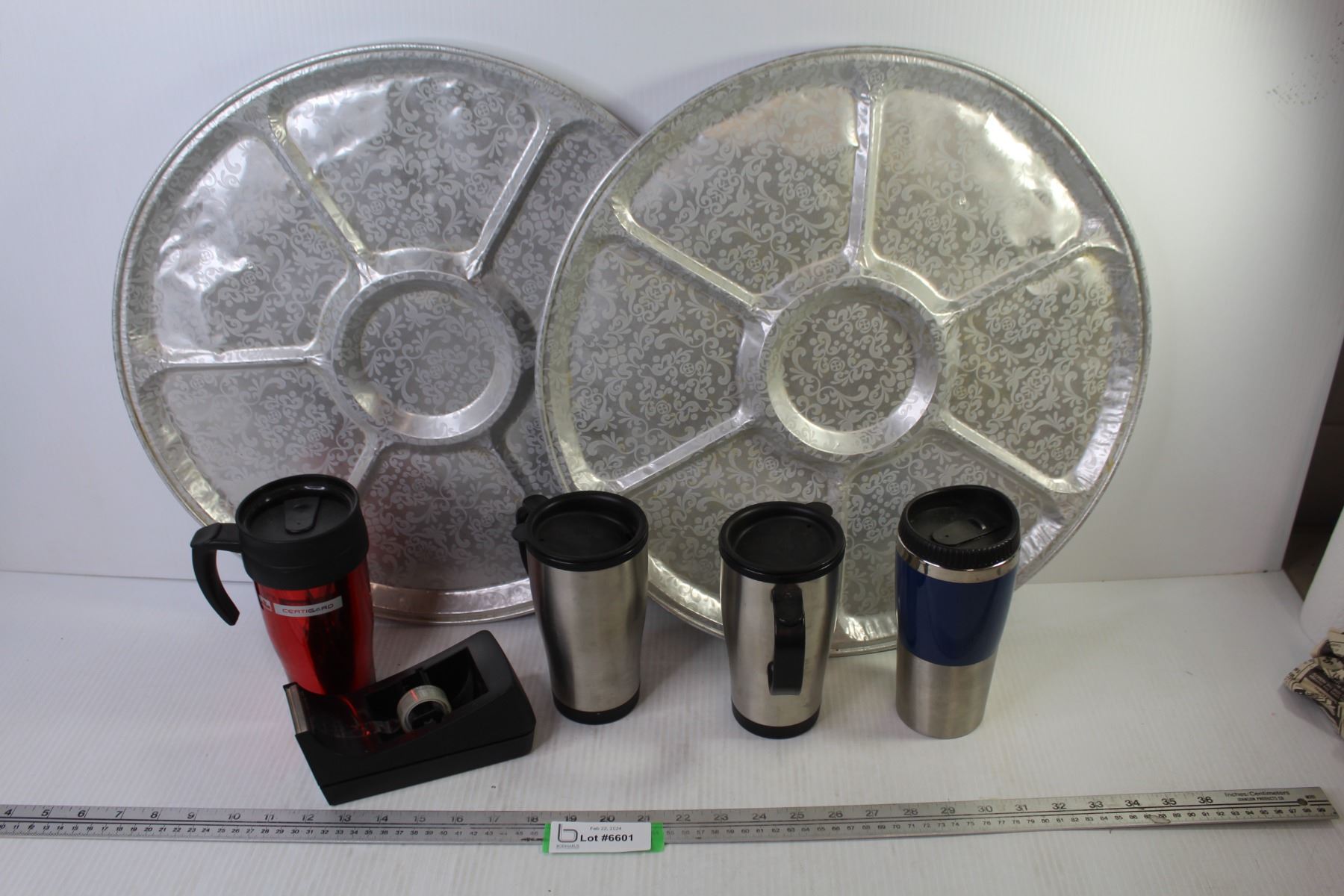 (2) Foil Trays - (4) Travel Mugs - Tape Dispenser