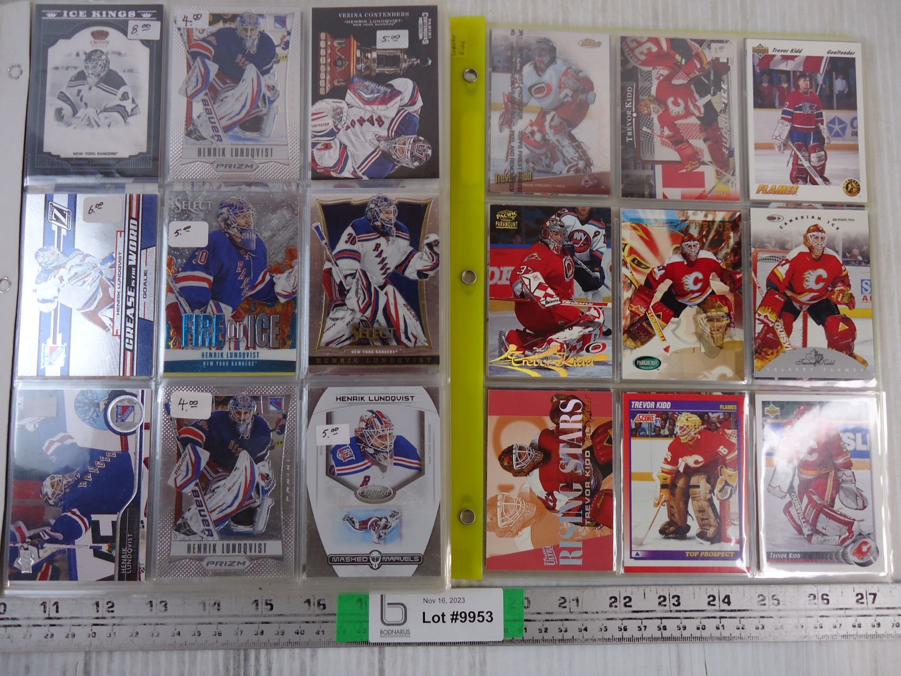 (2) Folders of Cards Featuring Goalies Henrik Lundqvist and Trevor Kidd