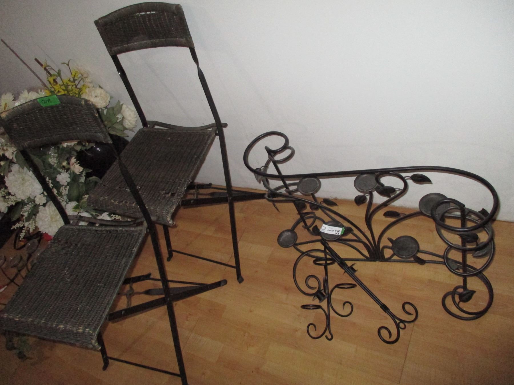 (2) Folding Metal Chairs, Decorative Candle Stand (27" Long)