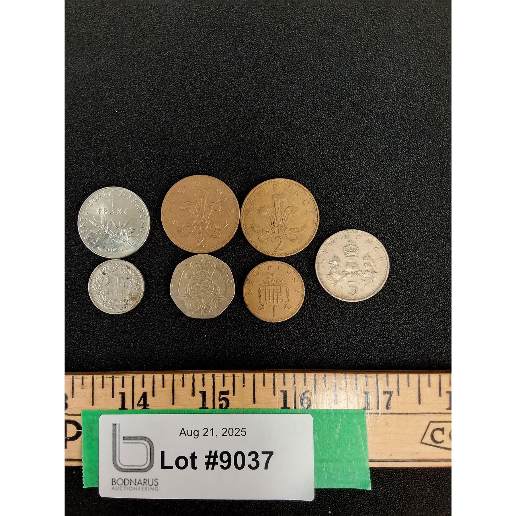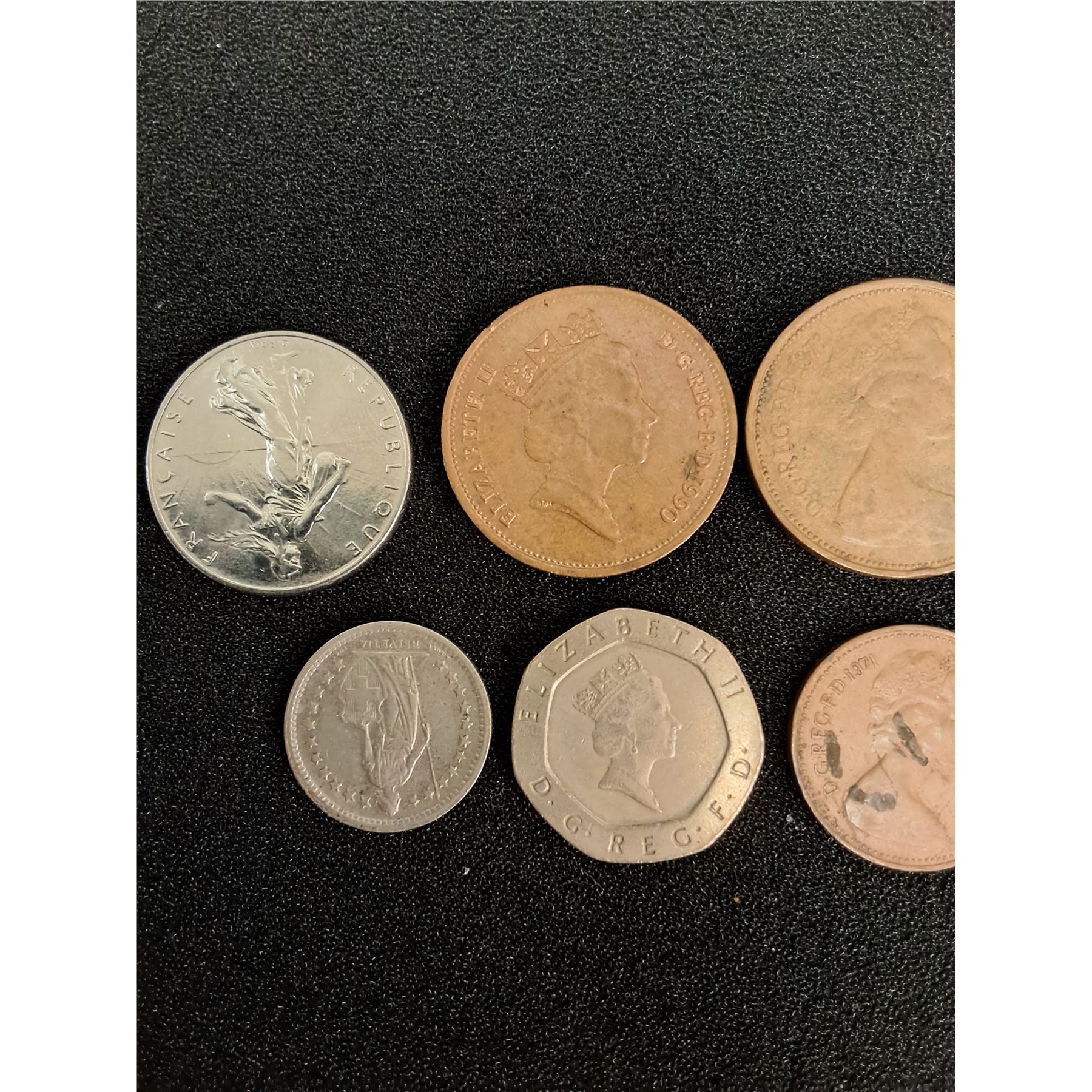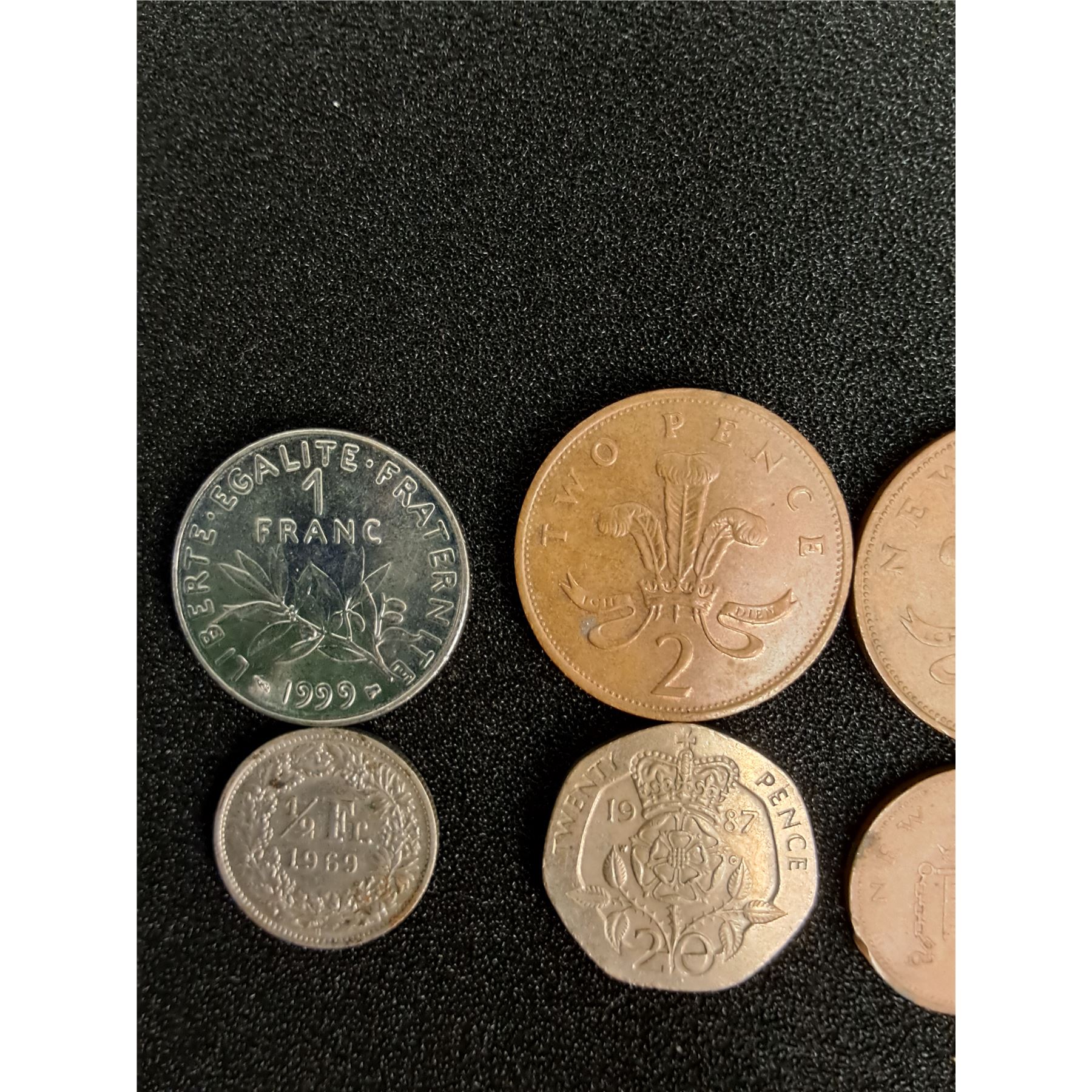 (2) Franc & Half Franc Coins & (5) Pence Coins - Assorted