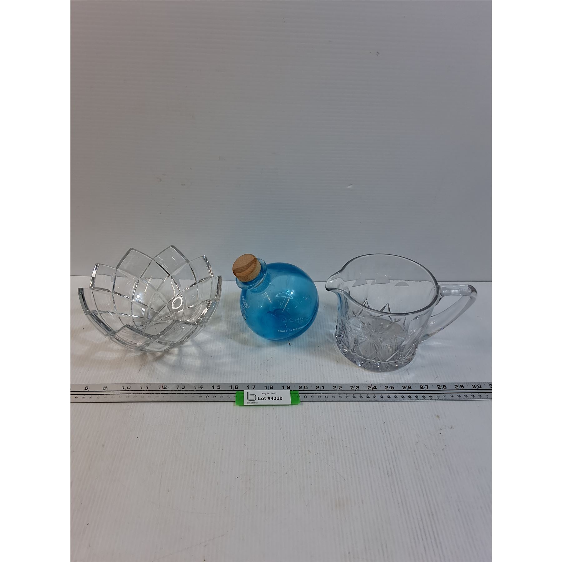 (2) Glass Bowl & Pitcher & Blue Glass Decanter
