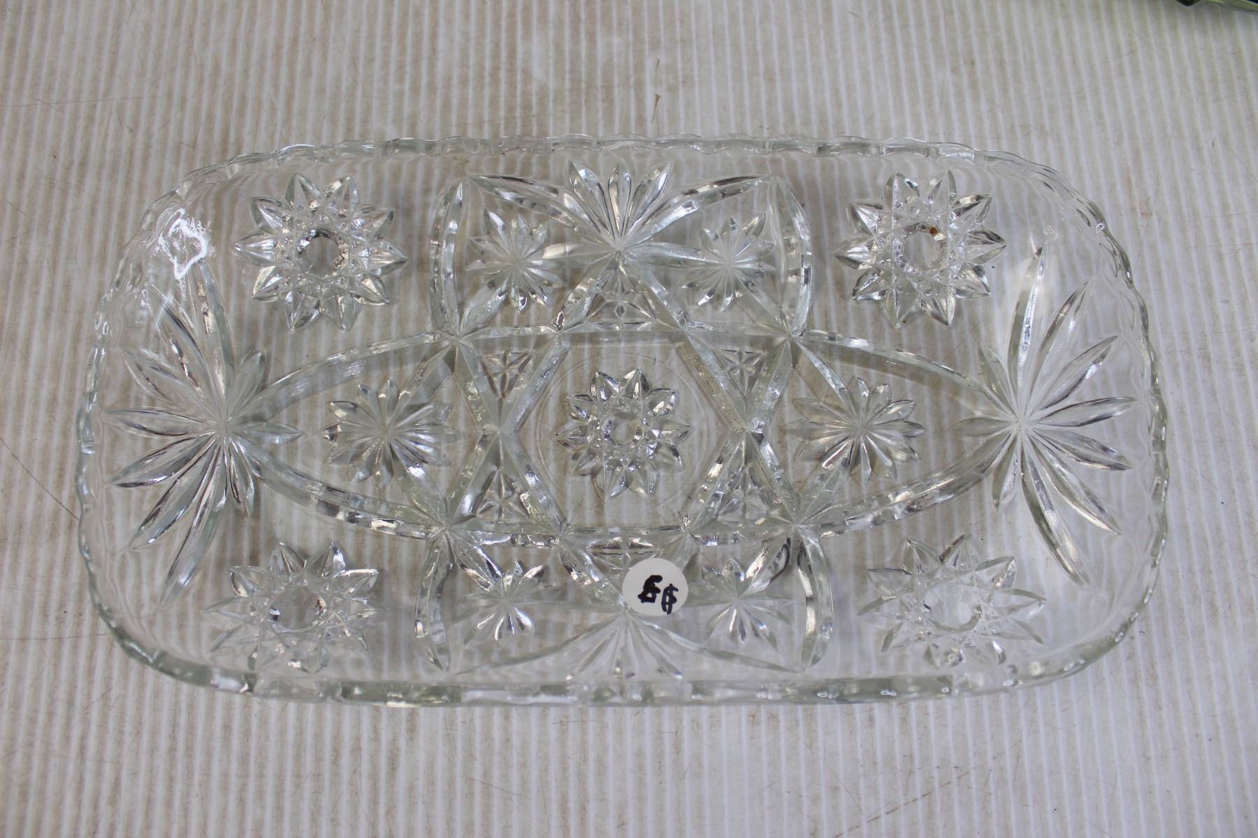 (2) Glass Dishes, Glass Syrup Bottle