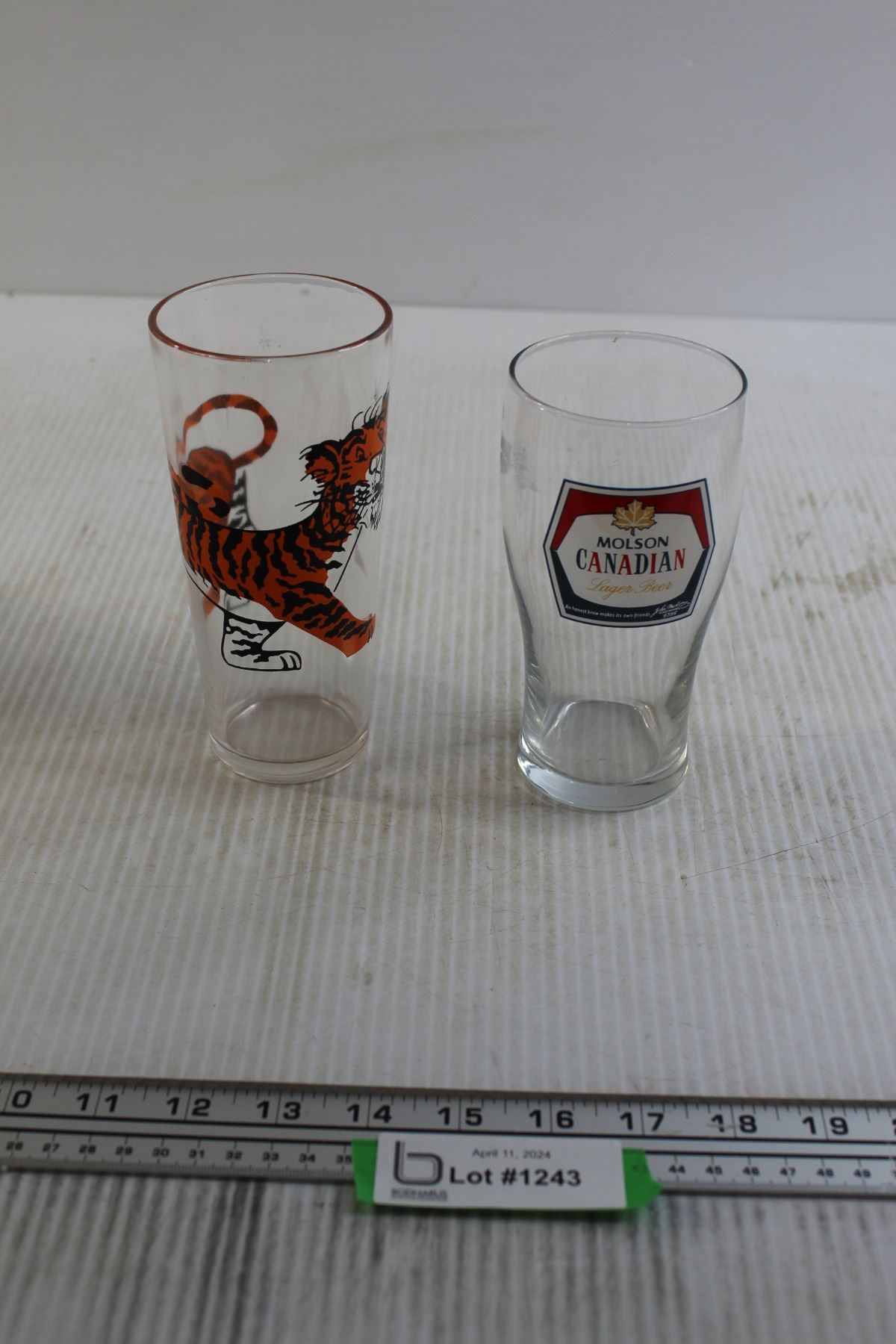 (2) Glasses - Tiger, Molson Canadian