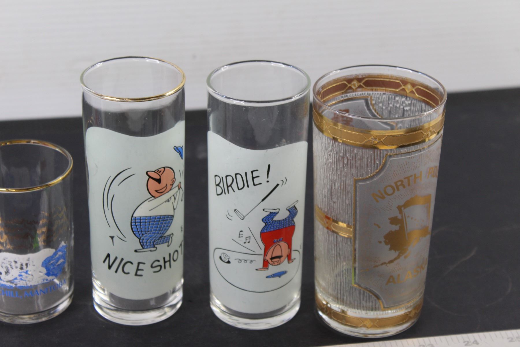 (2) Golf Glasses, North Pole Glass, Manitoba Glass, Confederate States Of America Glass