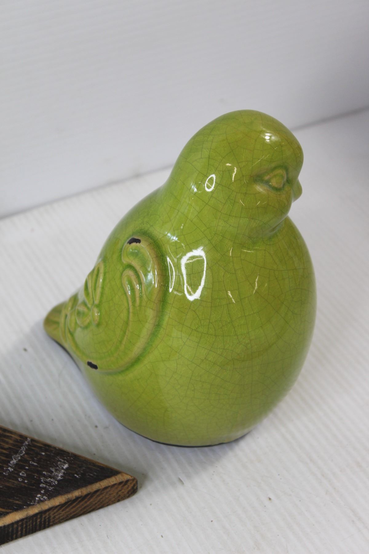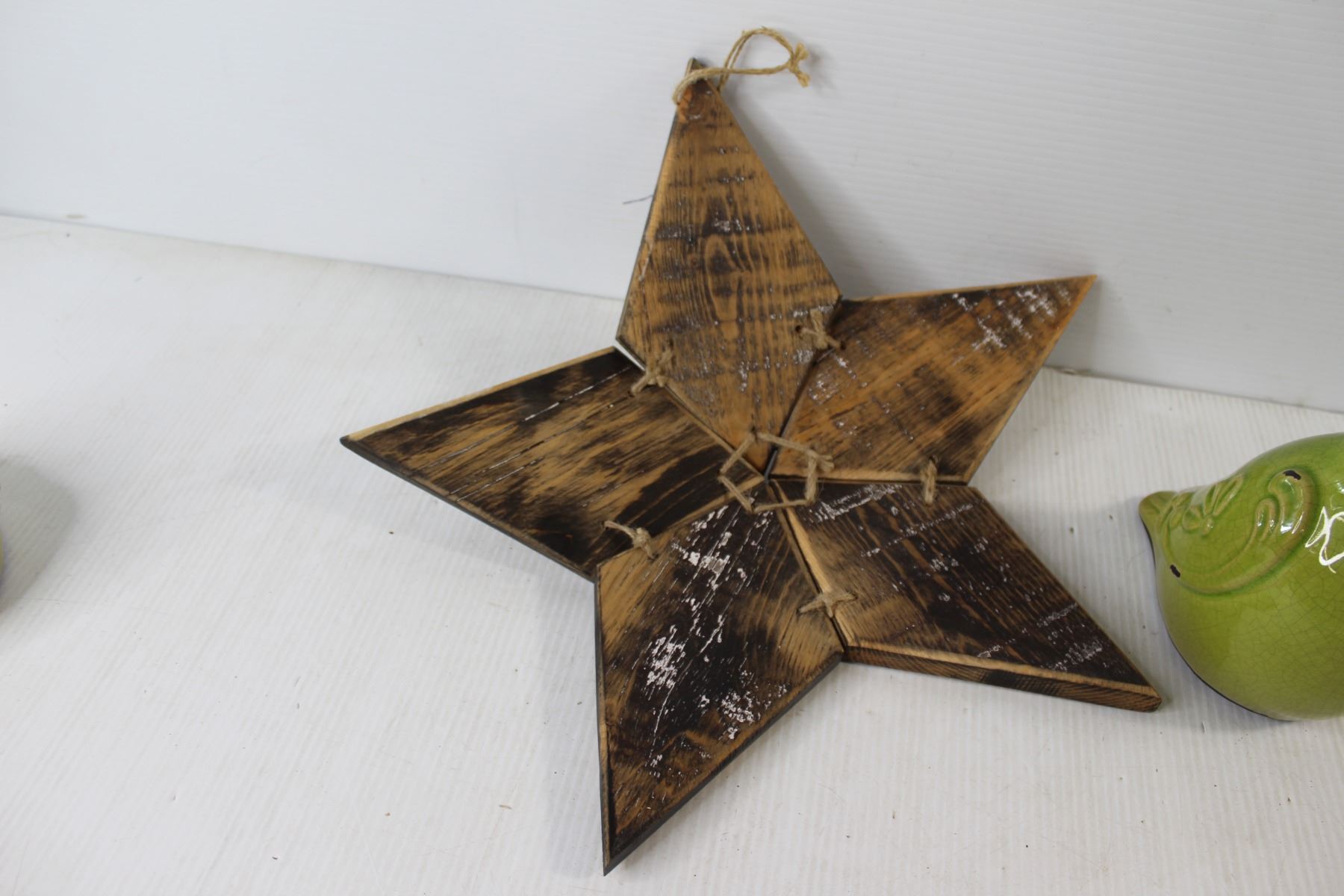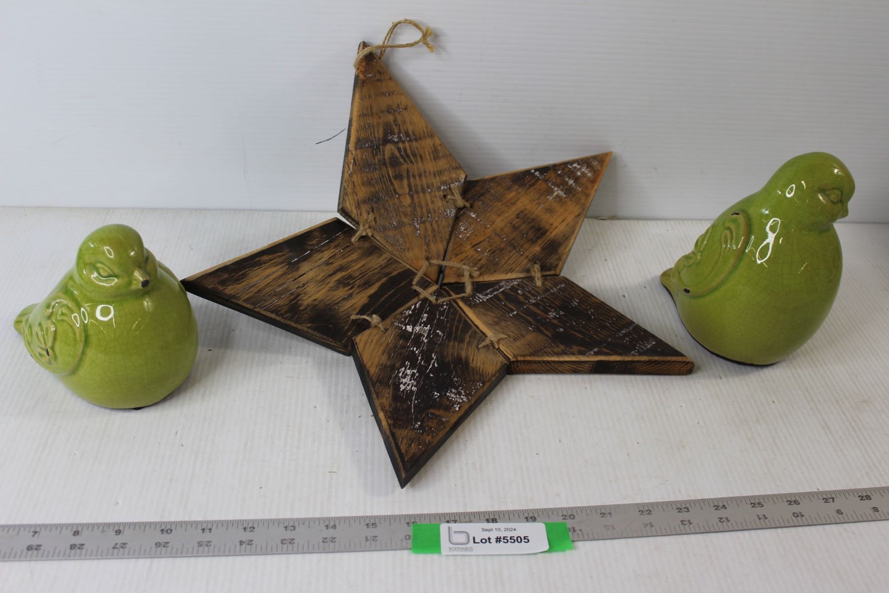 (2) Green Bird Ceramic Decorations, Wooden Wall Hanging Star