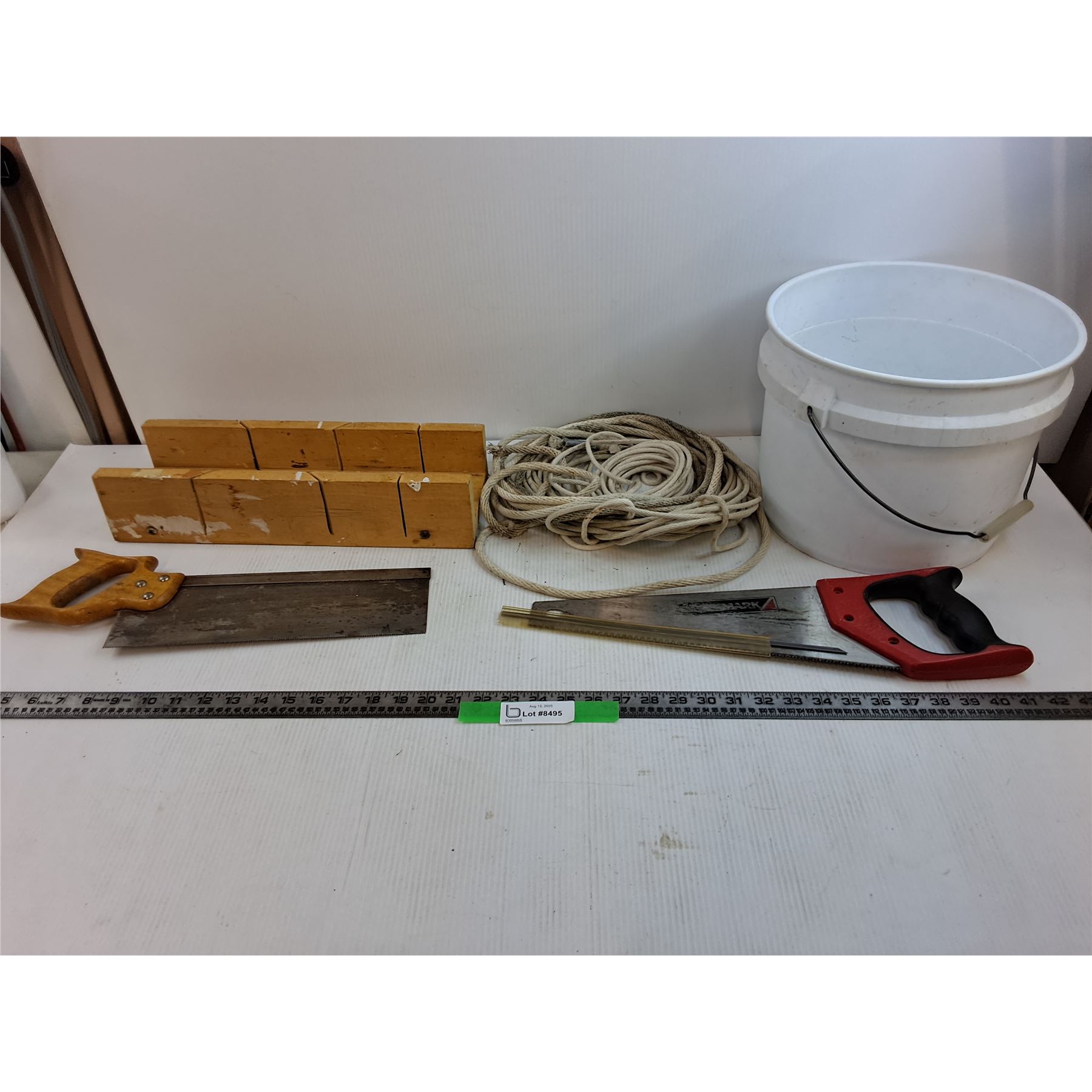(2) Handsaws, Saw Box, Rope, Bucket